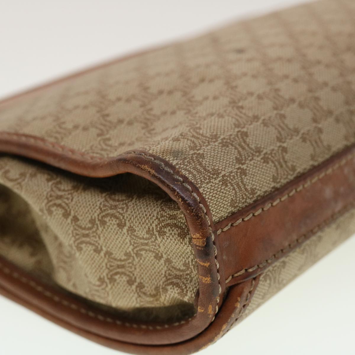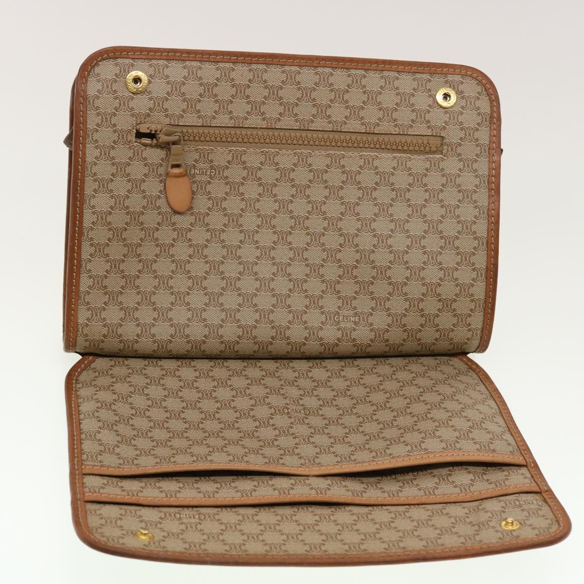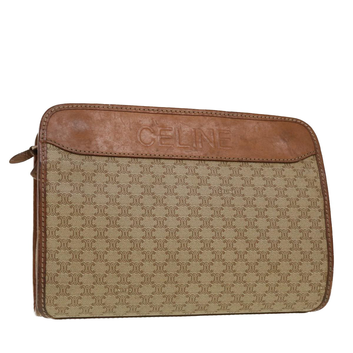 Celine Macadam Canvas Clutch Bag PVC Leather Beige 45077