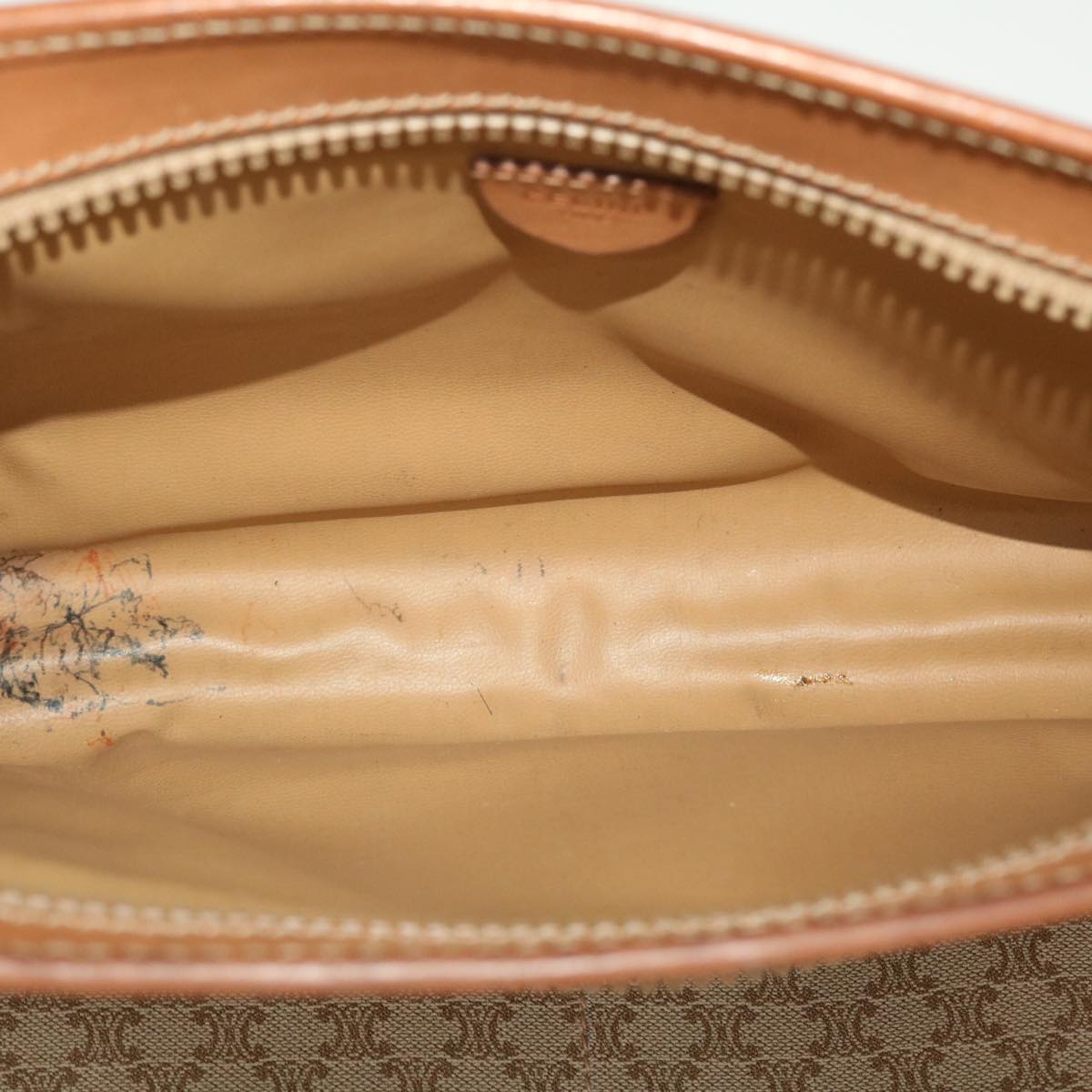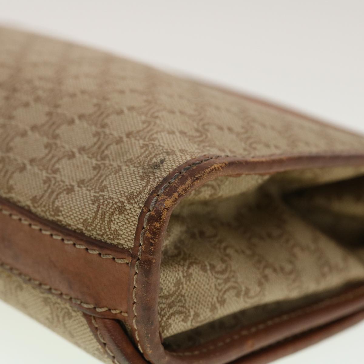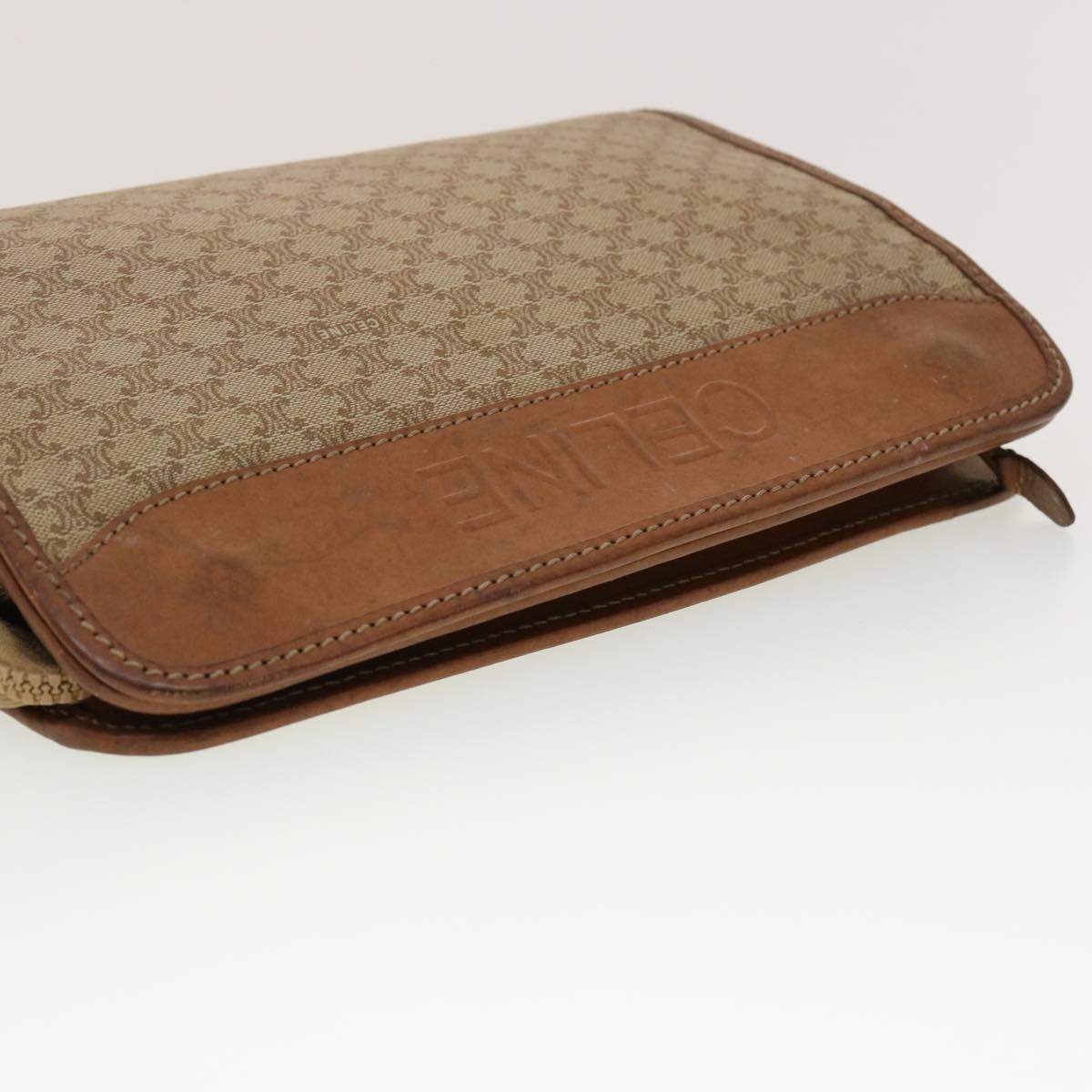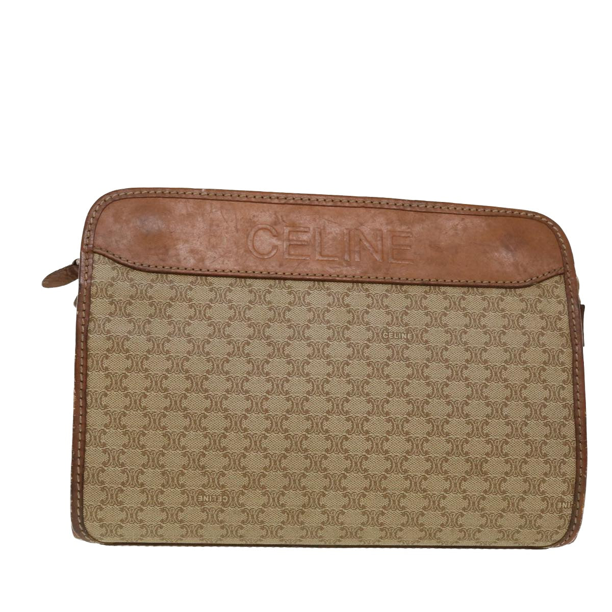Celine Macadam Canvas Clutch Bag PVC Leather Beige 45077