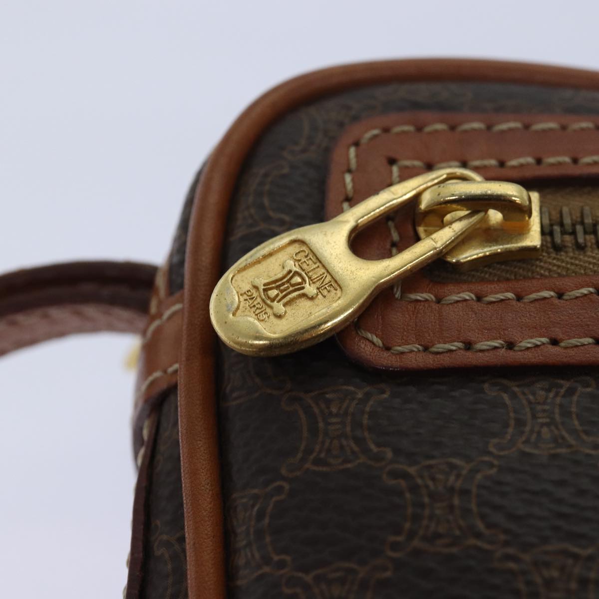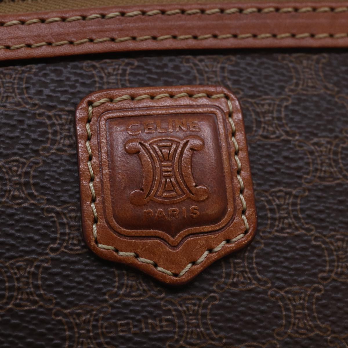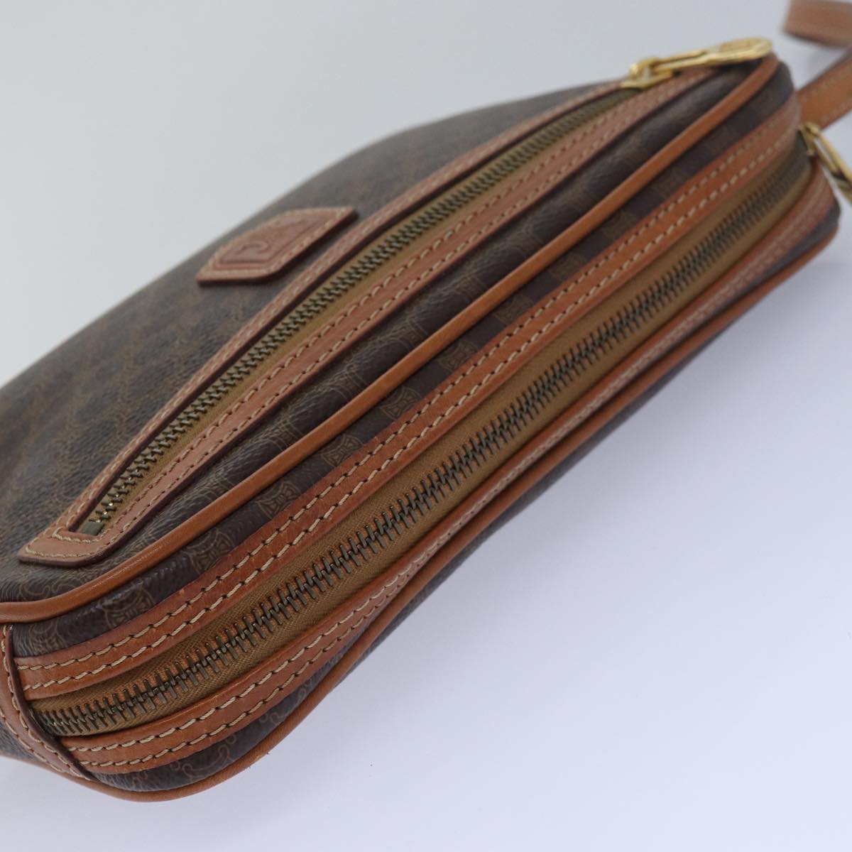 CELINE Macadam Canvas Clutch Bag PVC Leather Brown Auth 80924