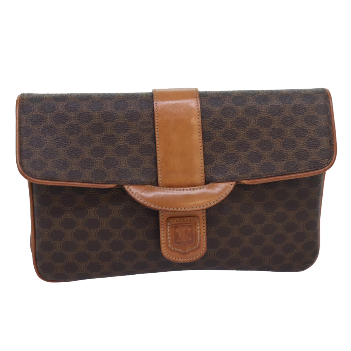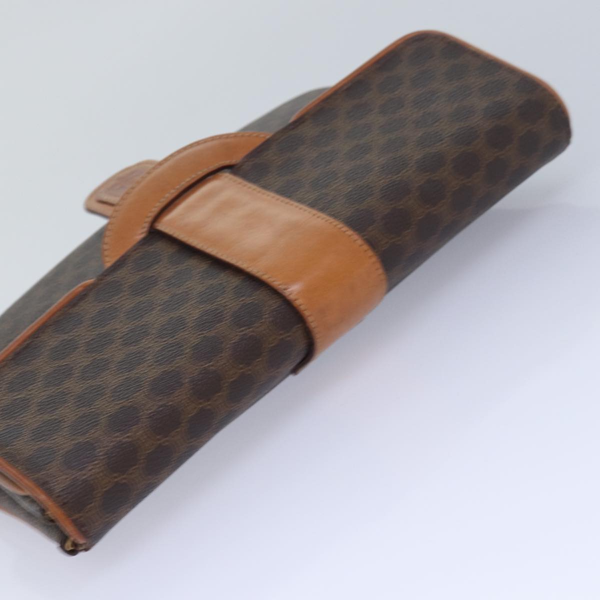 CELINE Macadam Canvas Clutch Bag PVC Leather Brown Auth 82012