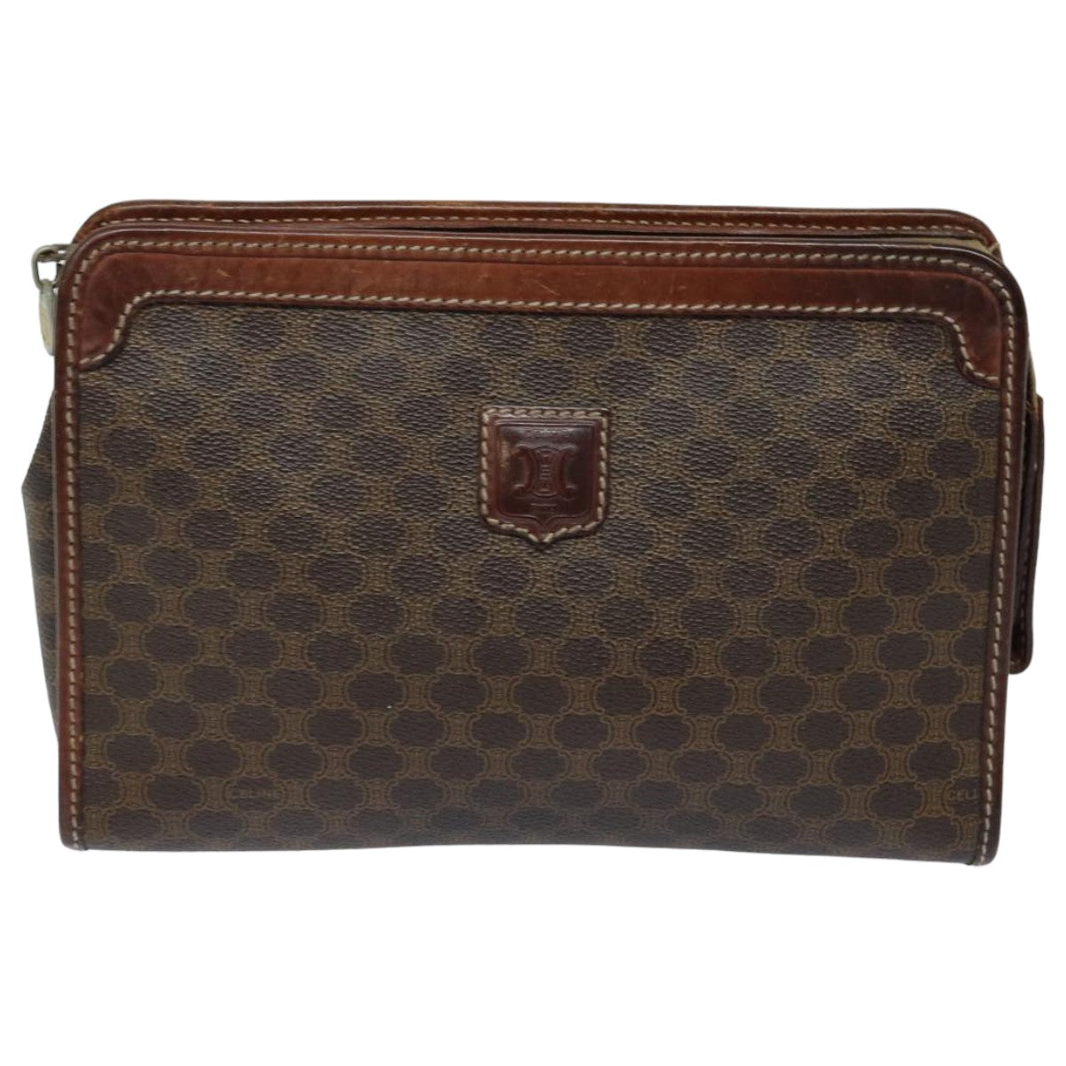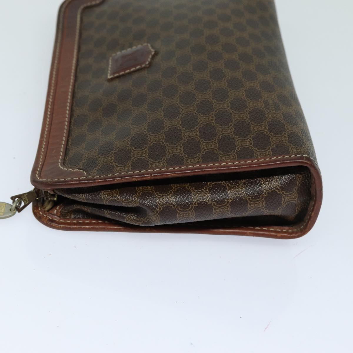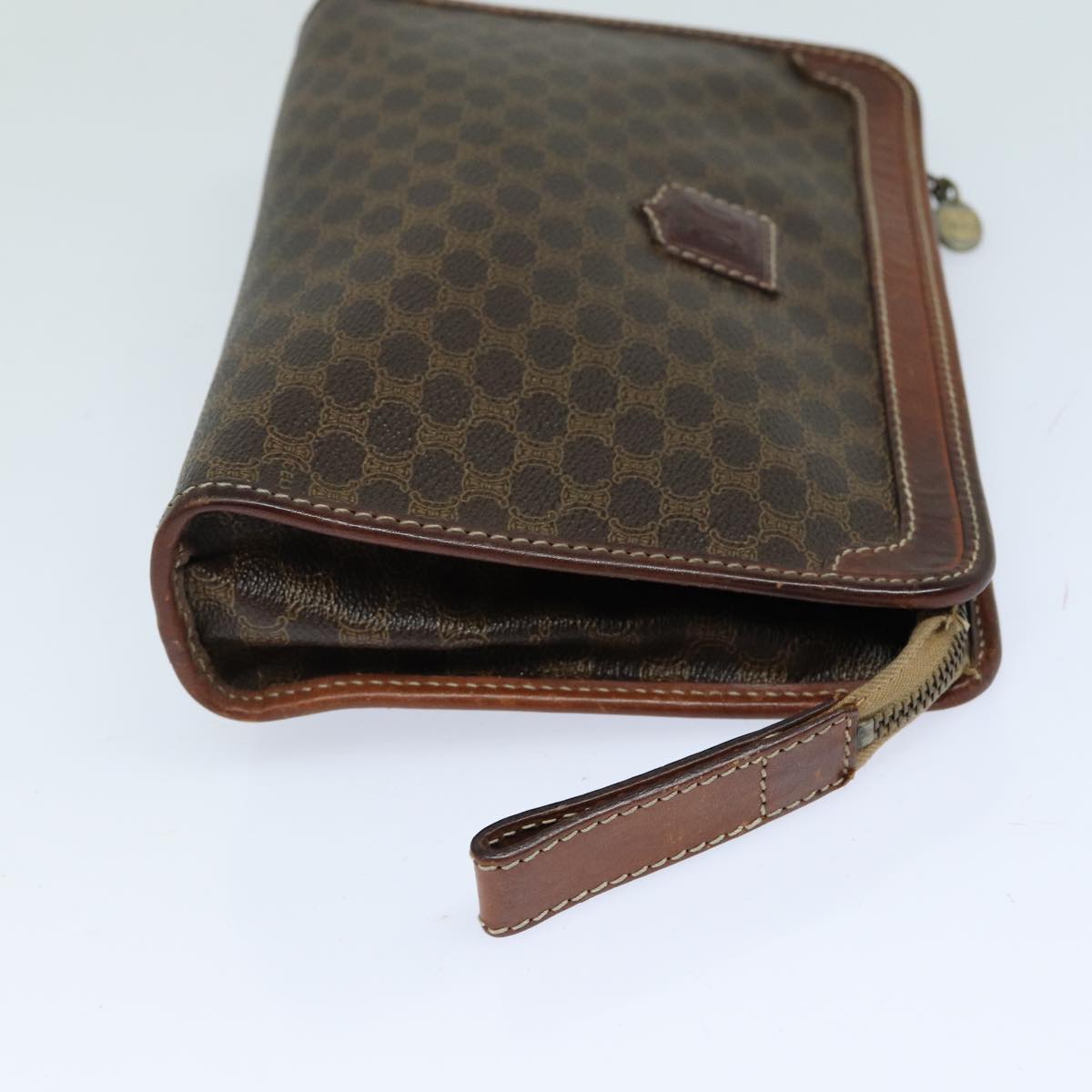CELINE Macadam Canvas Clutch Bag PVC Leather Brown Auth bs15968