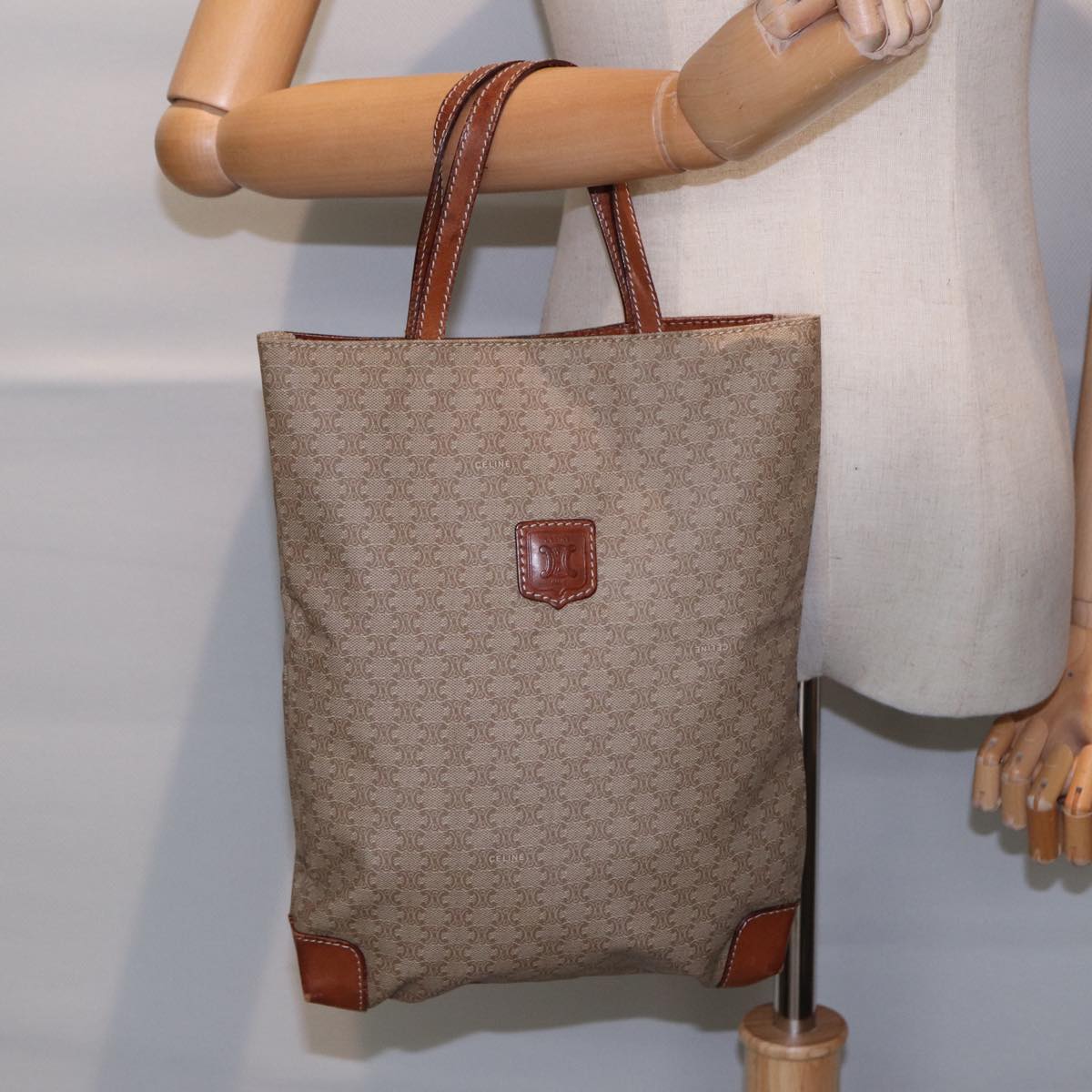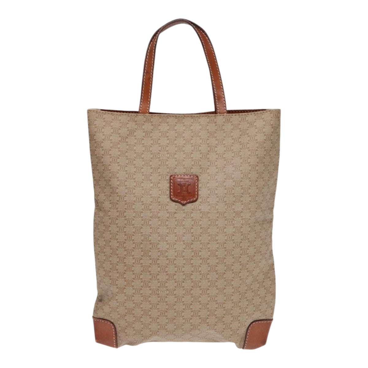 CELINE Macadam Canvas Hand Bag Beige Auth fm3782