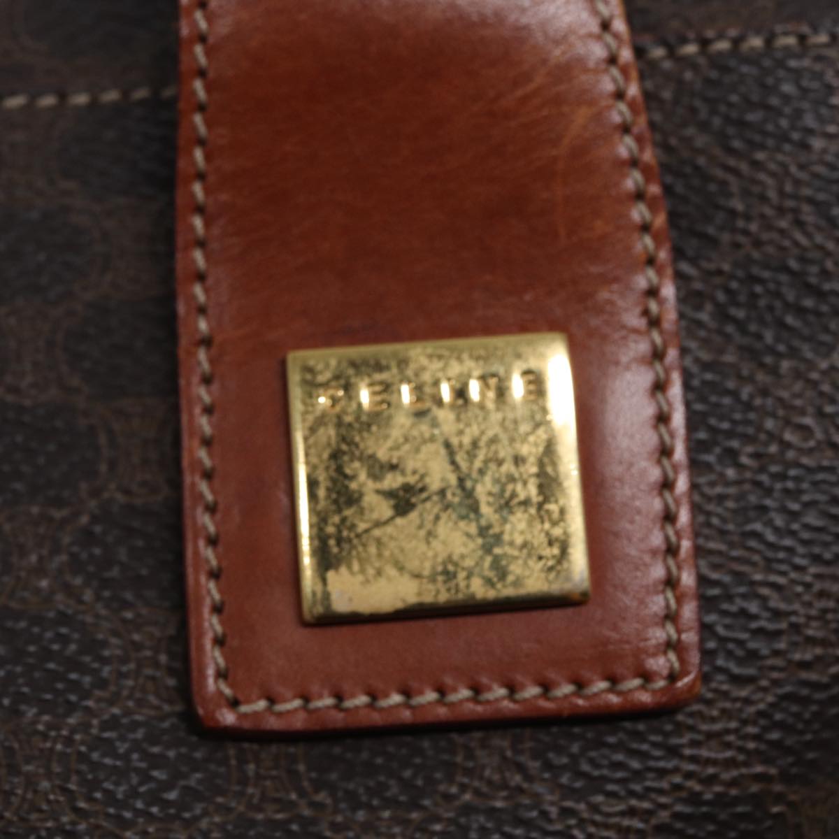 CELINE Macadam Canvas Hand Bag PVC Brown Auth 89285