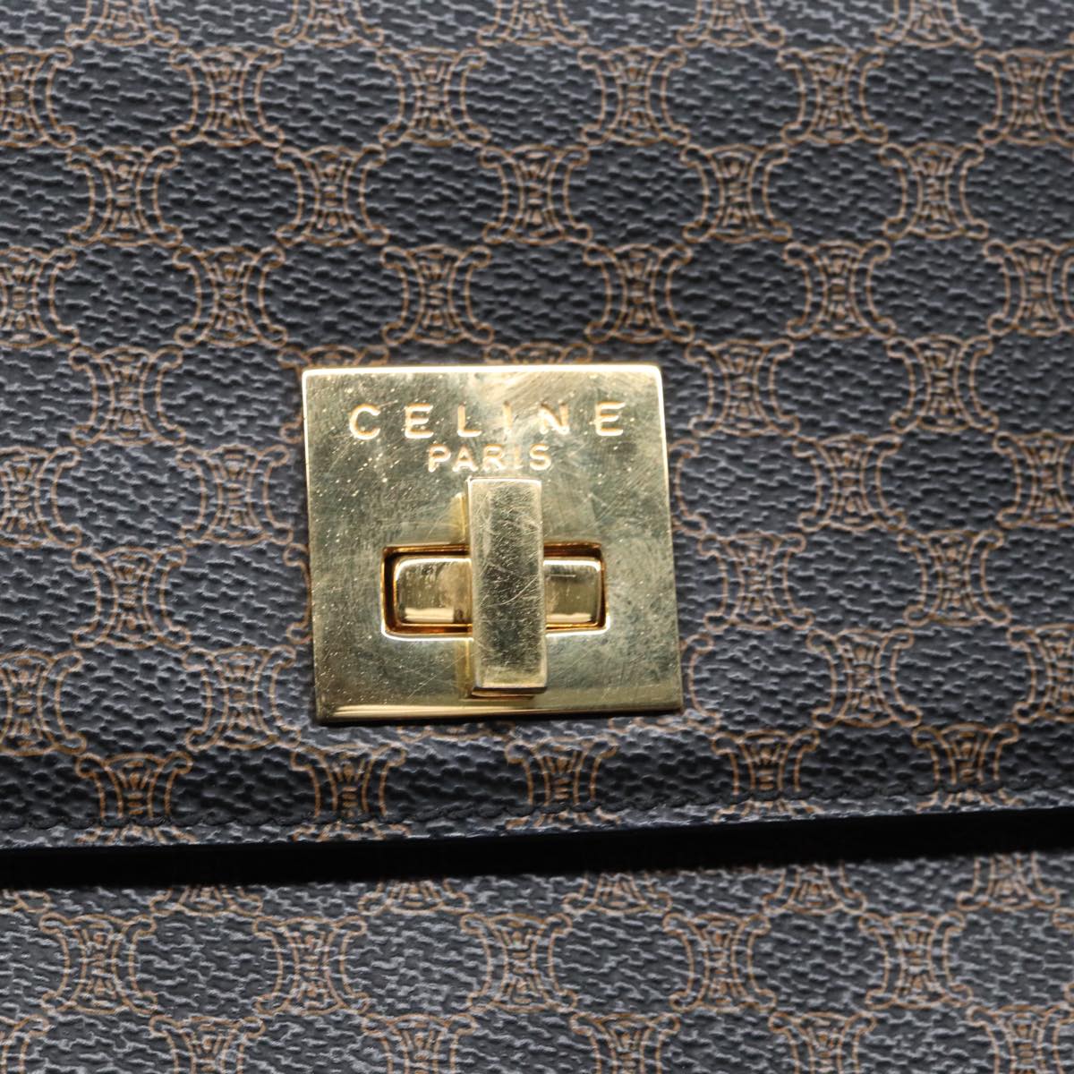 CELINE Macadam Canvas Hand Bag PVC Leather 2way Brown Black Auth 87641A