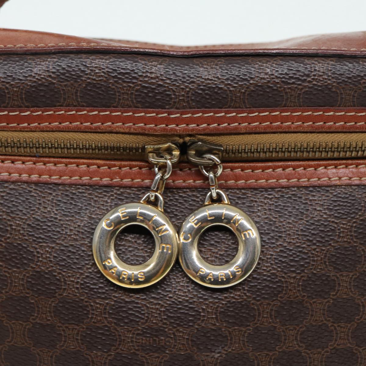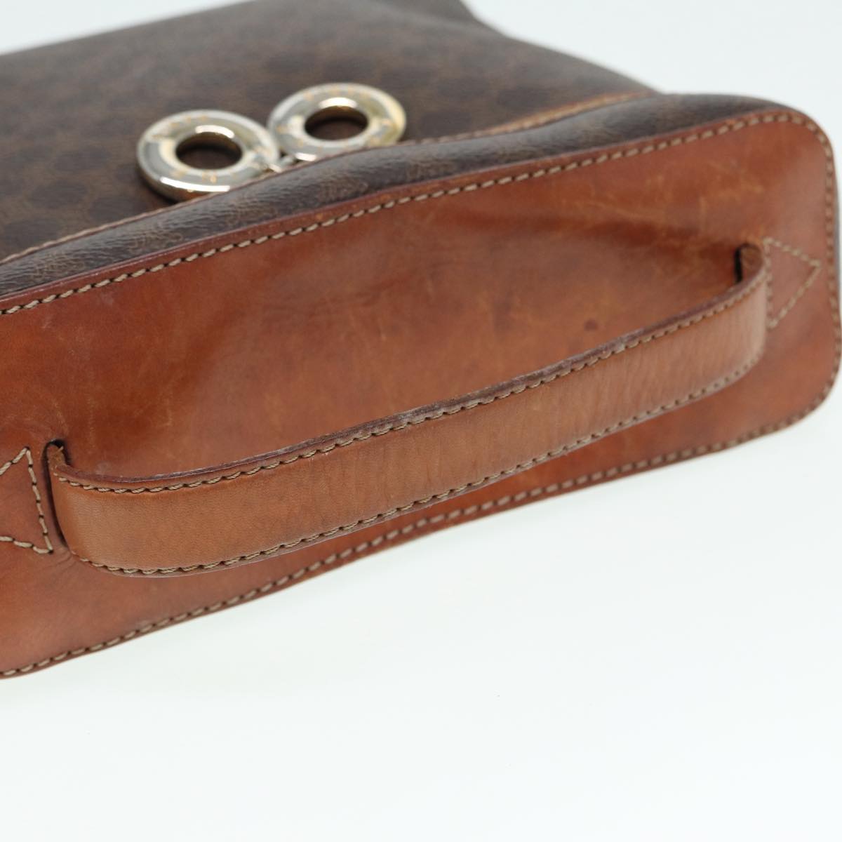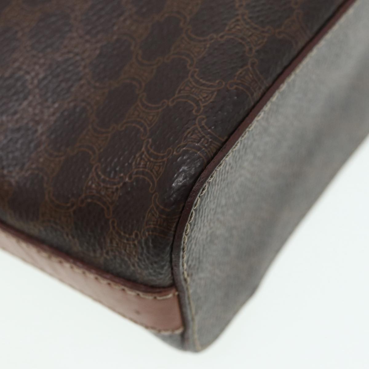 CELINE Macadam Canvas Hand Bag PVC Leather 2way Brown Gold Auth 86428