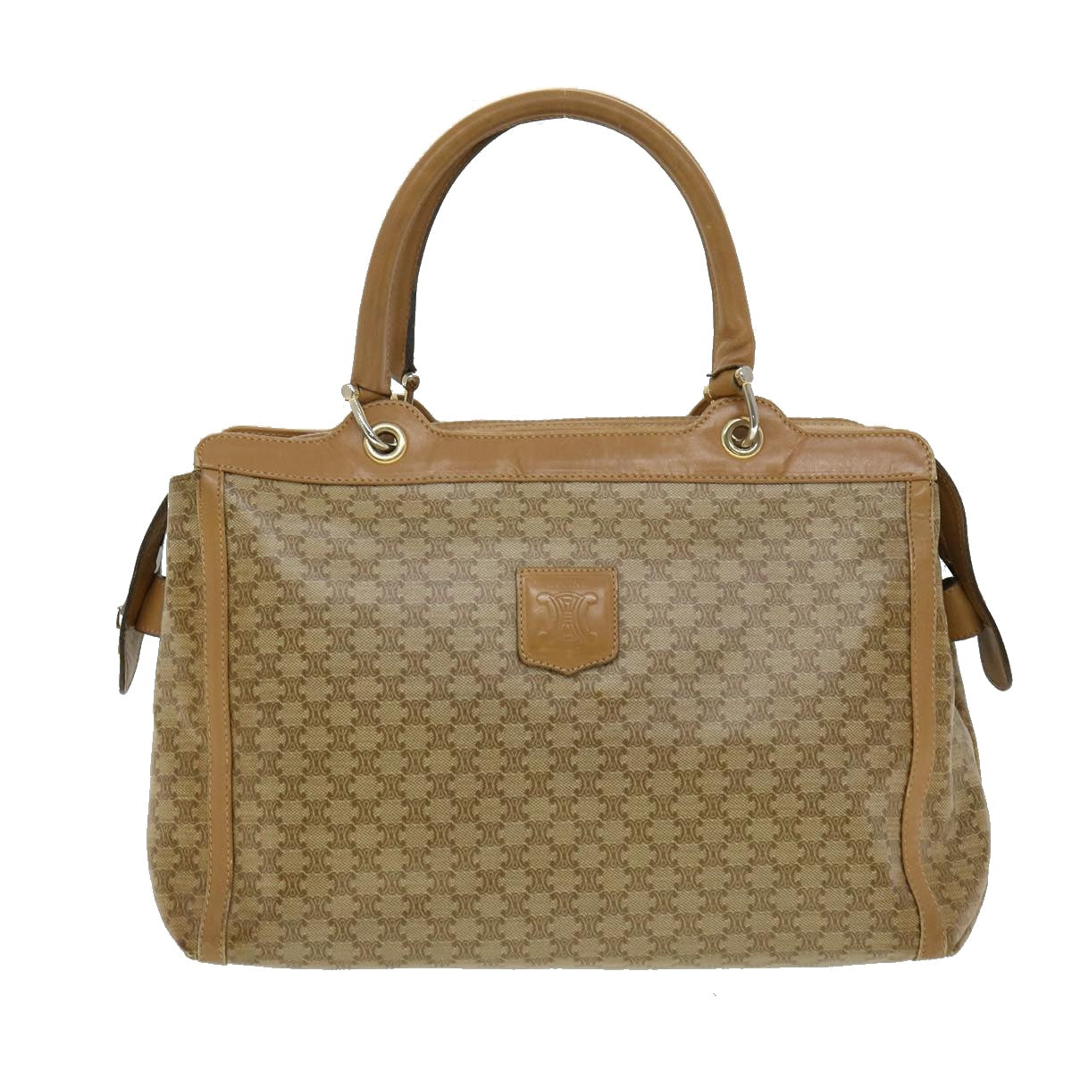 Celine Macadam Canvas Hand Bag PVC Leather Beige 31582