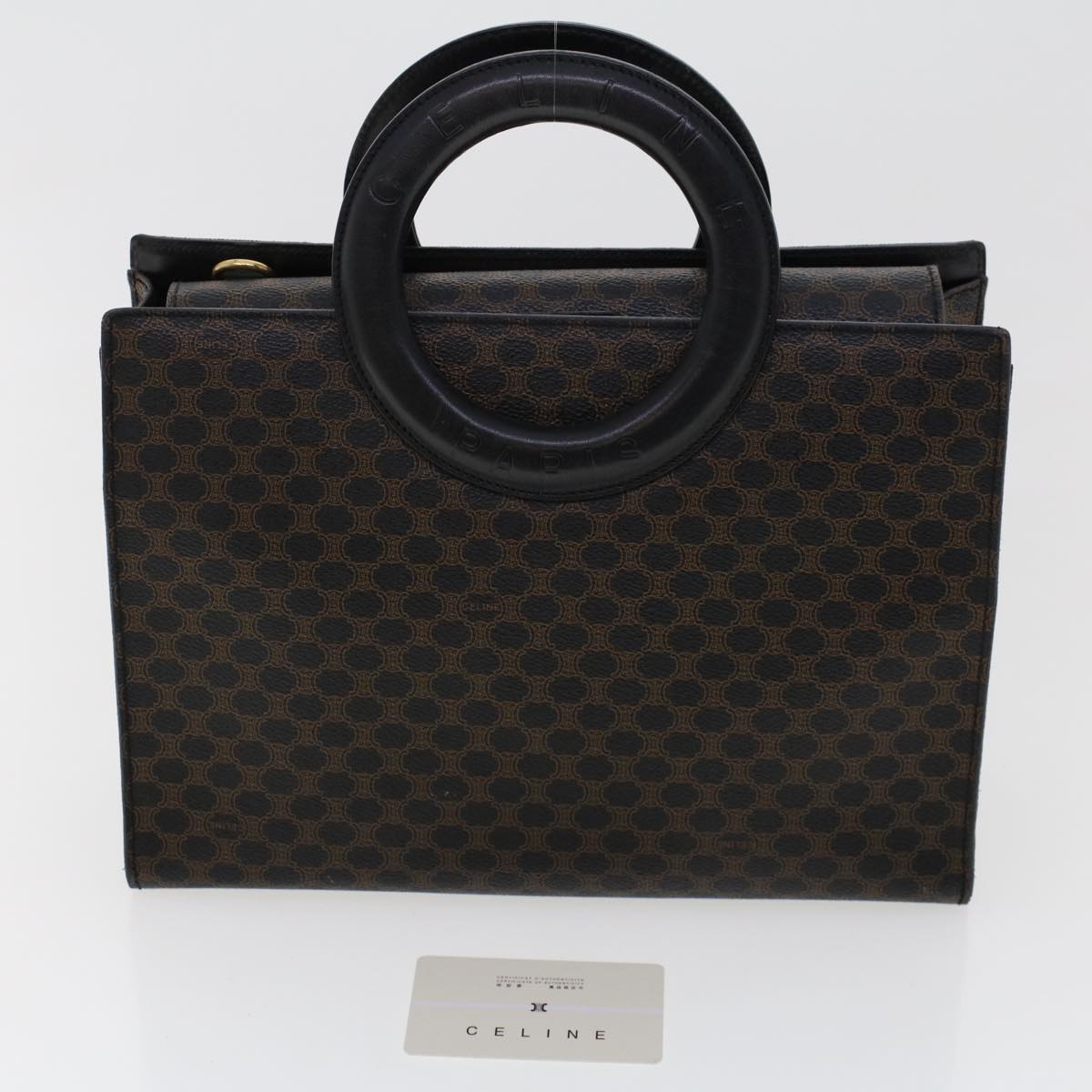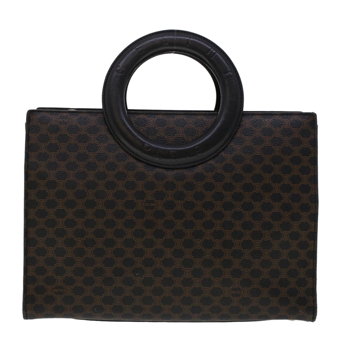 Celine Macadam Canvas Hand Bag PVC Leather Black 45906