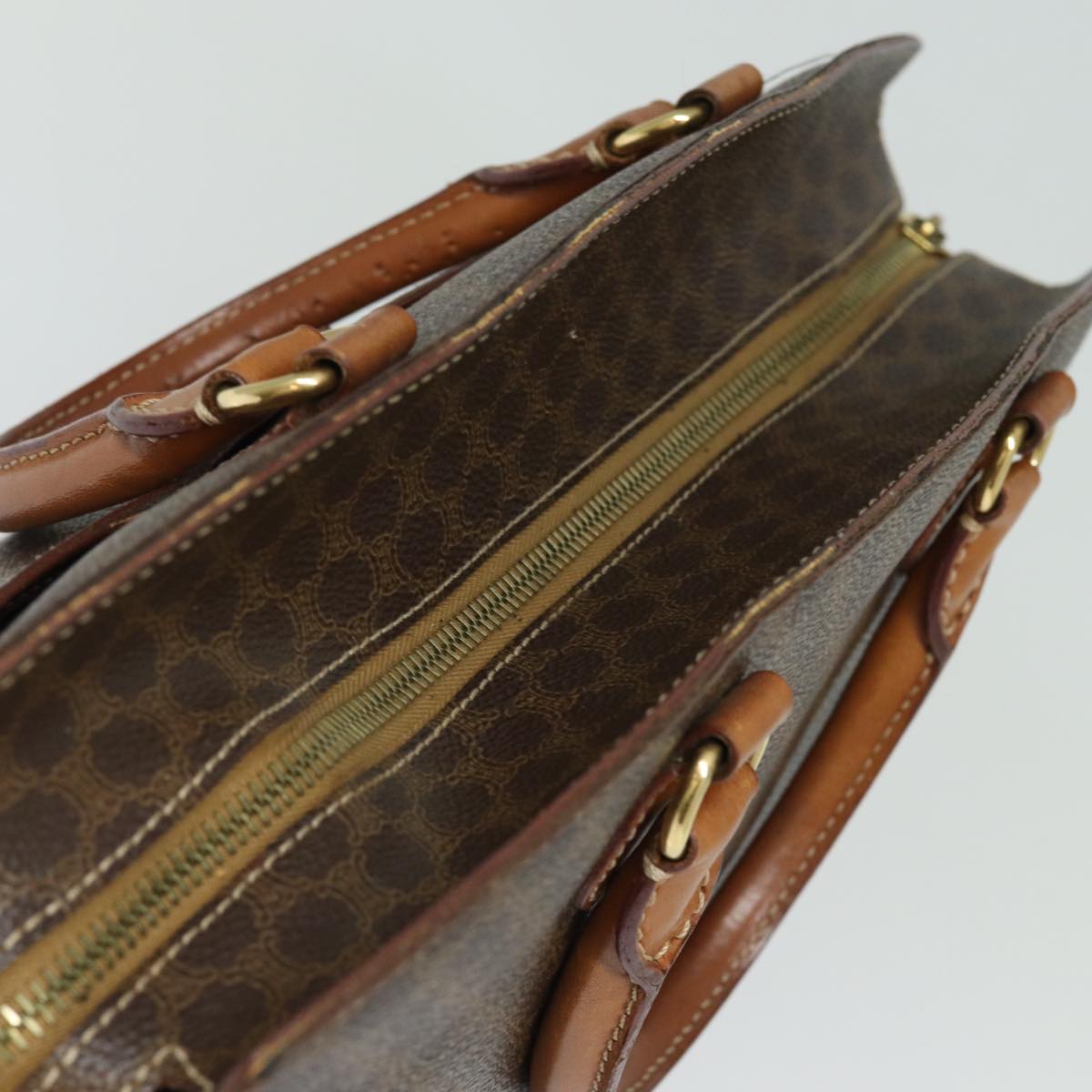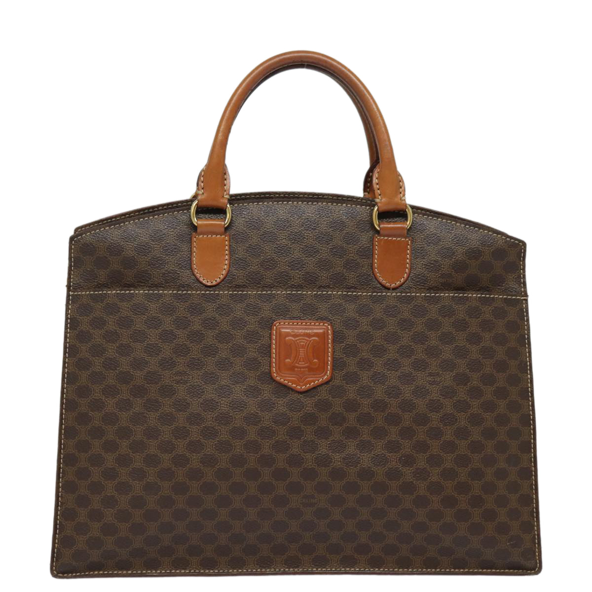 CELINE Macadam Canvas Hand Bag PVC Leather Brown Auth 81195