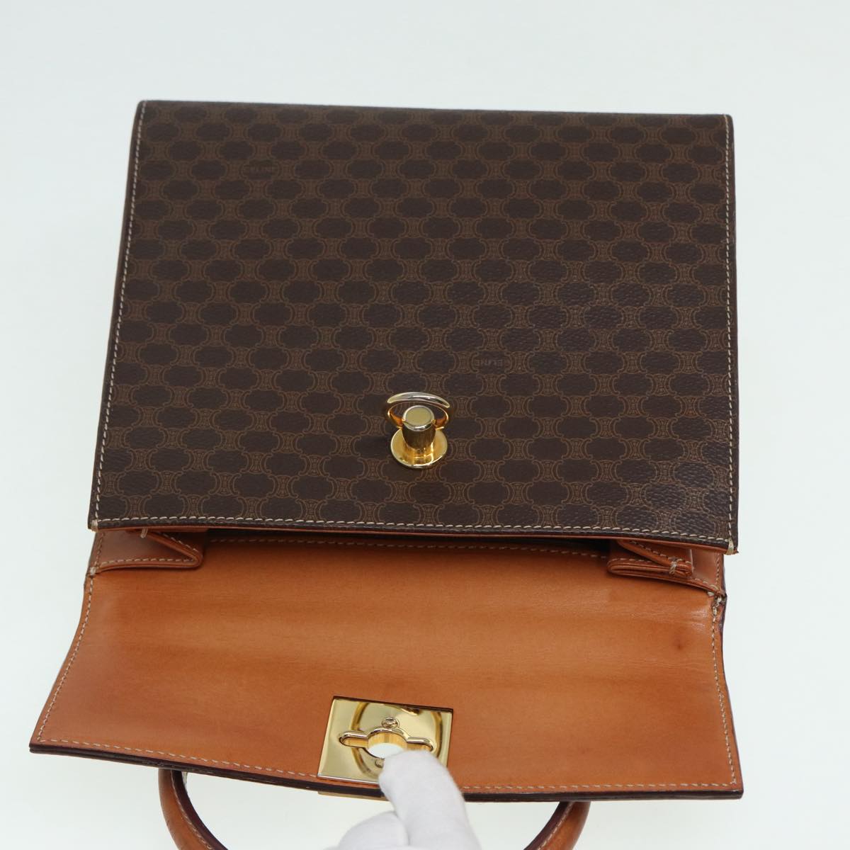 CELINE Macadam Canvas Hand Bag PVC Leather Brown Auth 85010