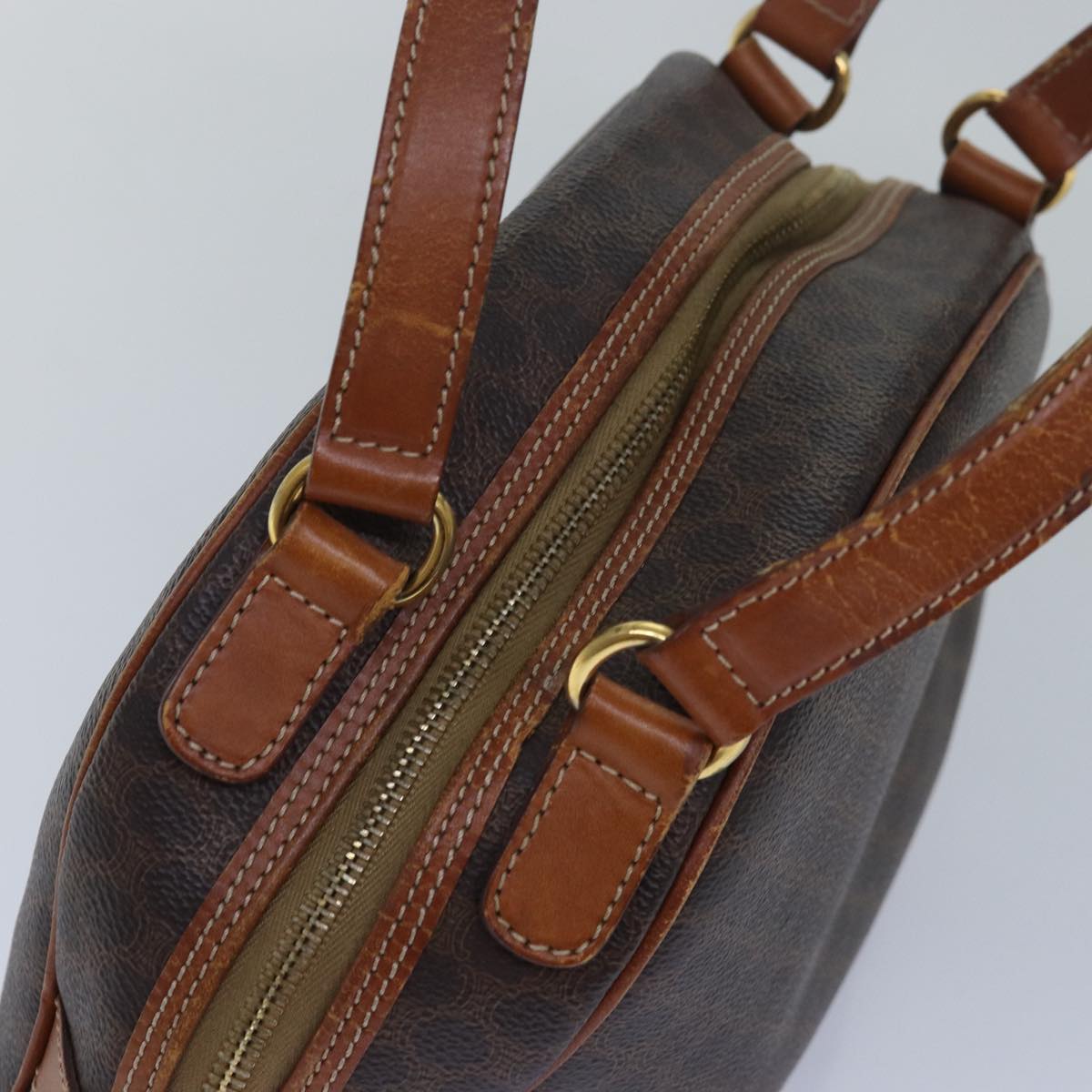 CELINE Macadam Canvas Hand Bag PVC Leather Brown Auth bs15634
