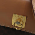 CELINE Macadam Canvas Hand Bag PVC Leather Brown Gold Auth 85545