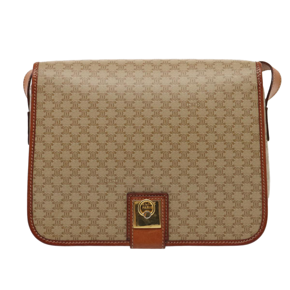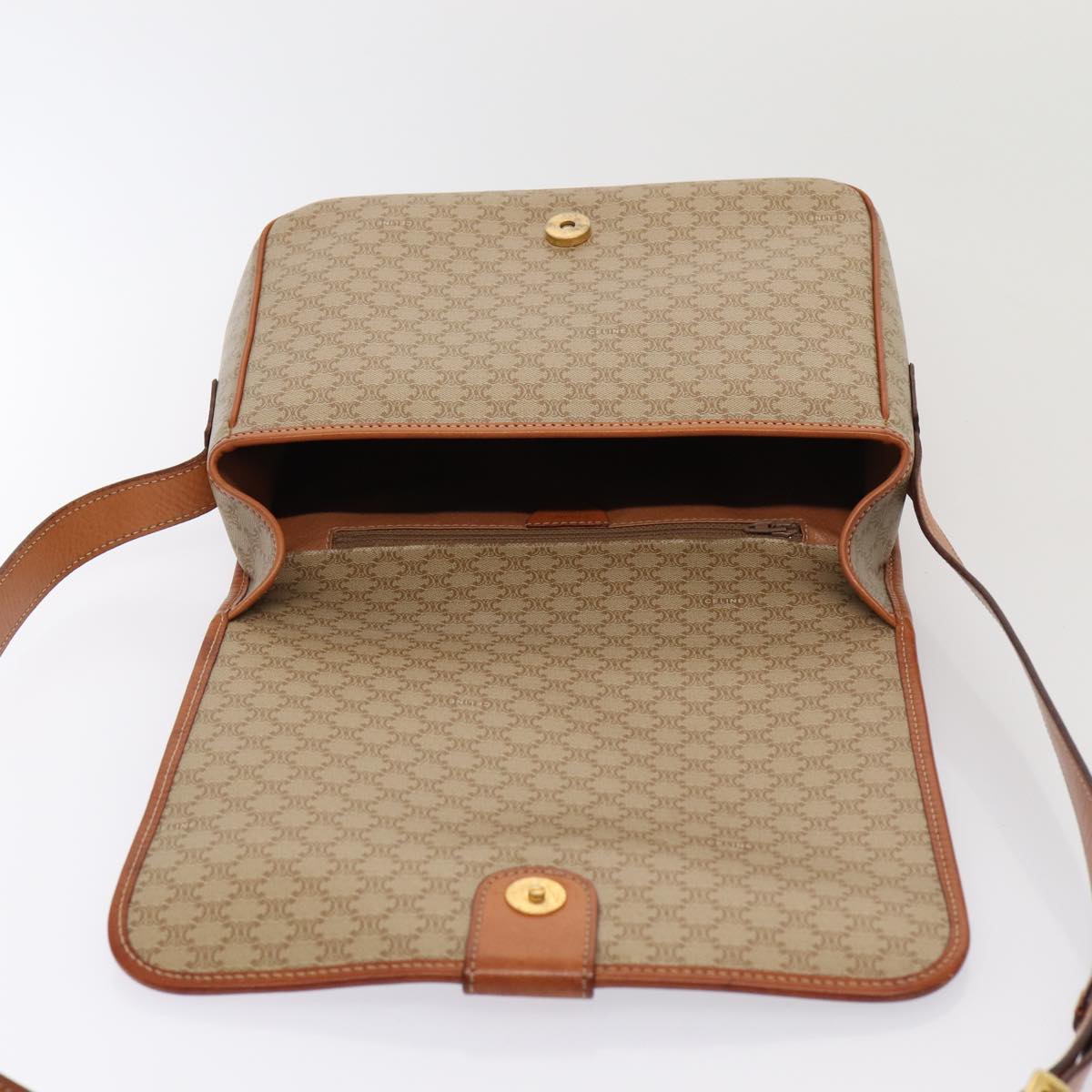 CELINE Macadam Canvas Shoulder Bag Beige Auth 80813
