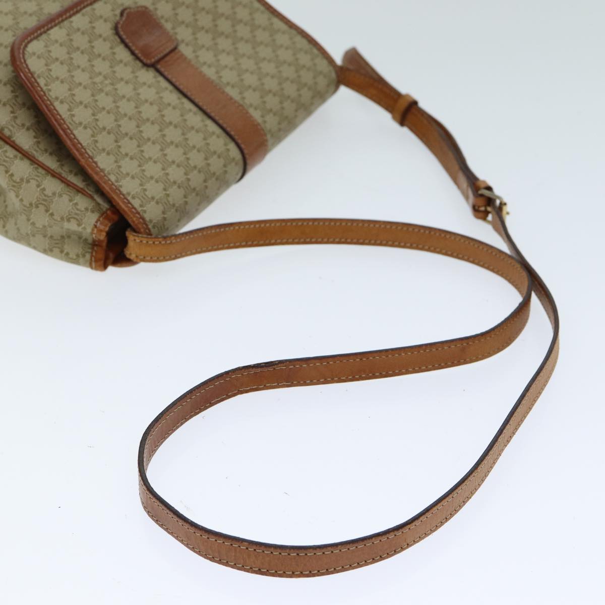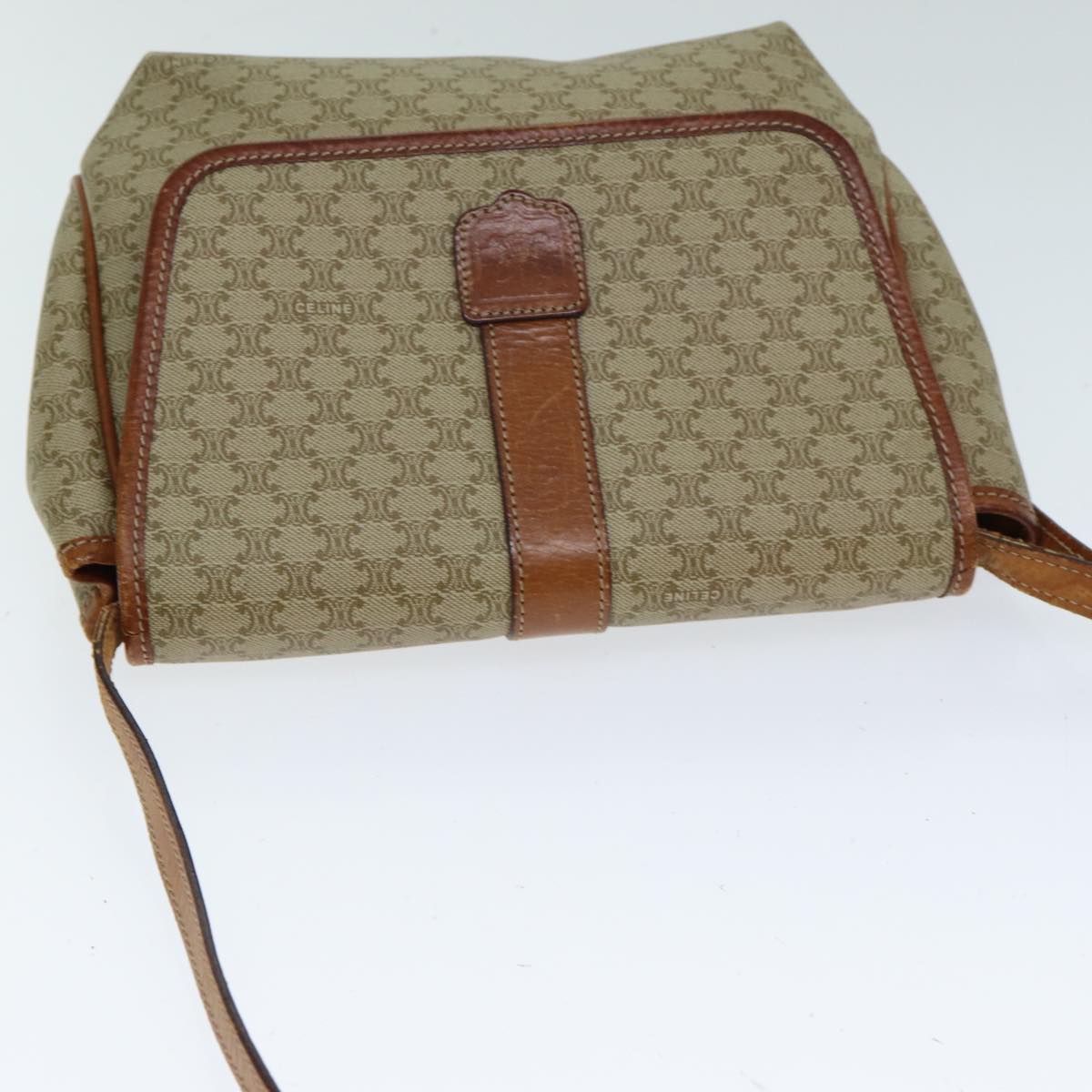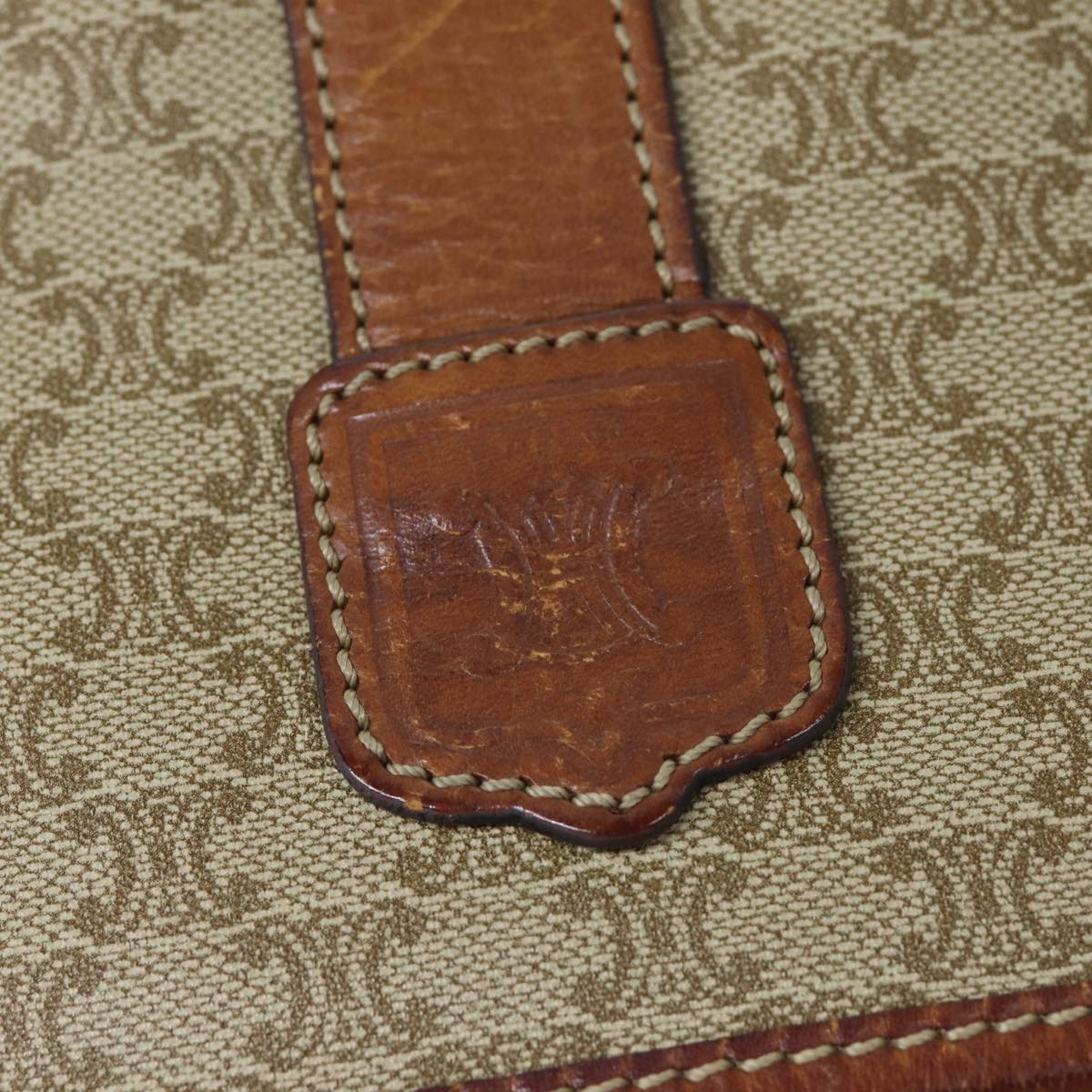 CELINE Macadam Canvas Shoulder Bag Beige Auth 81445