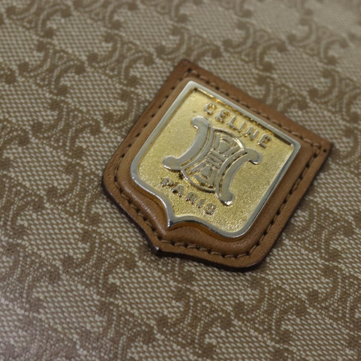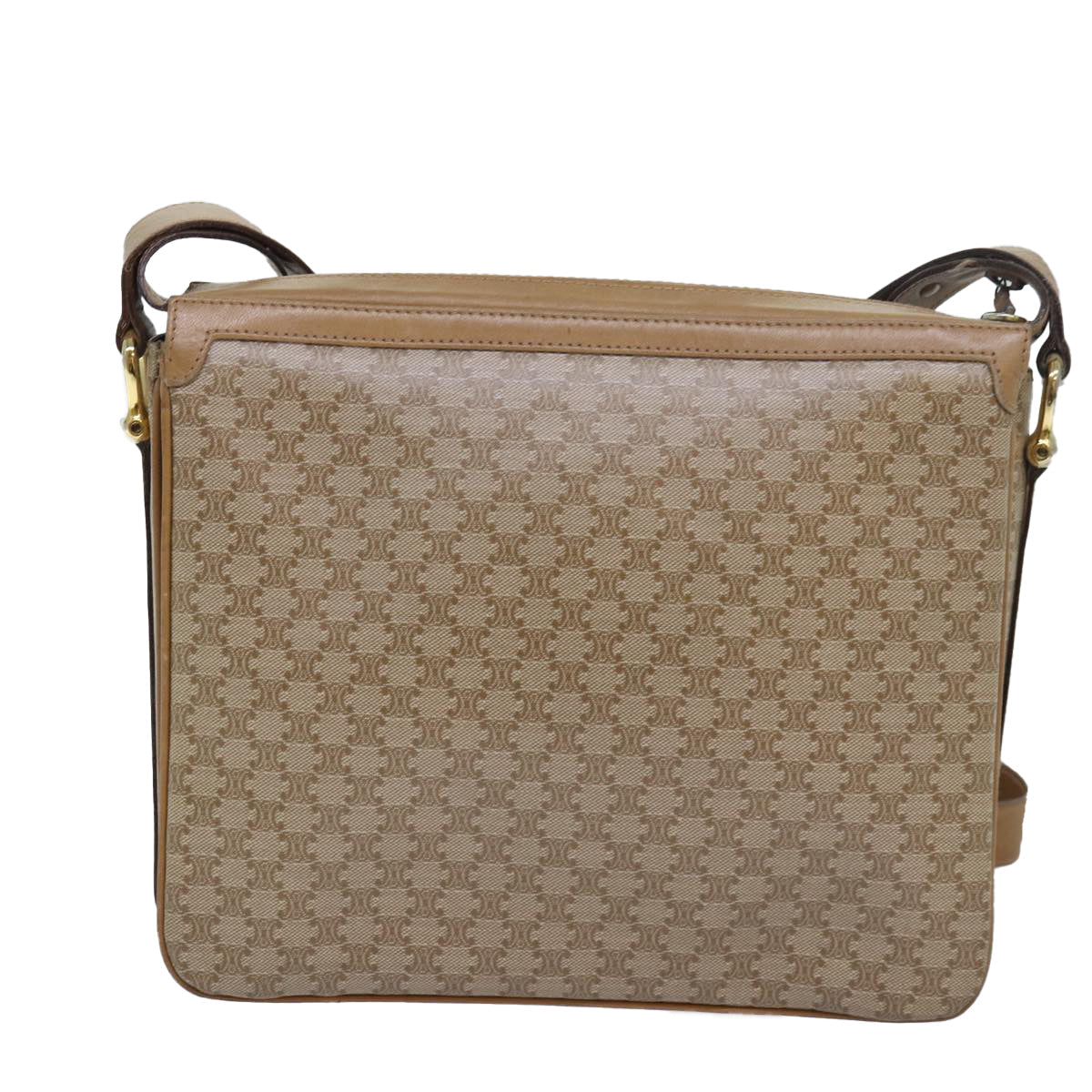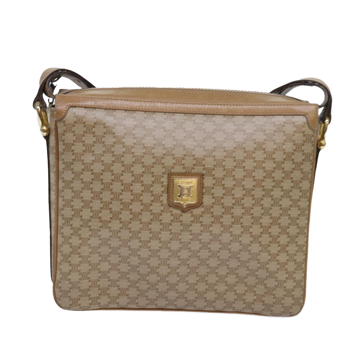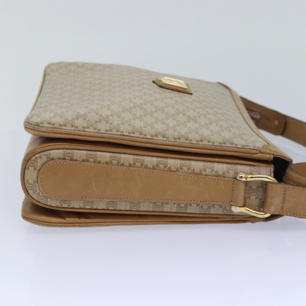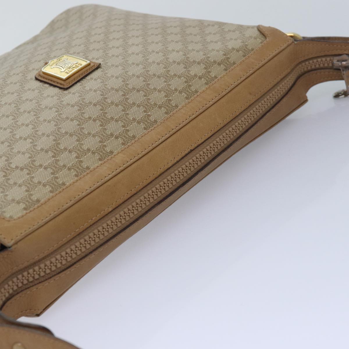 CELINE Macadam Canvas Shoulder Bag Beige Auth 82010