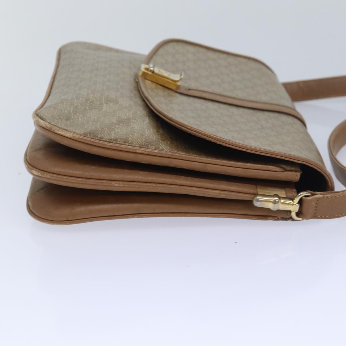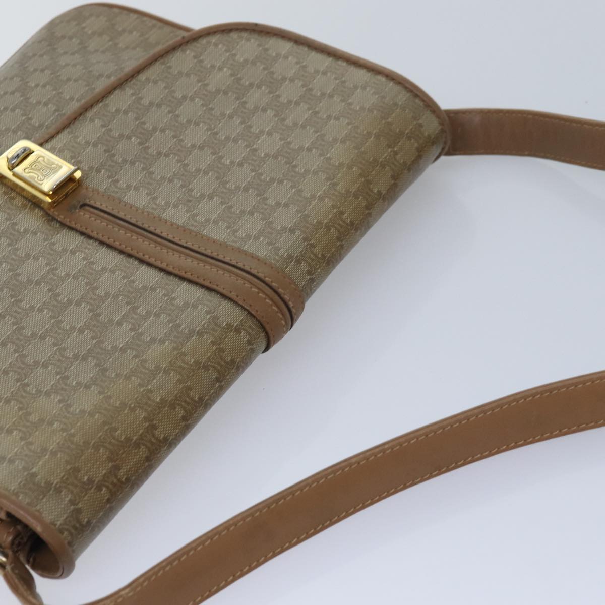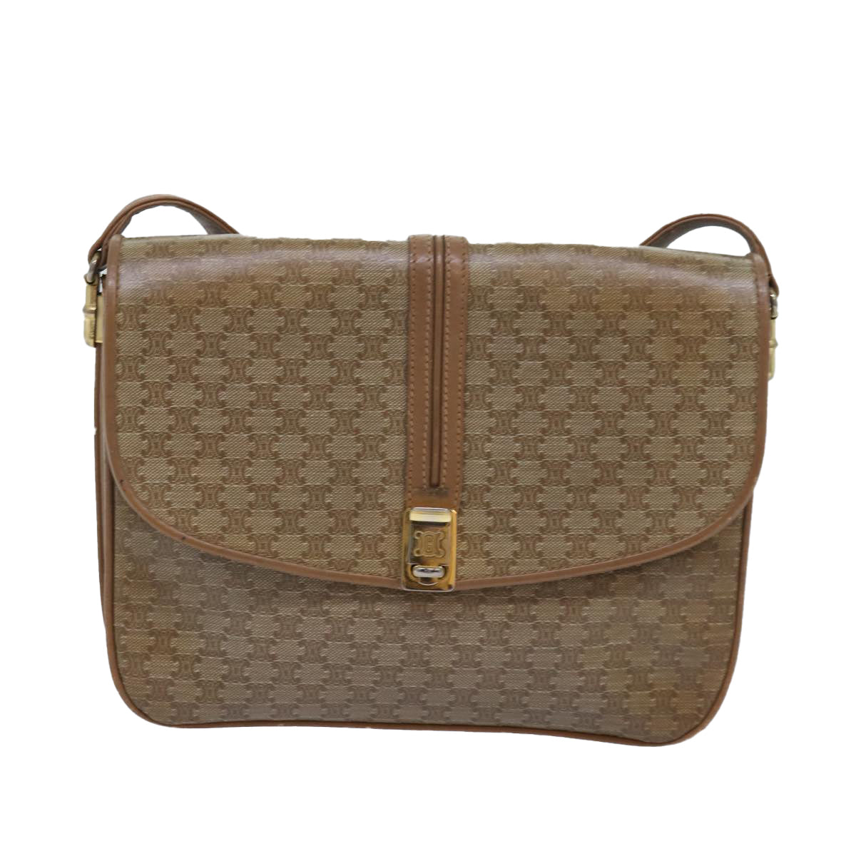 CELINE Macadam Canvas Shoulder Bag Beige Auth 82011