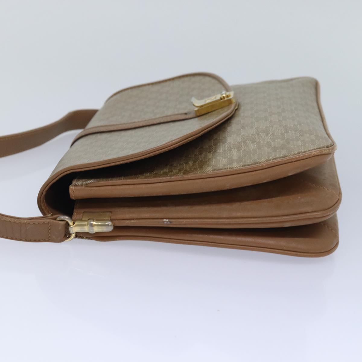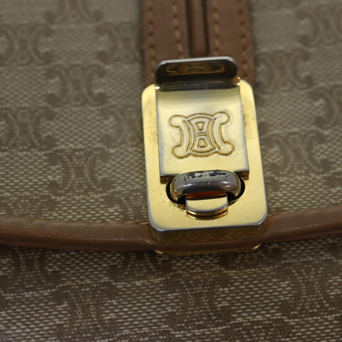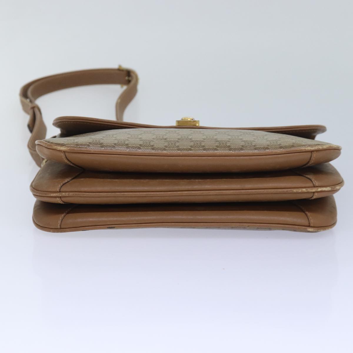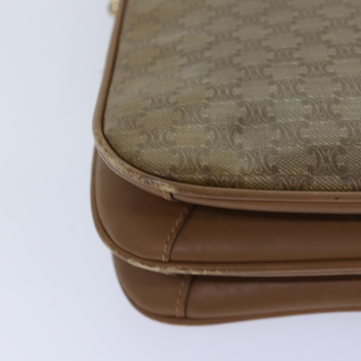 CELINE Macadam Canvas Shoulder Bag Beige Auth 82011