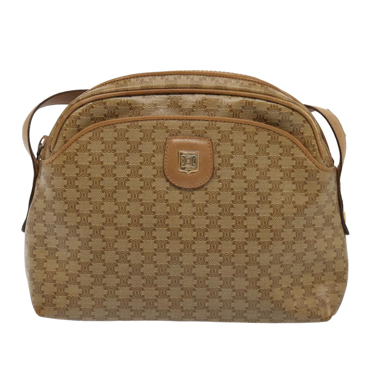CELINE Macadam Canvas Shoulder Bag Beige Auth 82866
