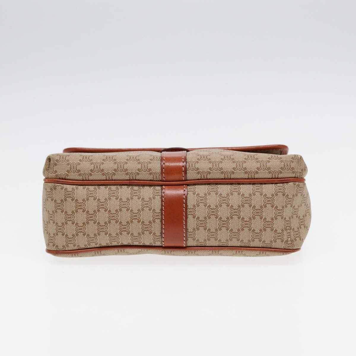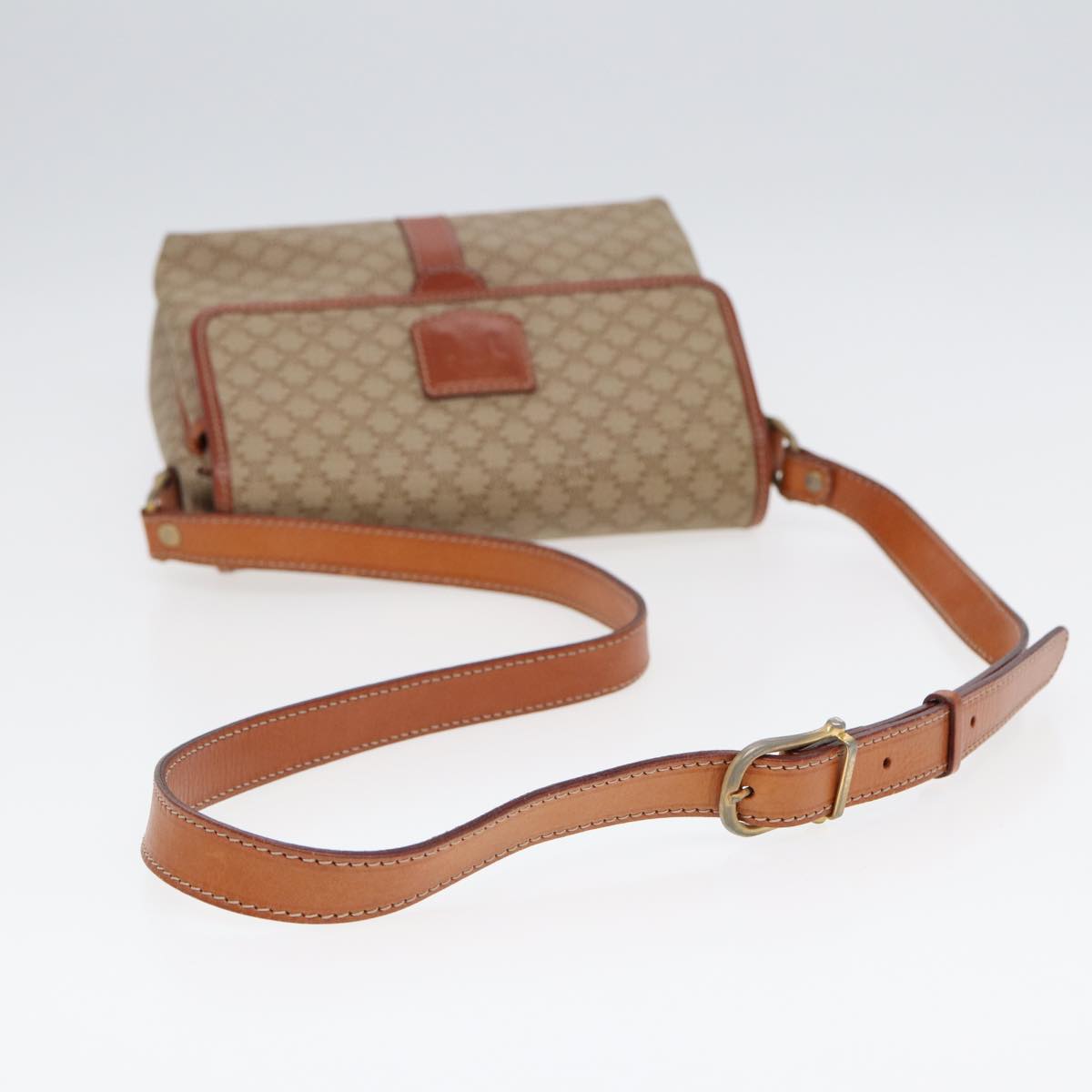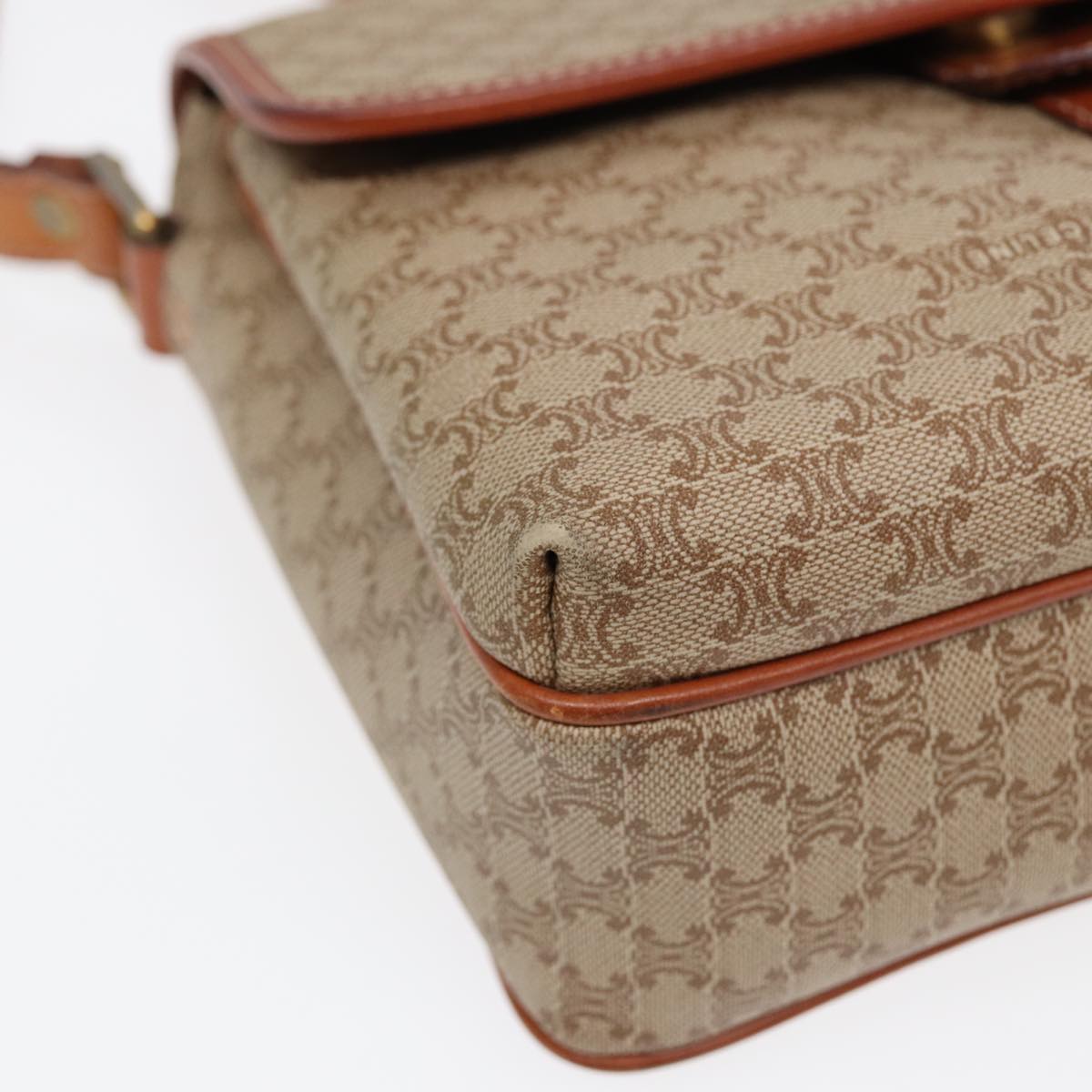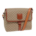CELINE Macadam Canvas Shoulder Bag Beige Gold Auth 87069