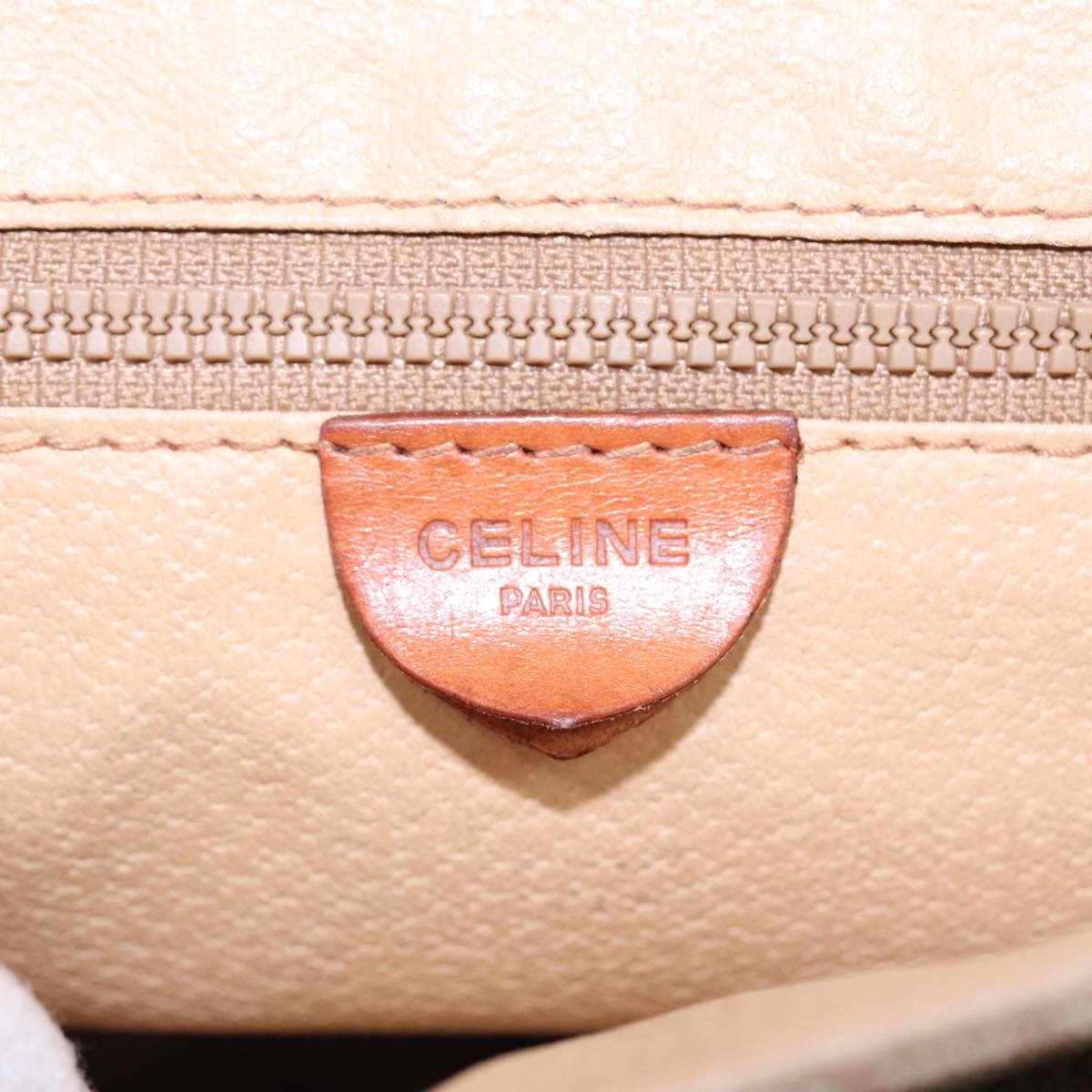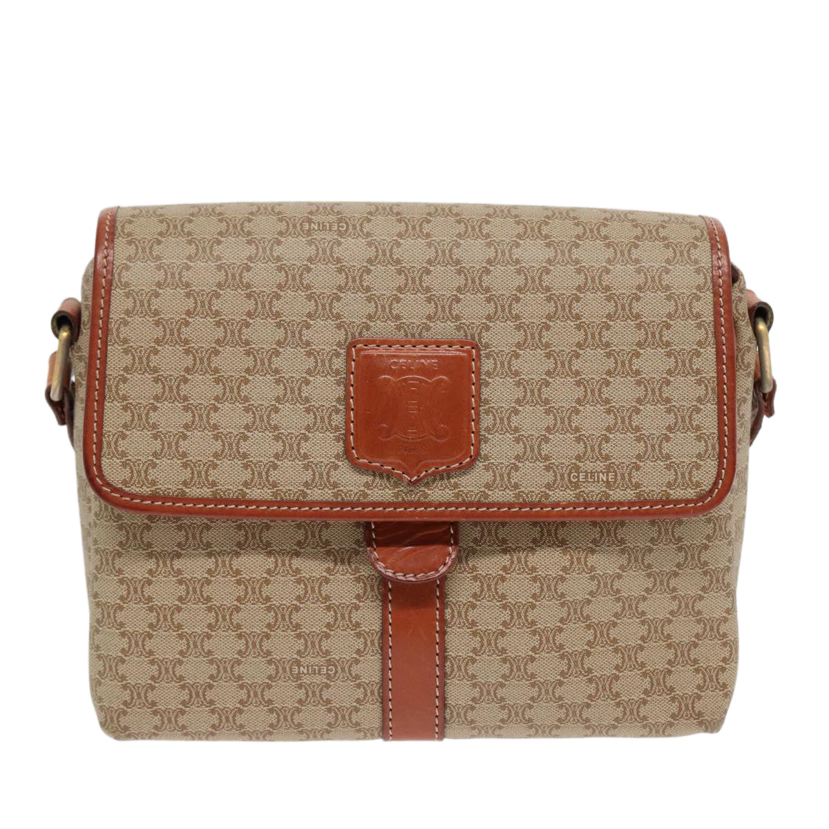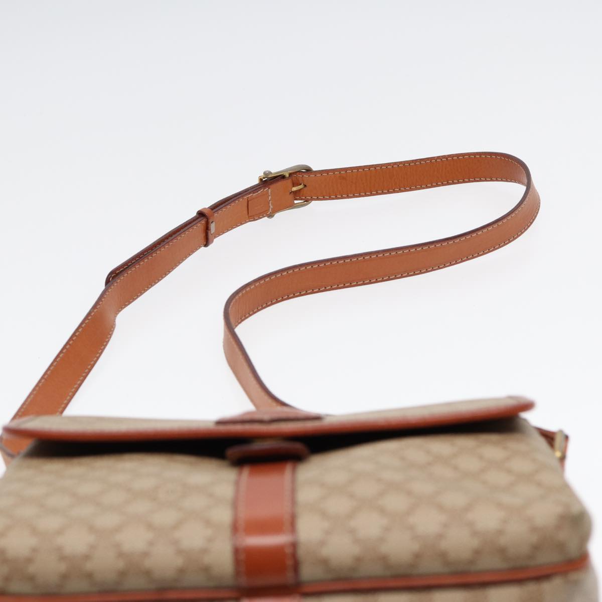 CELINE Macadam Canvas Shoulder Bag Beige Gold Auth 87069