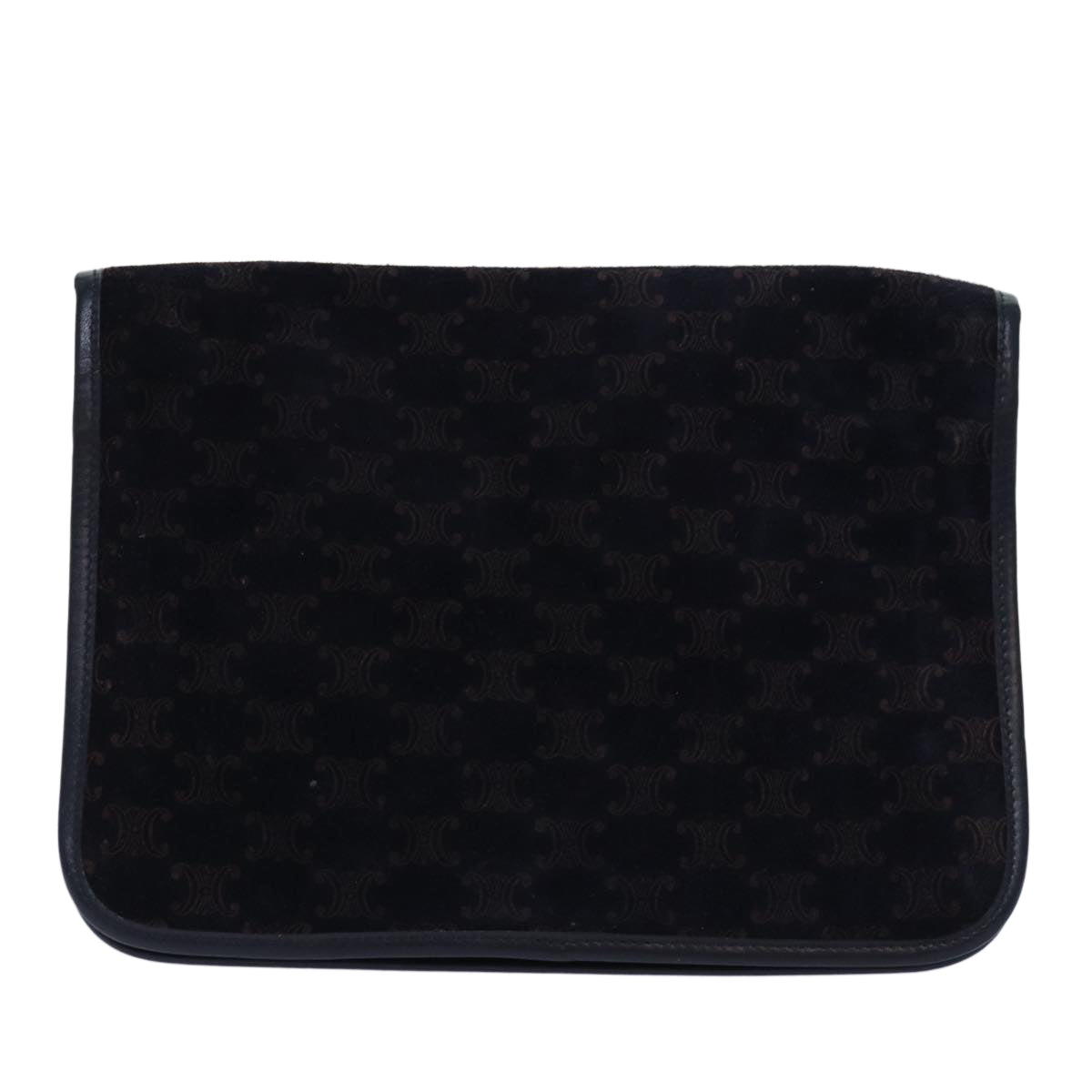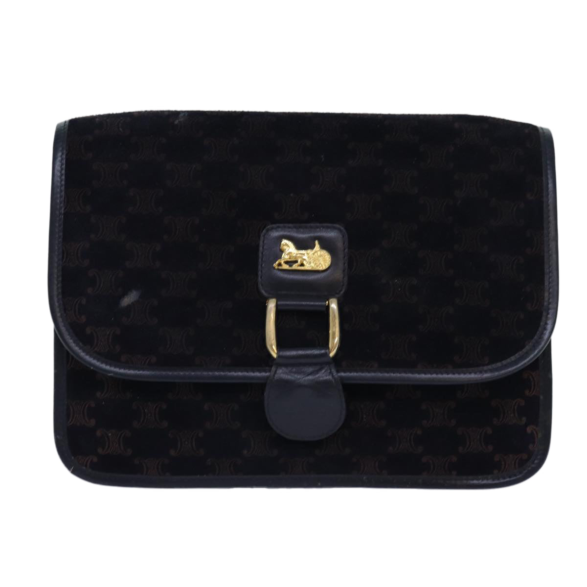 CELINE Macadam Canvas Shoulder Bag Black Auth 85006