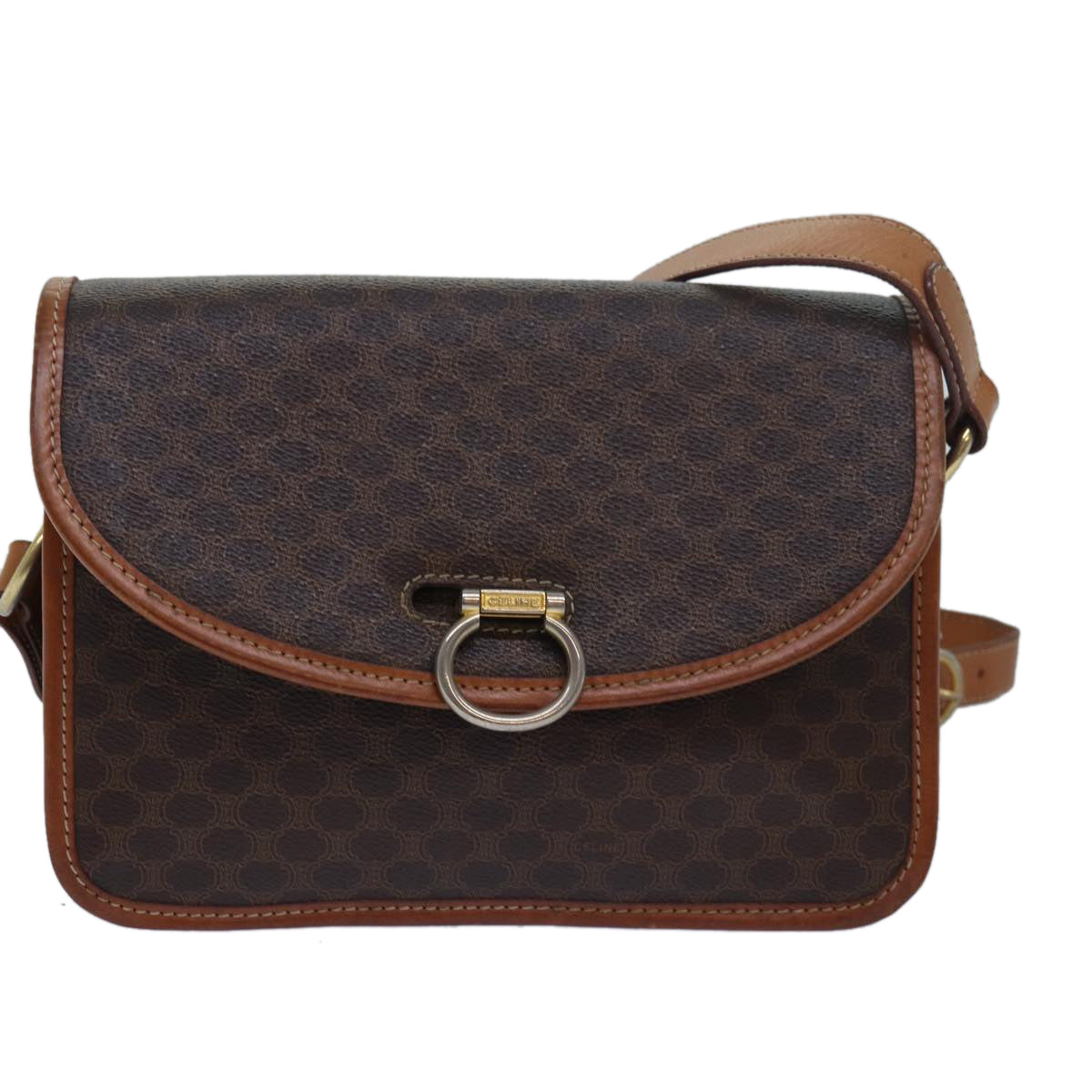 CELINE Macadam Canvas Shoulder Bag Brown Auth 80062