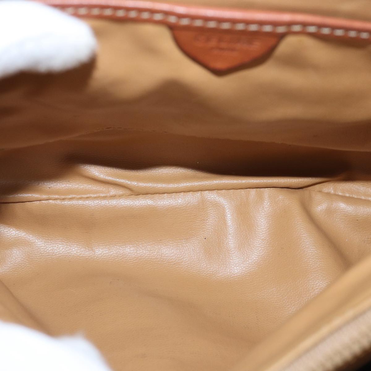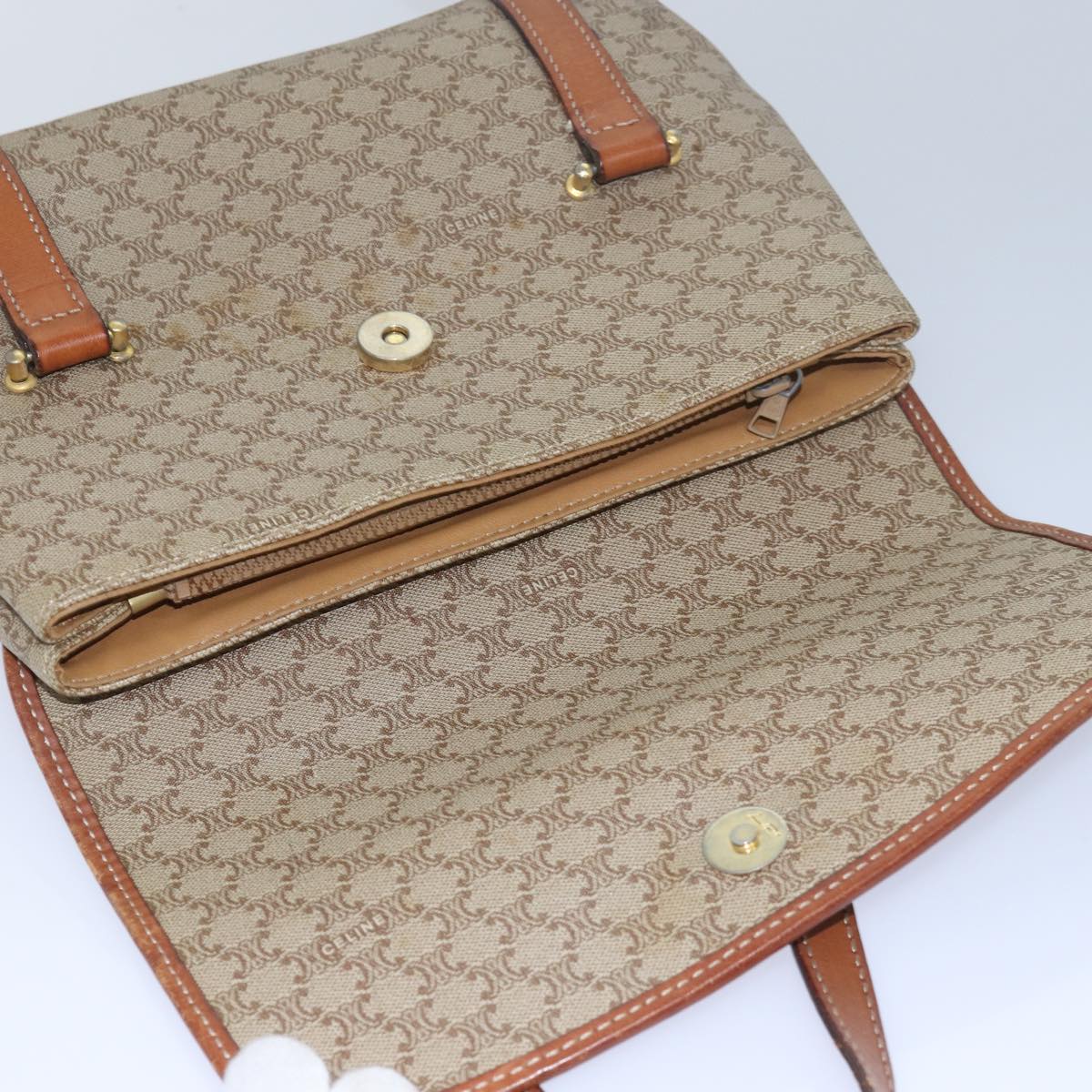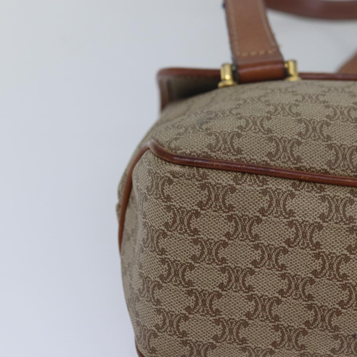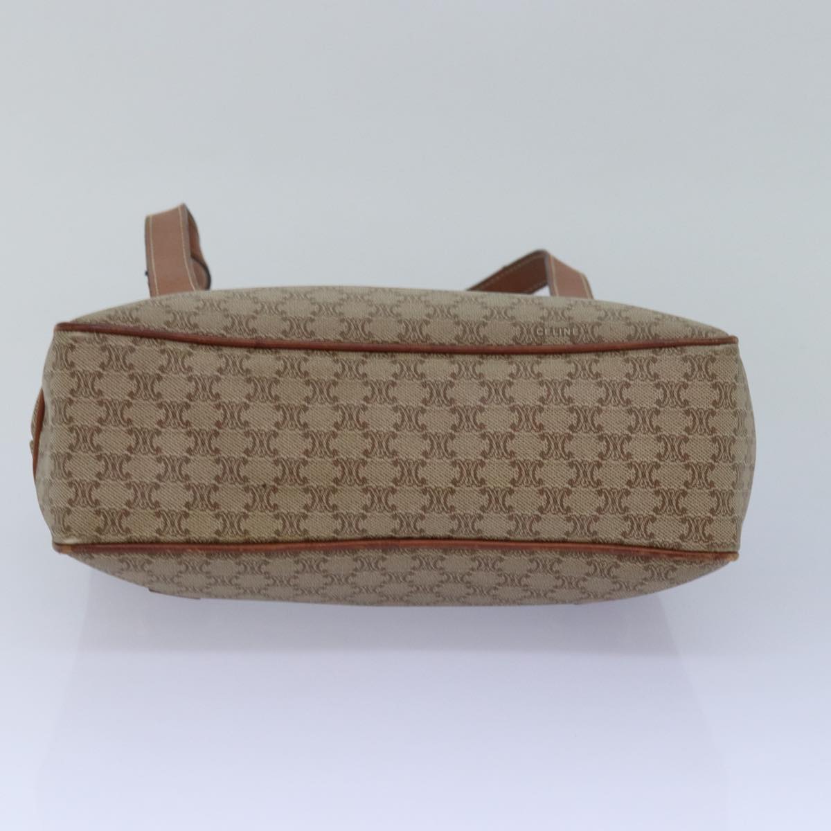 CELINE Macadam Canvas Shoulder Bag Leather Beige Auth 78316