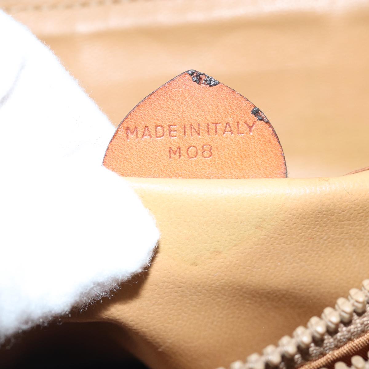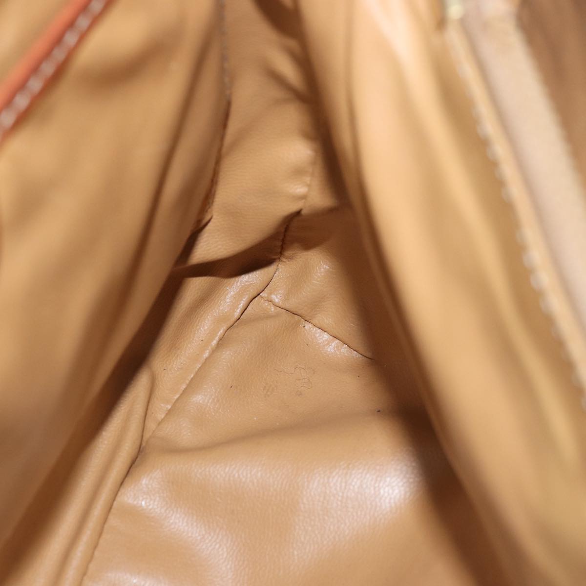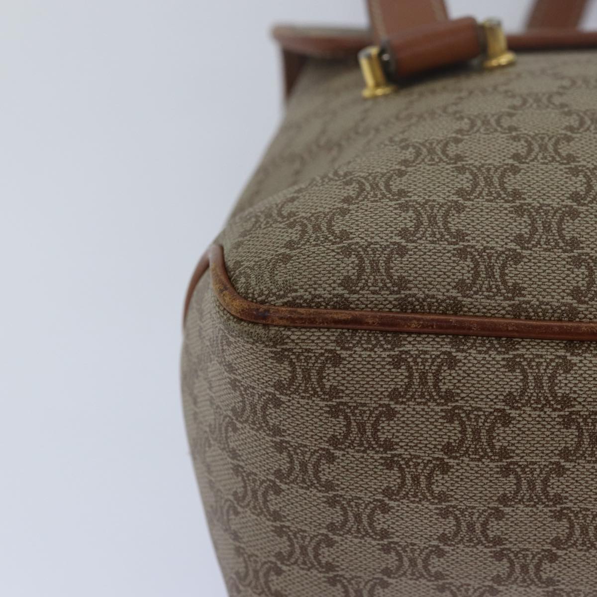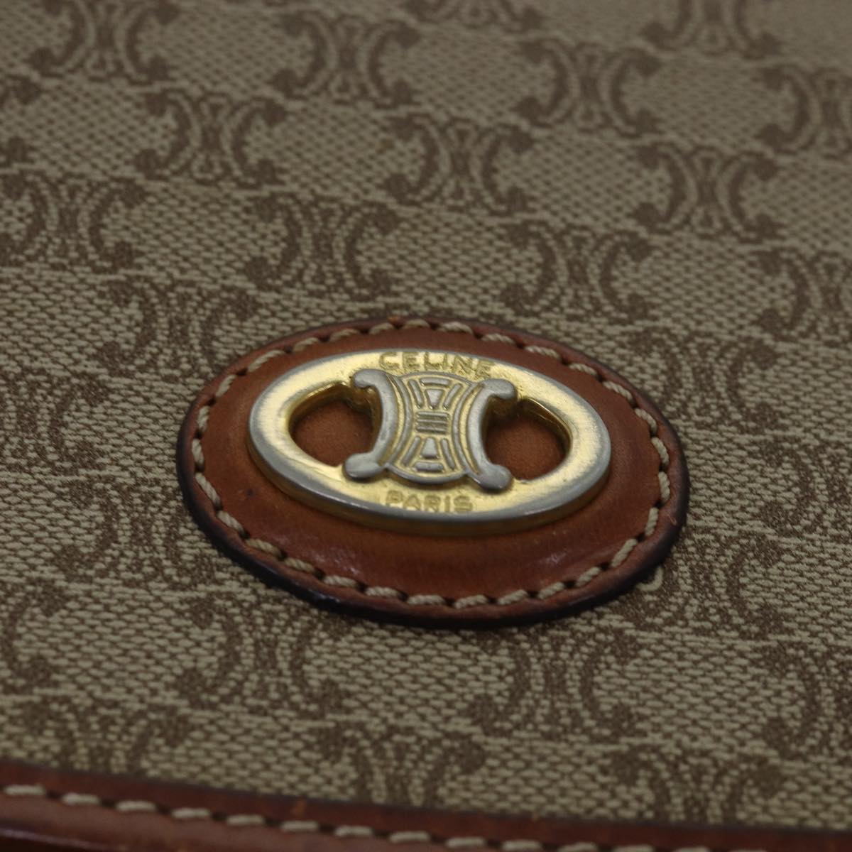 CELINE Macadam Canvas Shoulder Bag Leather Beige Auth 78316