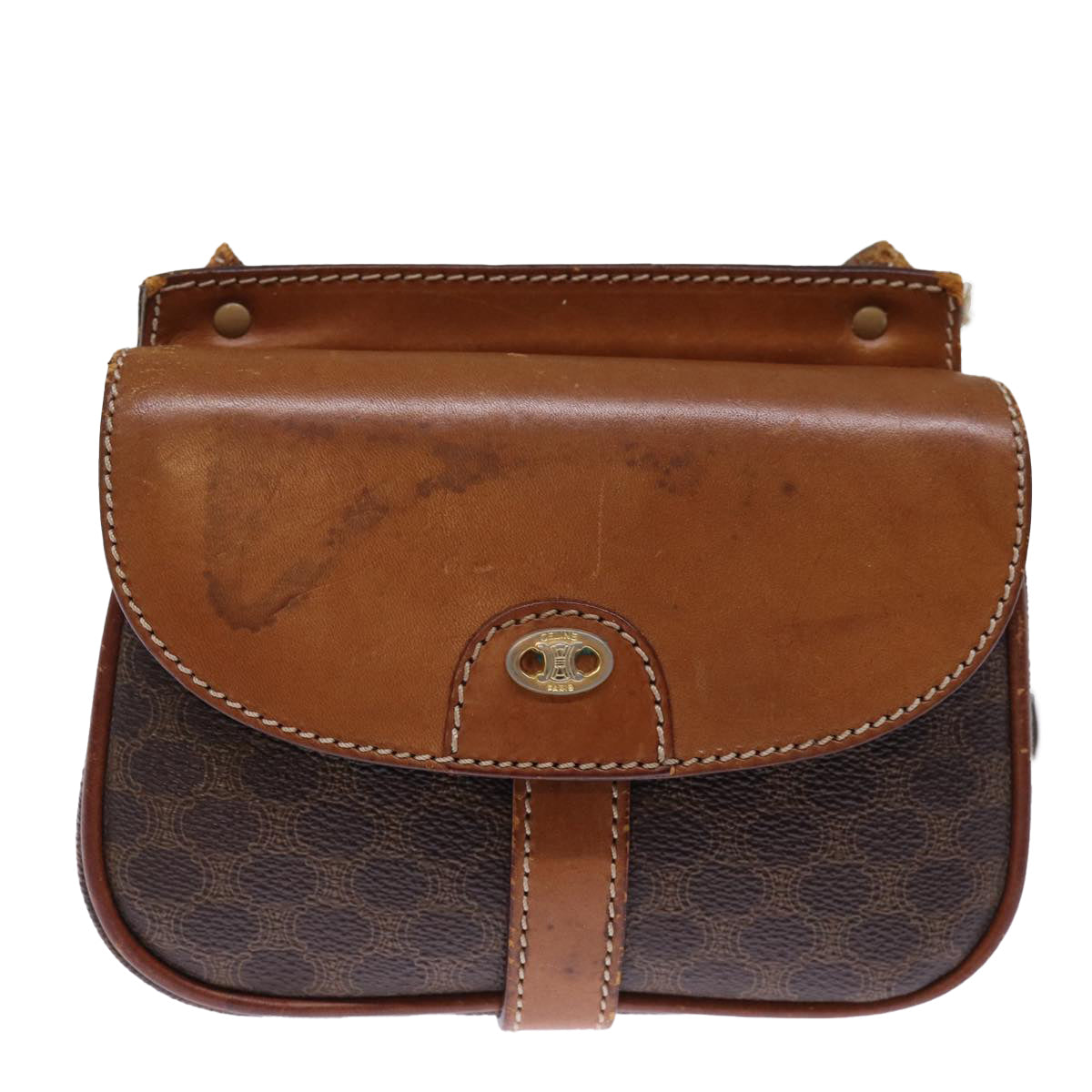 CELINE Macadam Canvas Shoulder Bag PVC Brown Auth bs14797