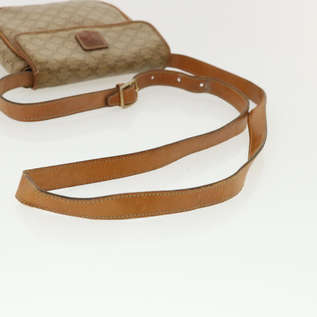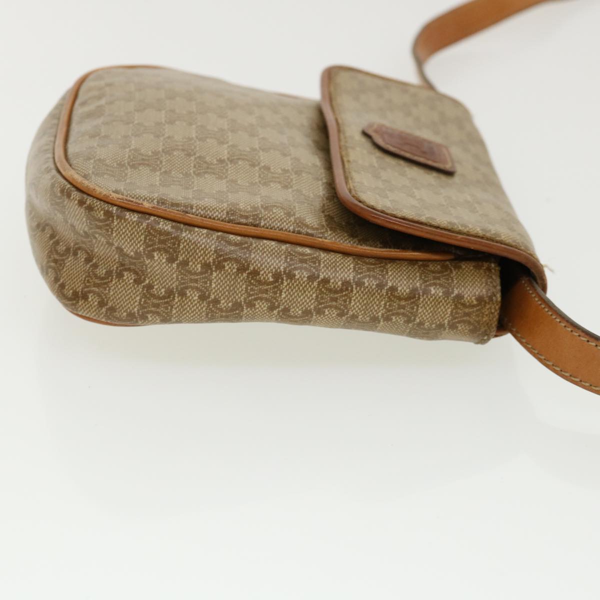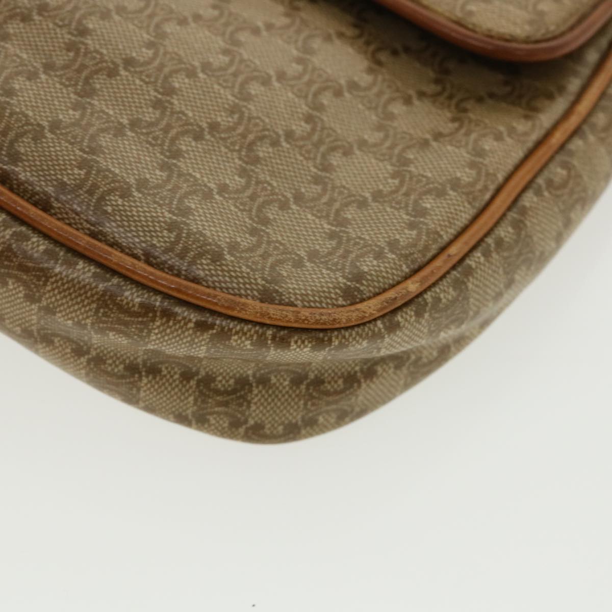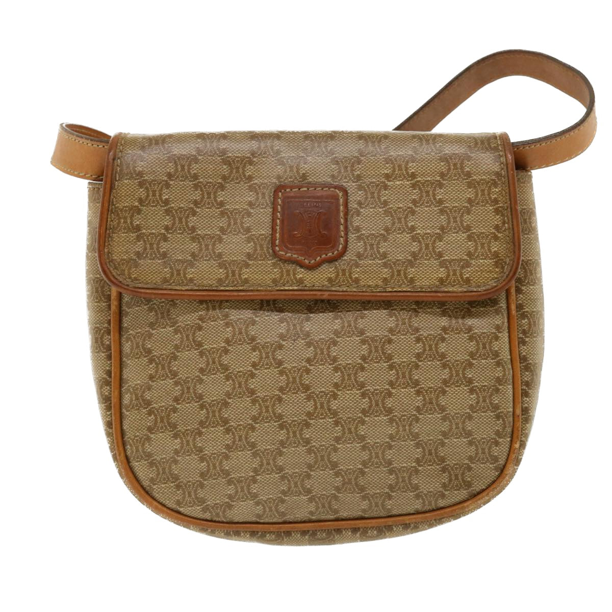Celine Macadam Canvas Shoulder Bag PVC Leather Beige 35355