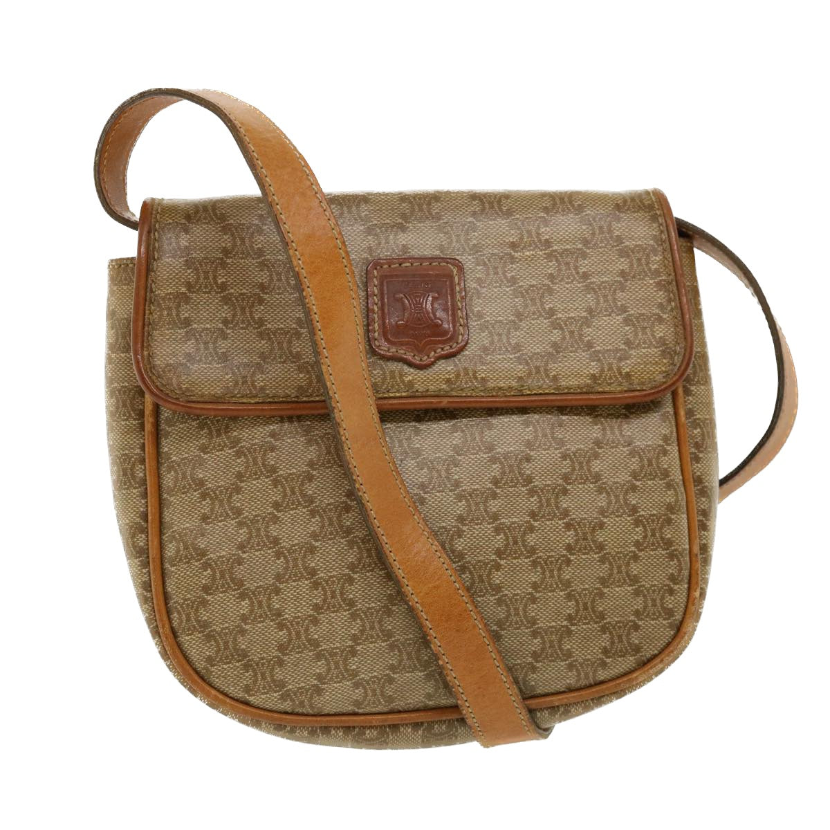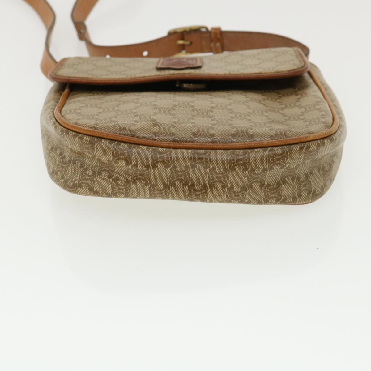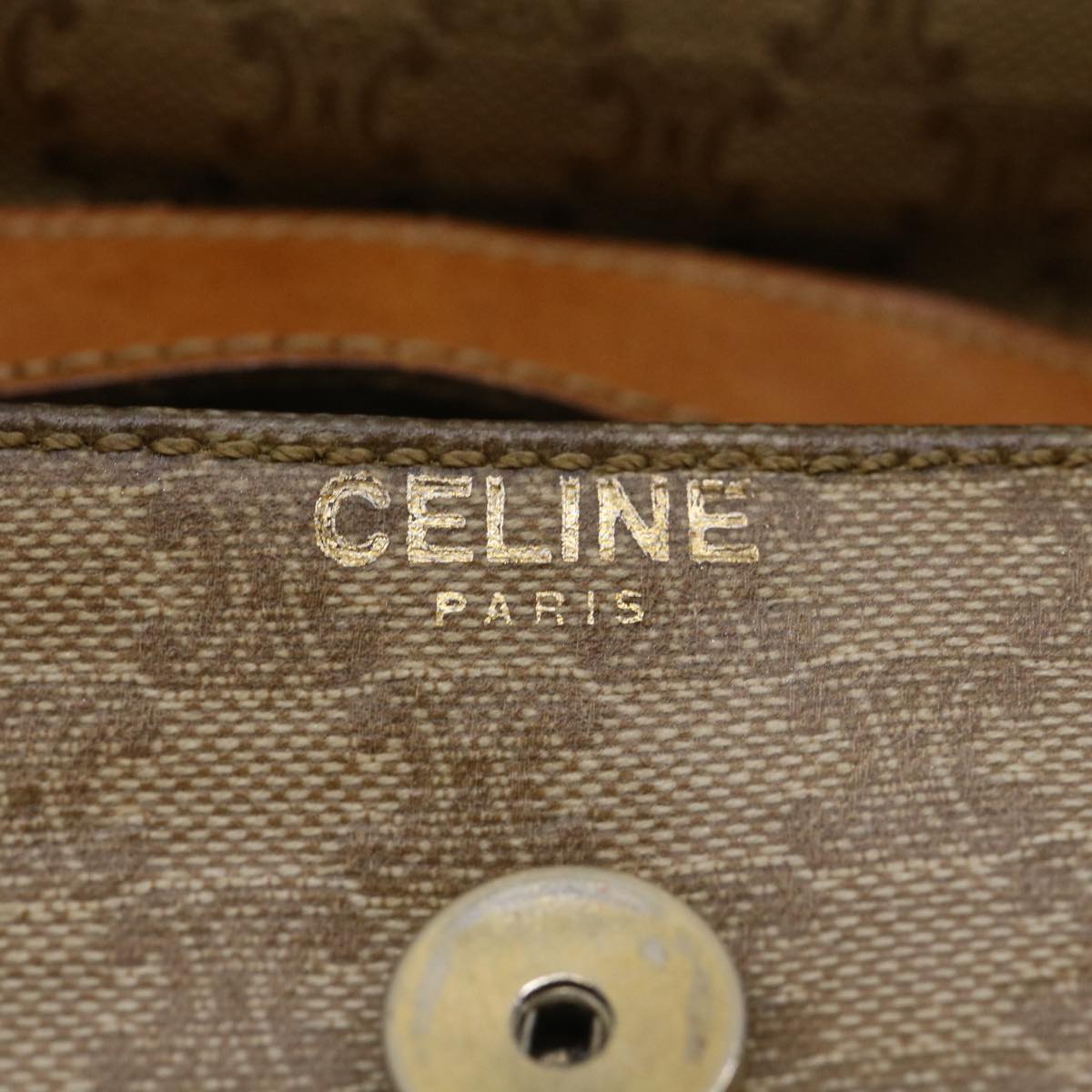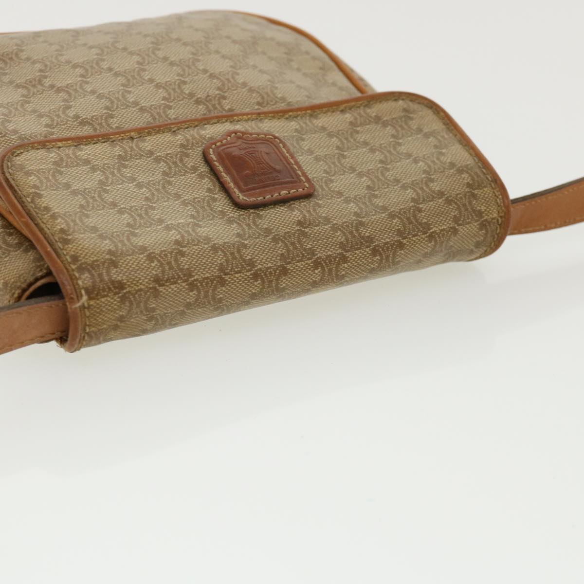 Celine Macadam Canvas Shoulder Bag PVC Leather Beige 35355