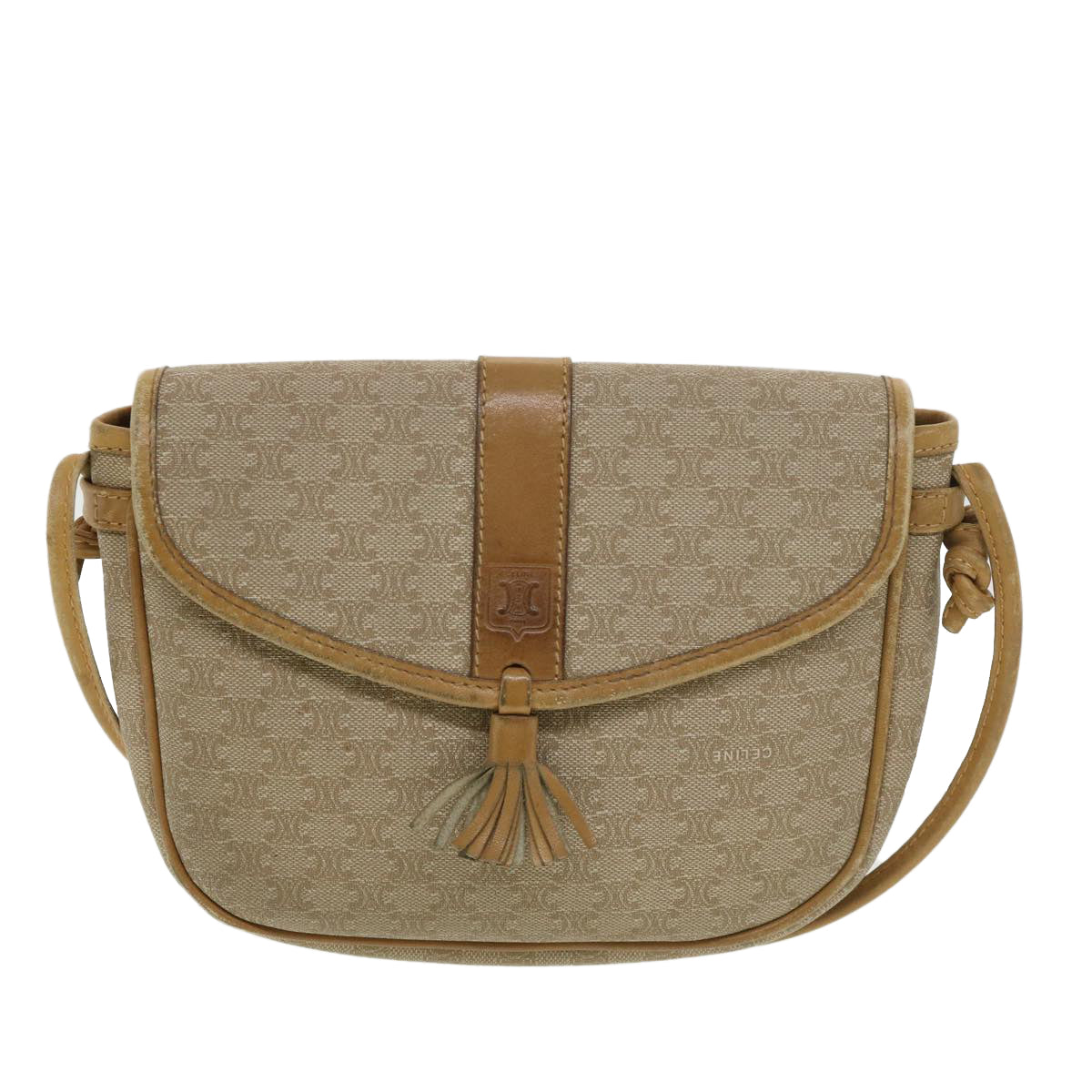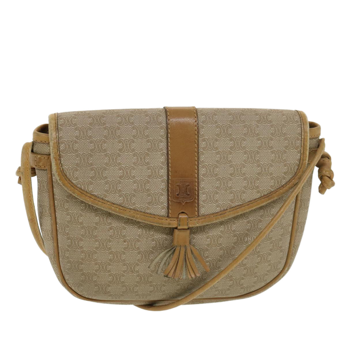 Celine Macadam Canvas Shoulder Bag PVC Leather Beige 39182
