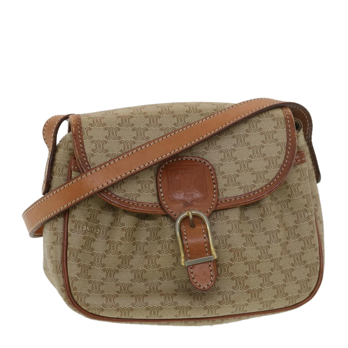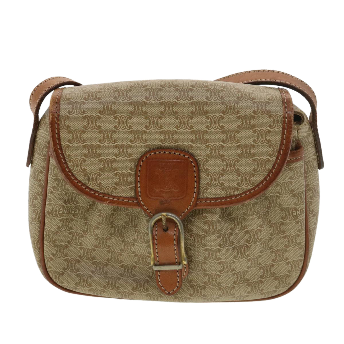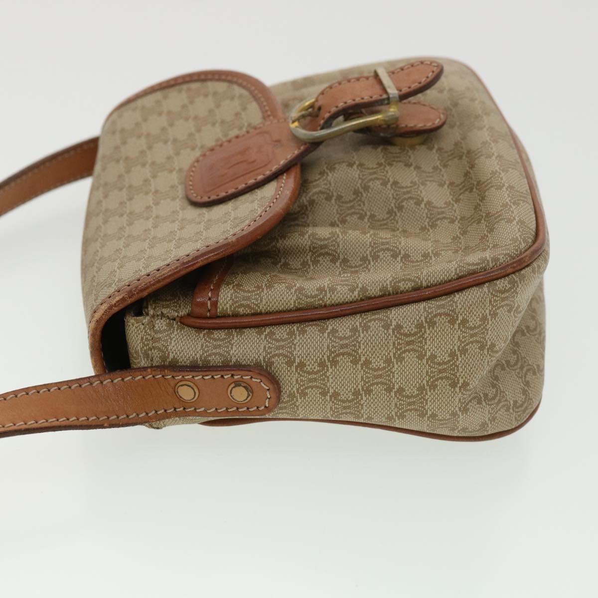 Celine Macadam Canvas Shoulder Bag PVC Leather Beige 39417