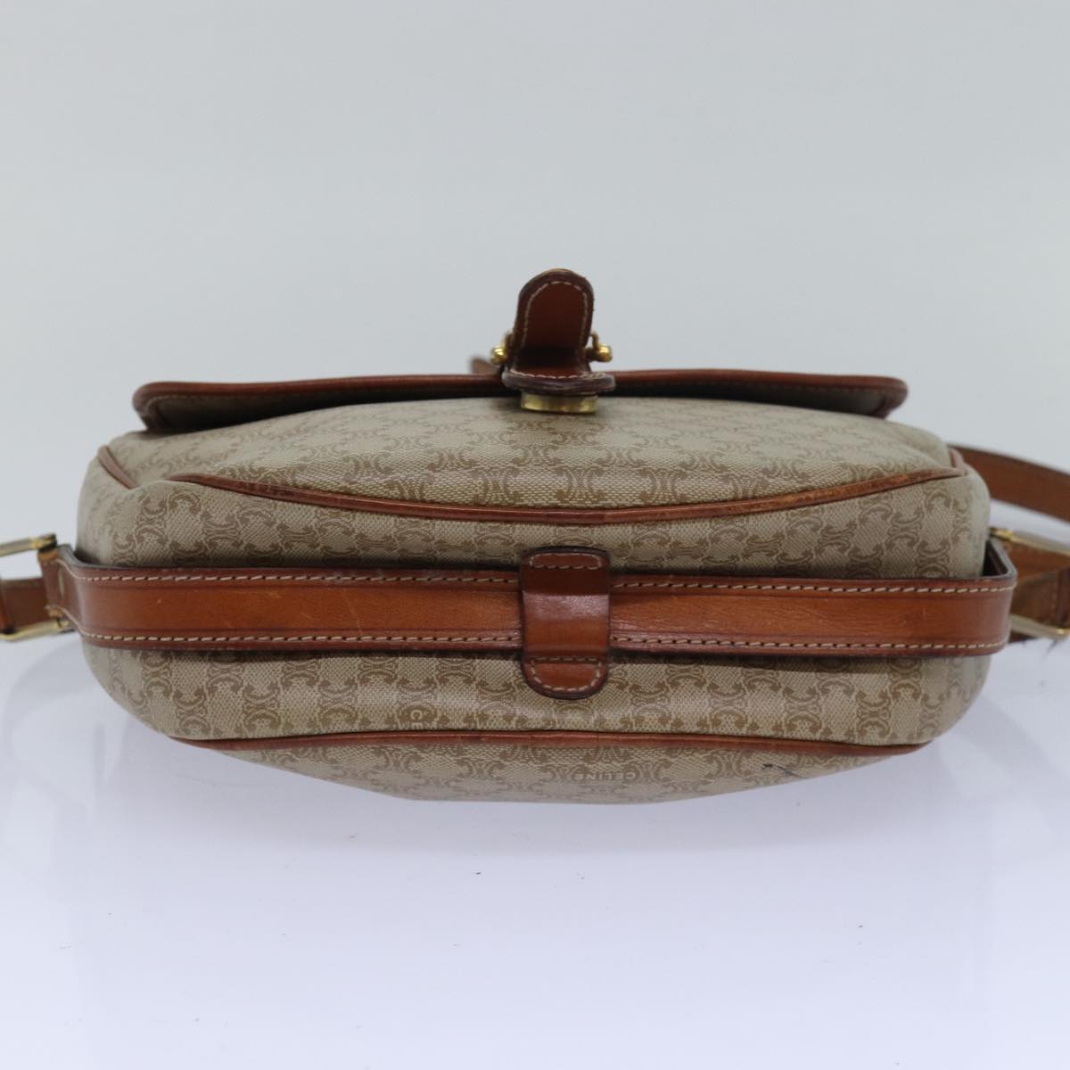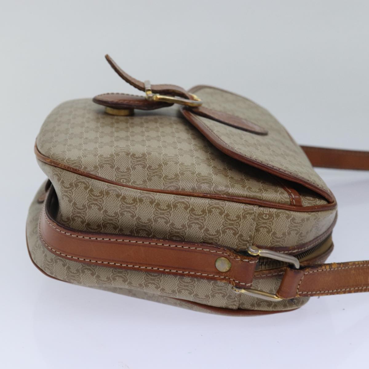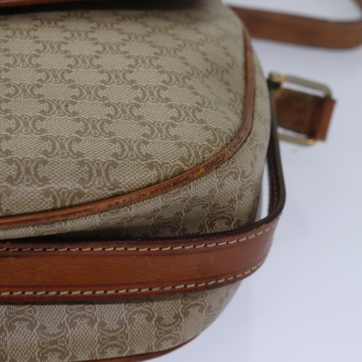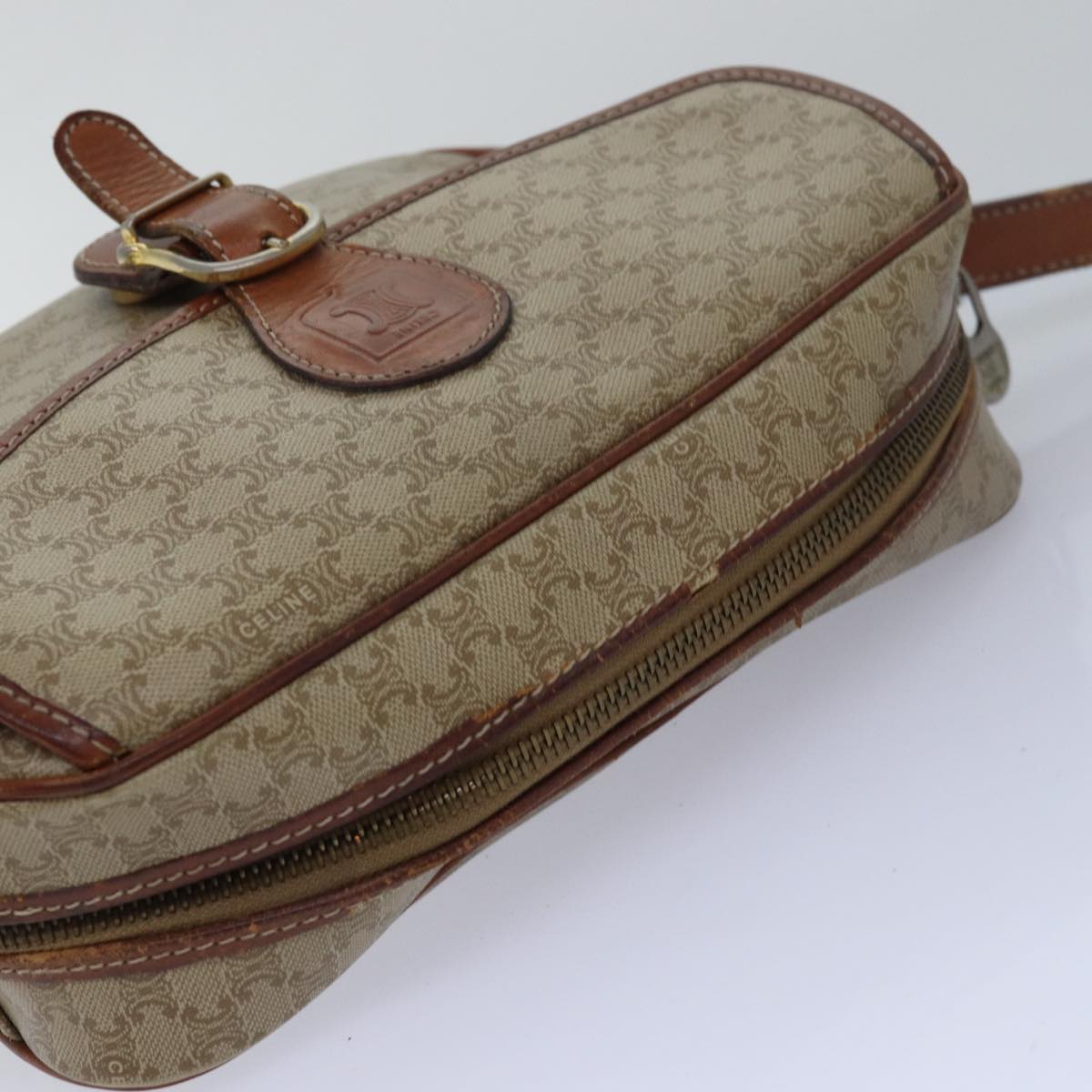 CELINE Macadam Canvas Shoulder Bag PVC Leather Beige Auth 80230
