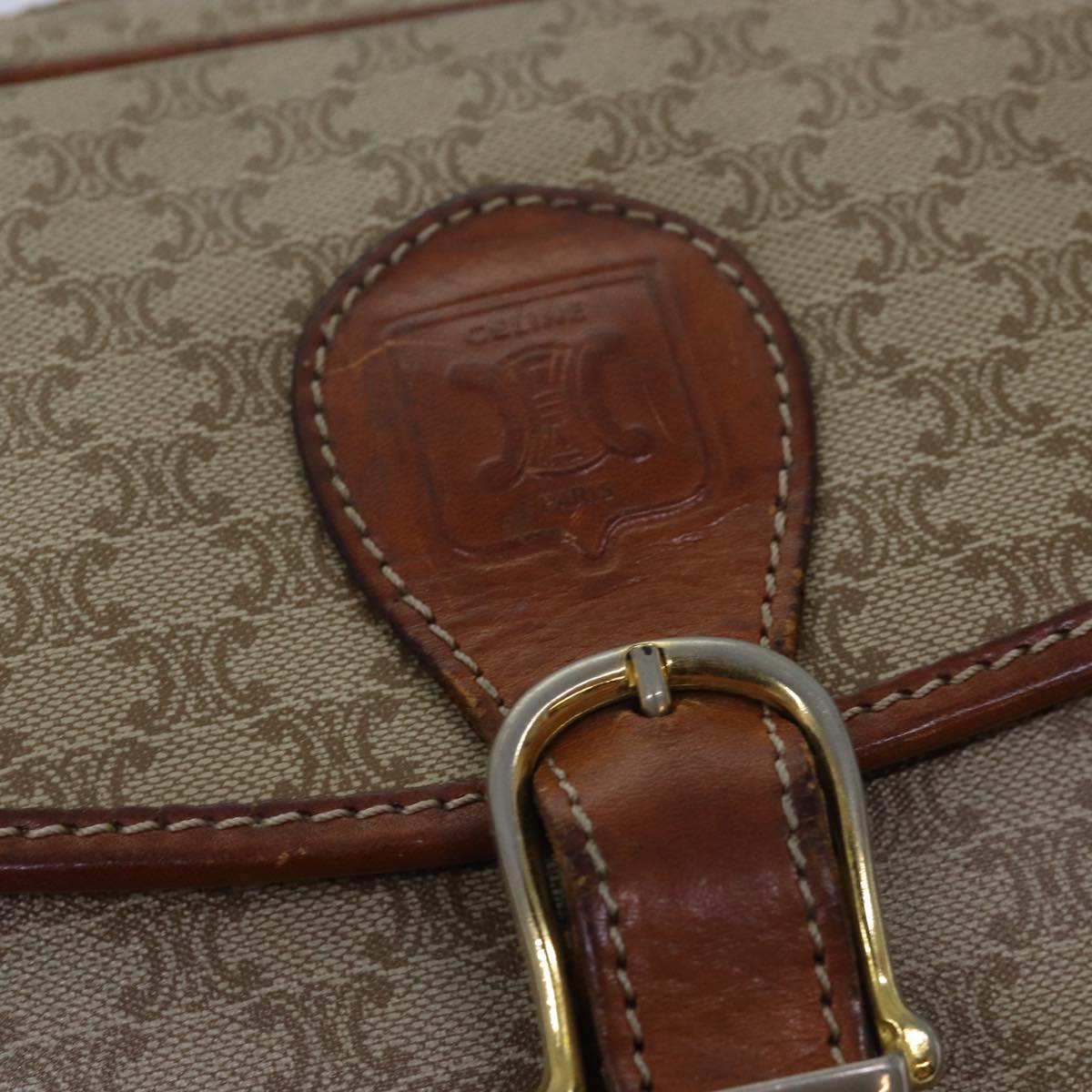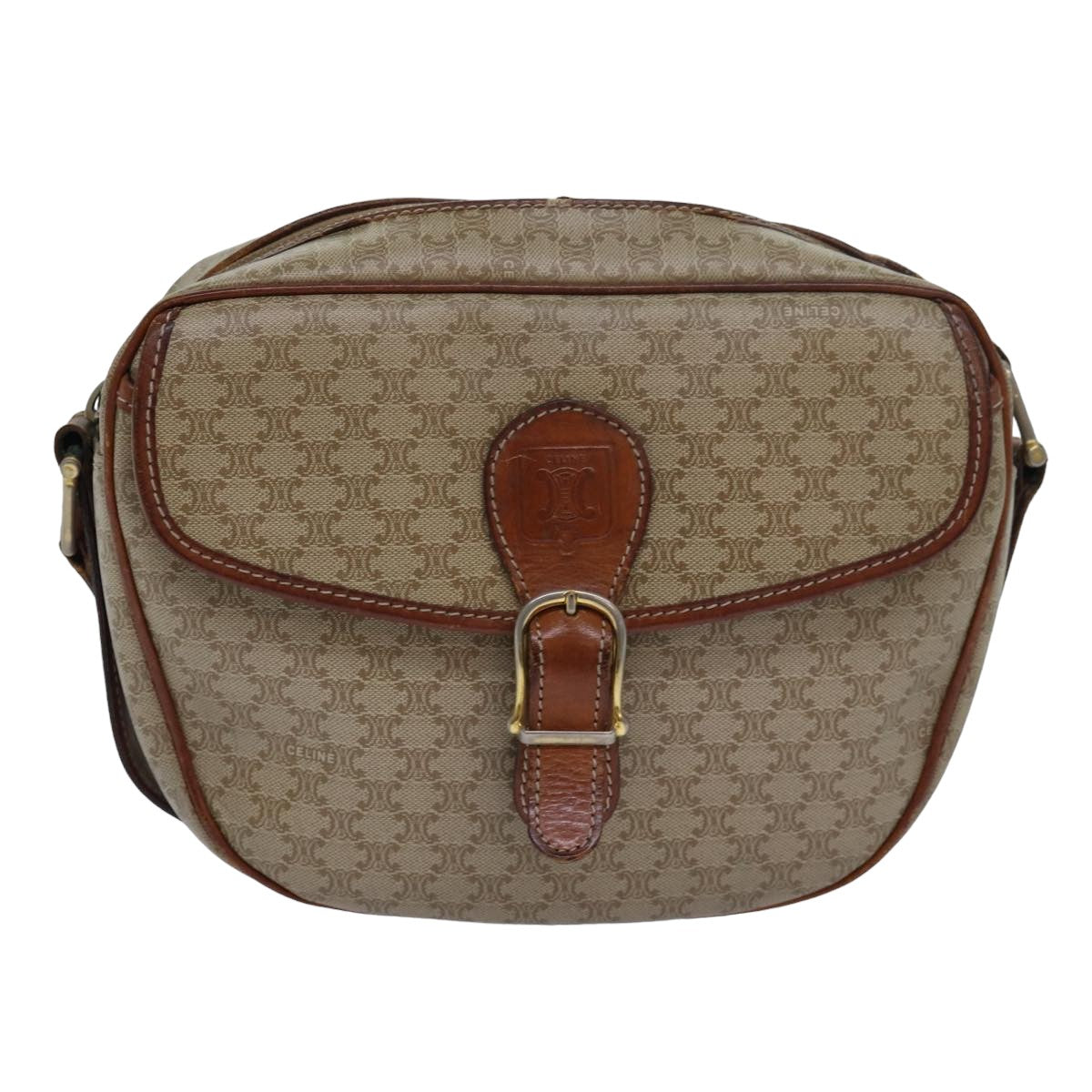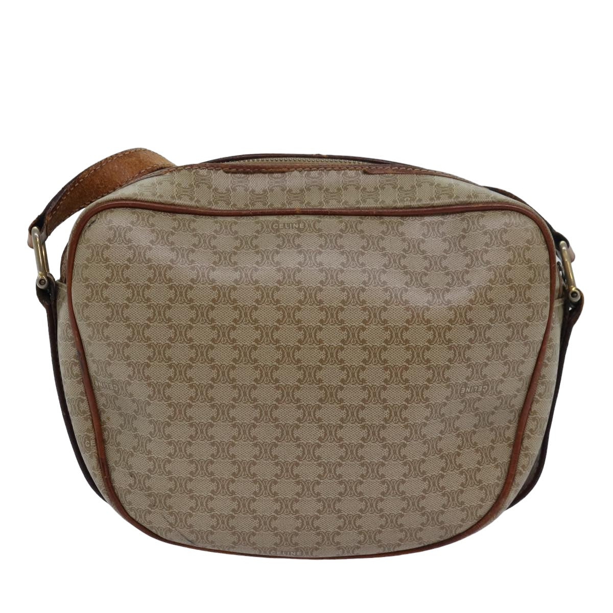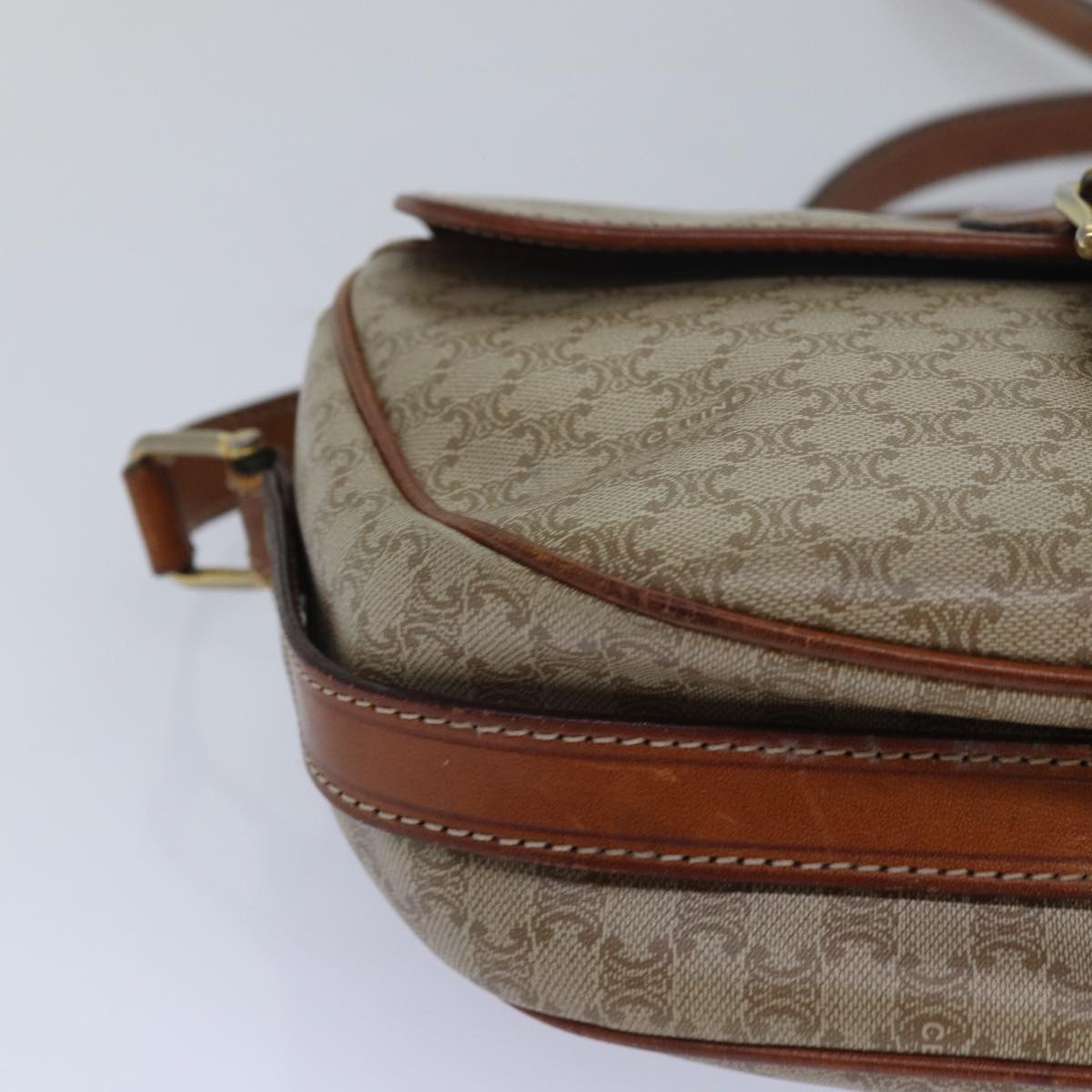 CELINE Macadam Canvas Shoulder Bag PVC Leather Beige Auth 80230
