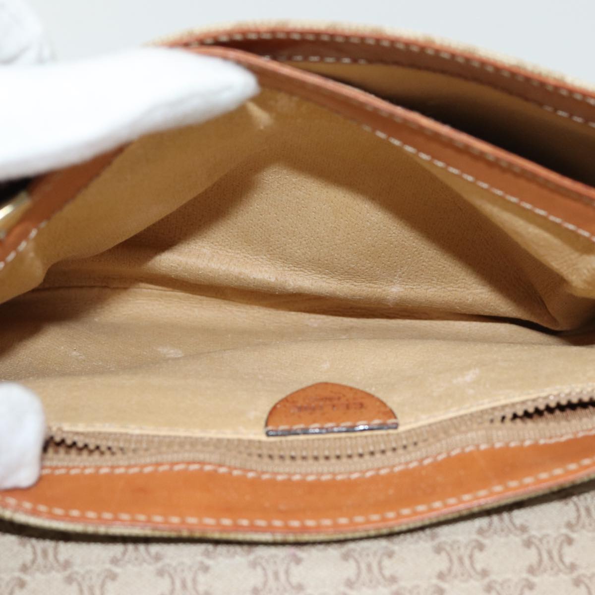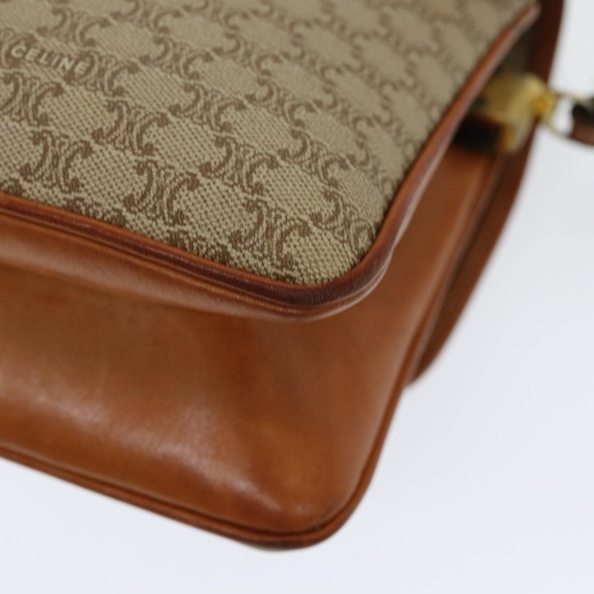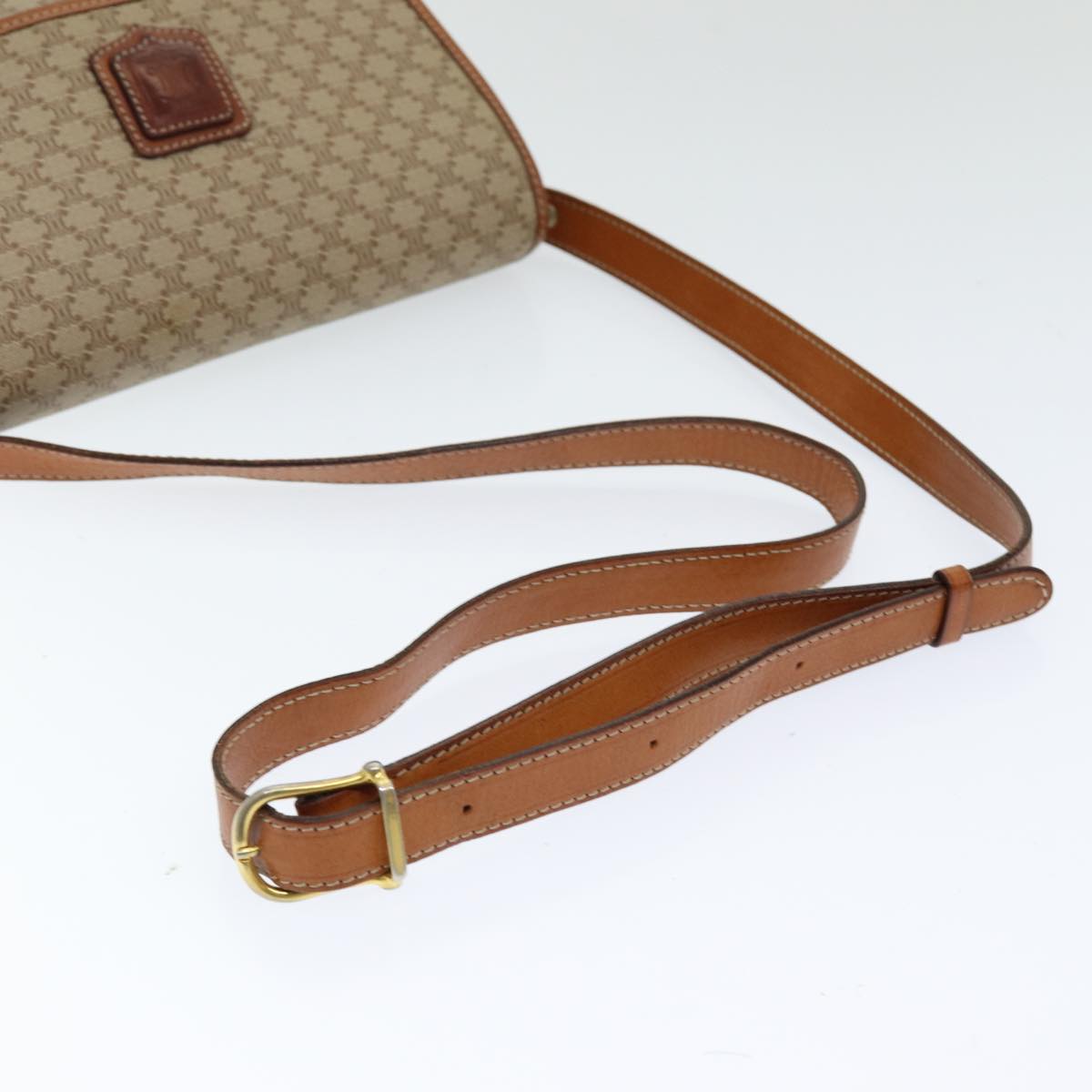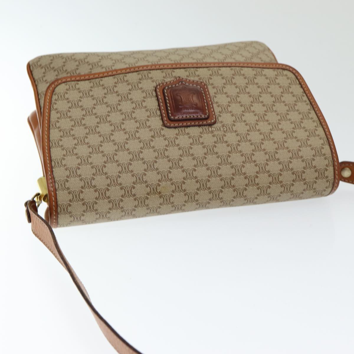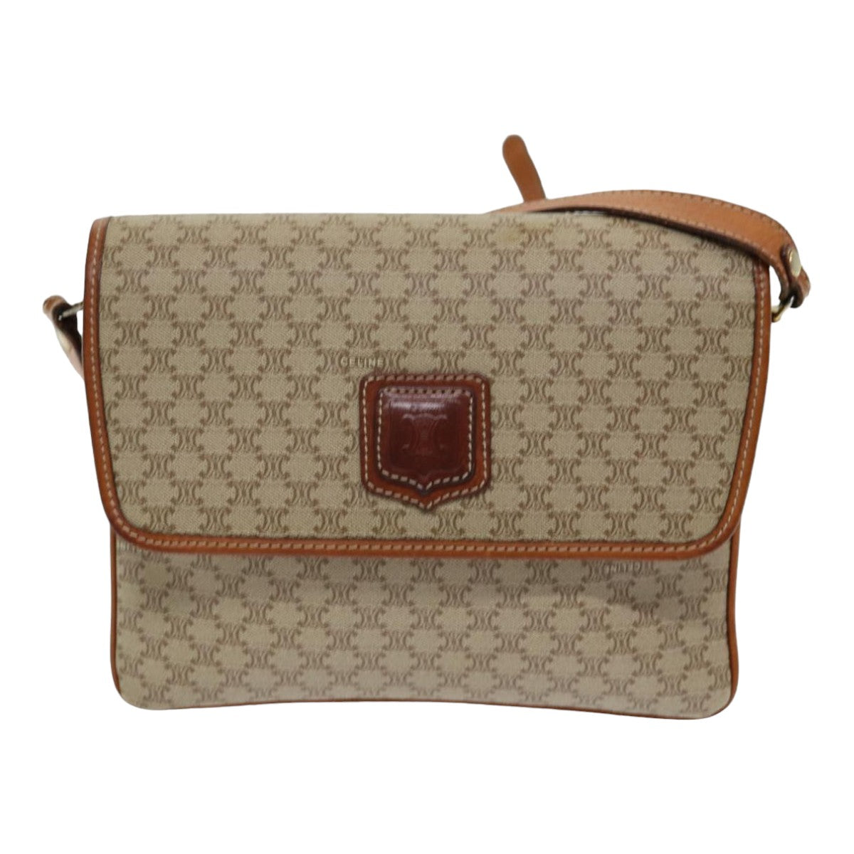 CELINE Macadam Canvas Shoulder Bag PVC Leather Beige Auth 83676