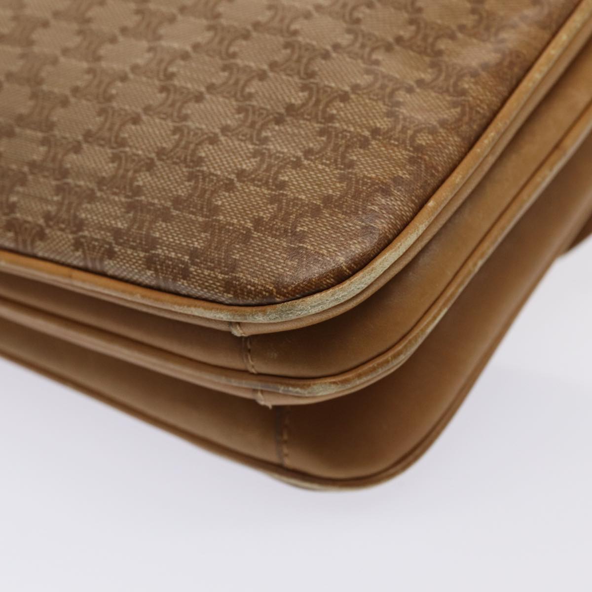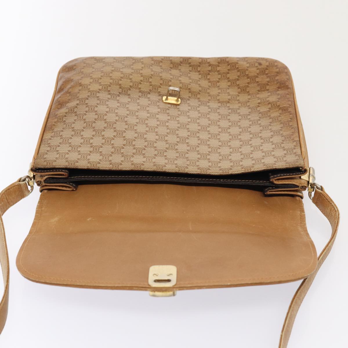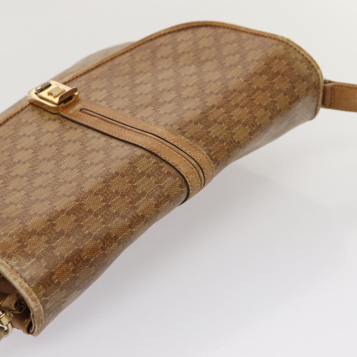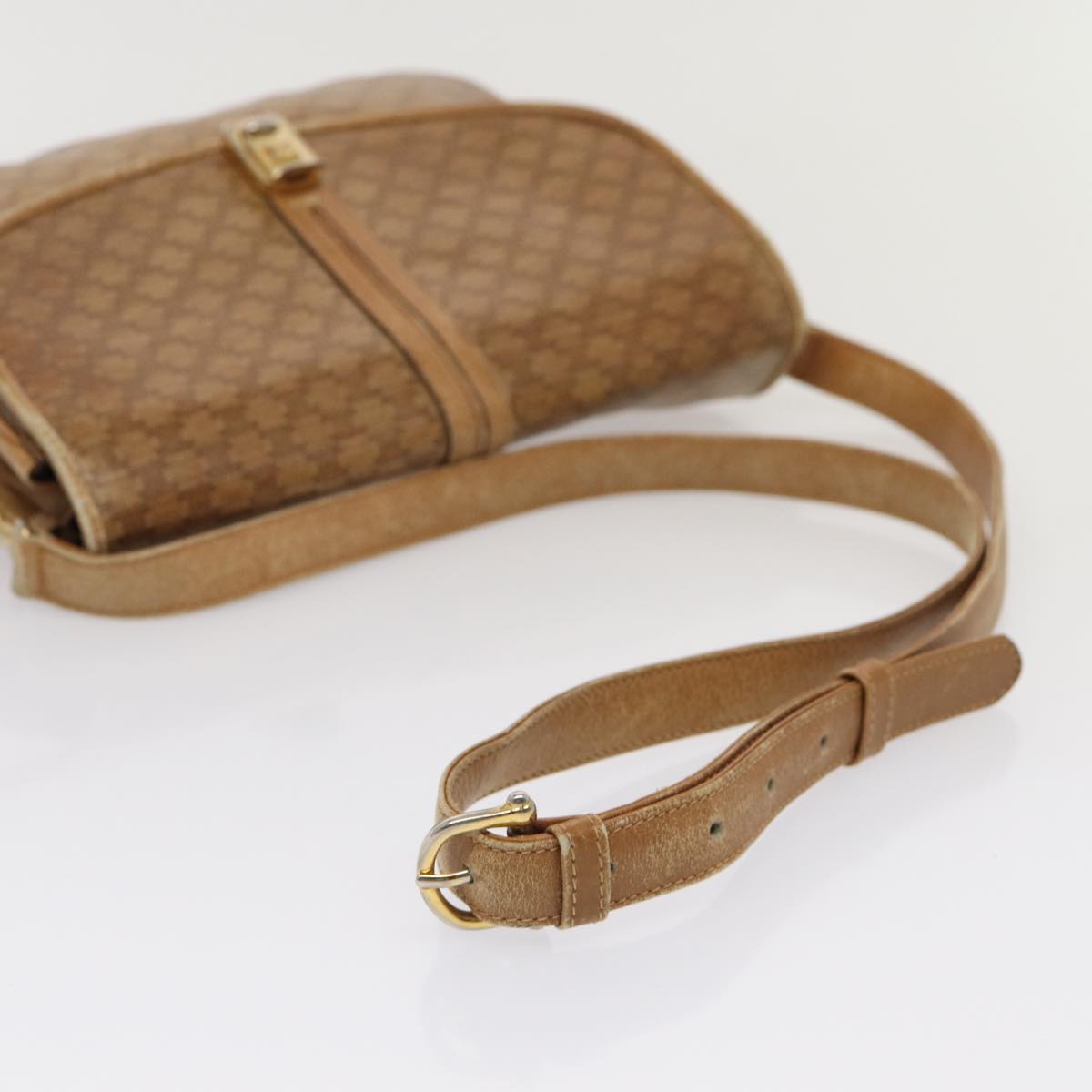 CELINE Macadam Canvas Shoulder Bag PVC Leather Beige Auth bs16217