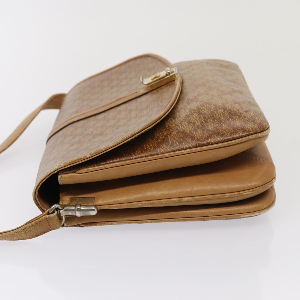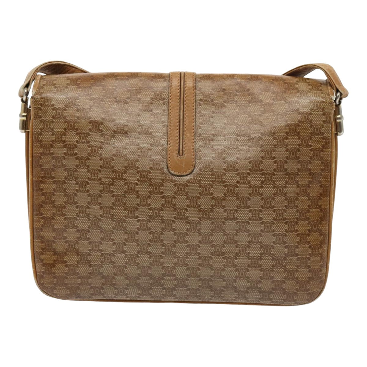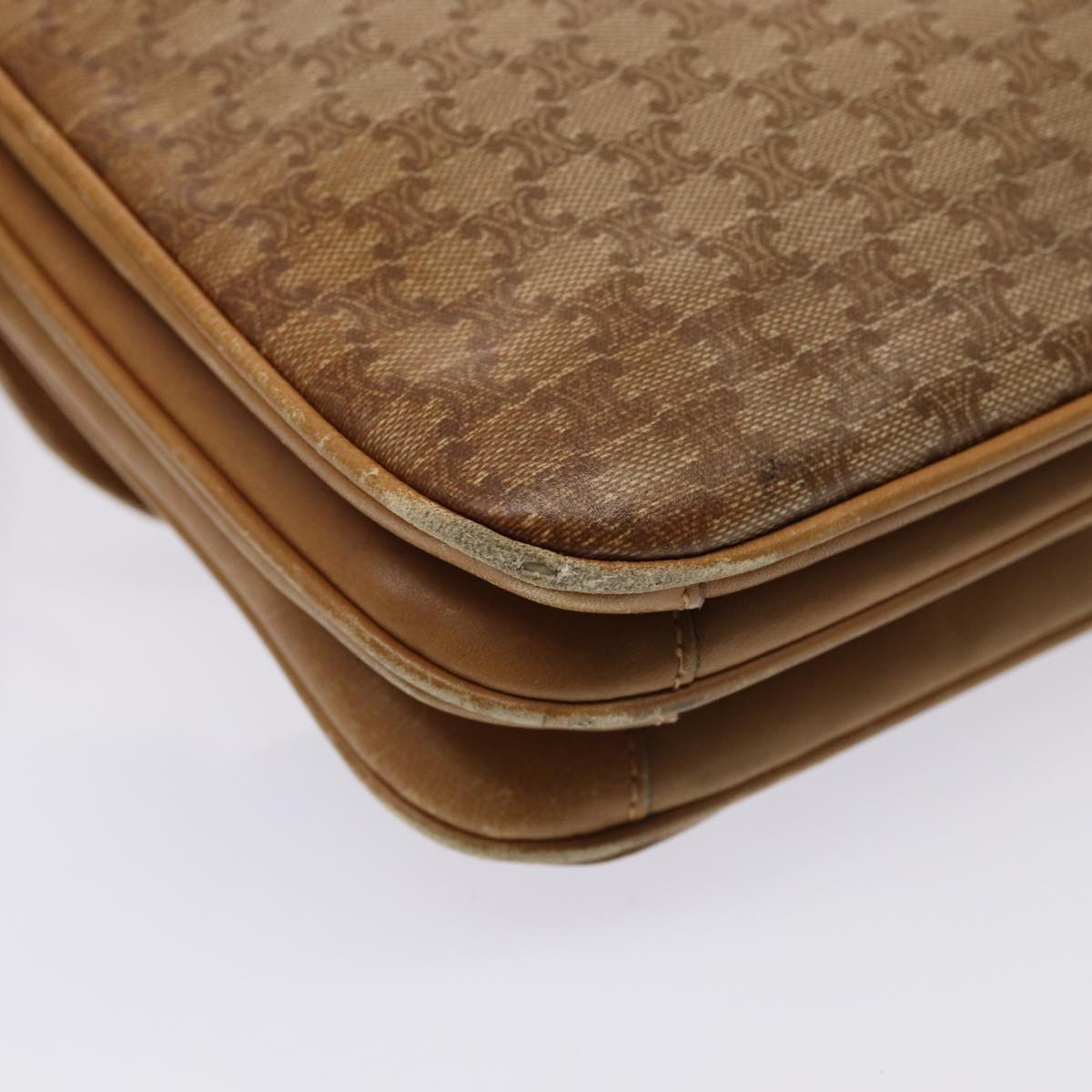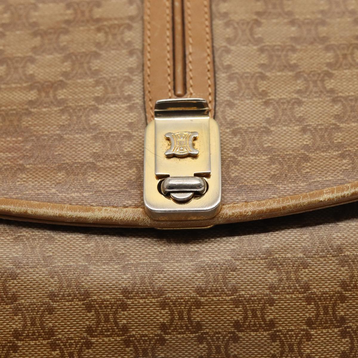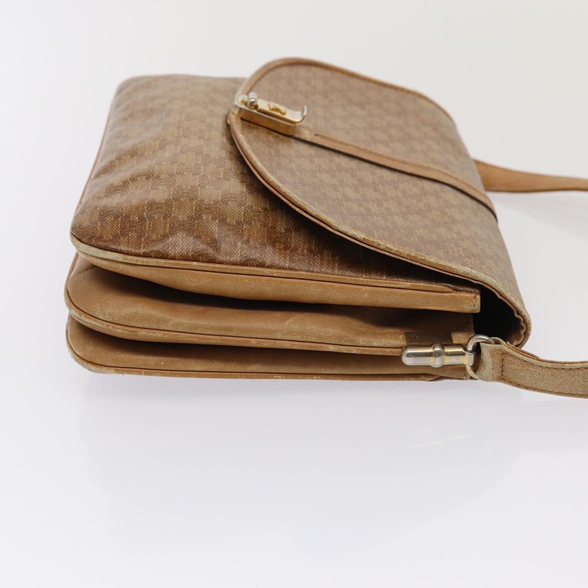 CELINE Macadam Canvas Shoulder Bag PVC Leather Beige Auth bs16217