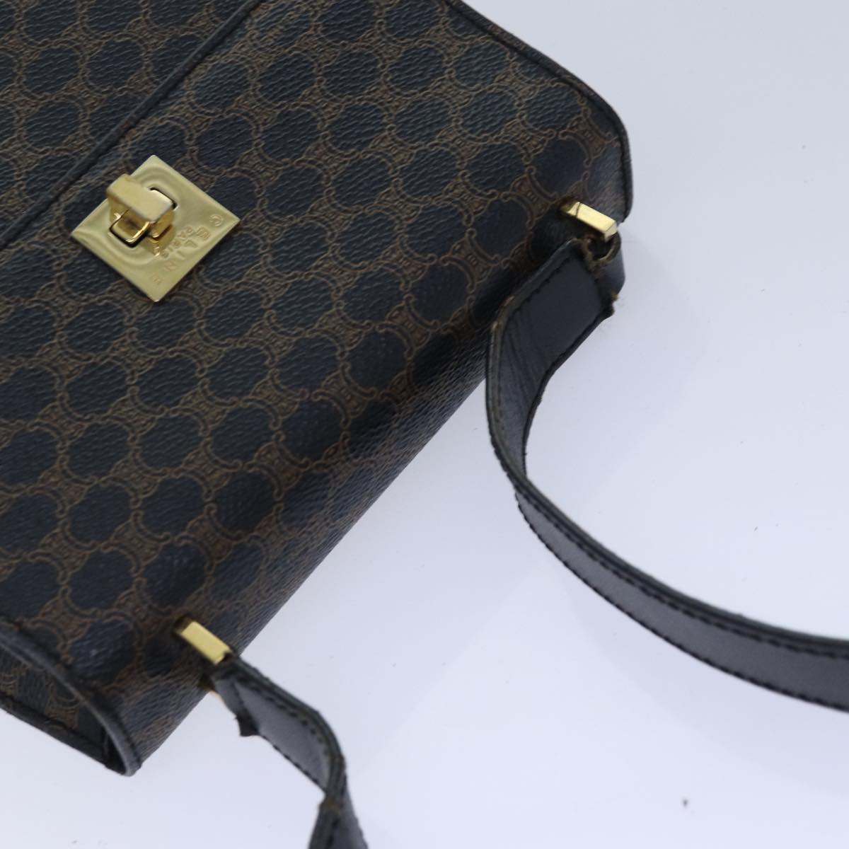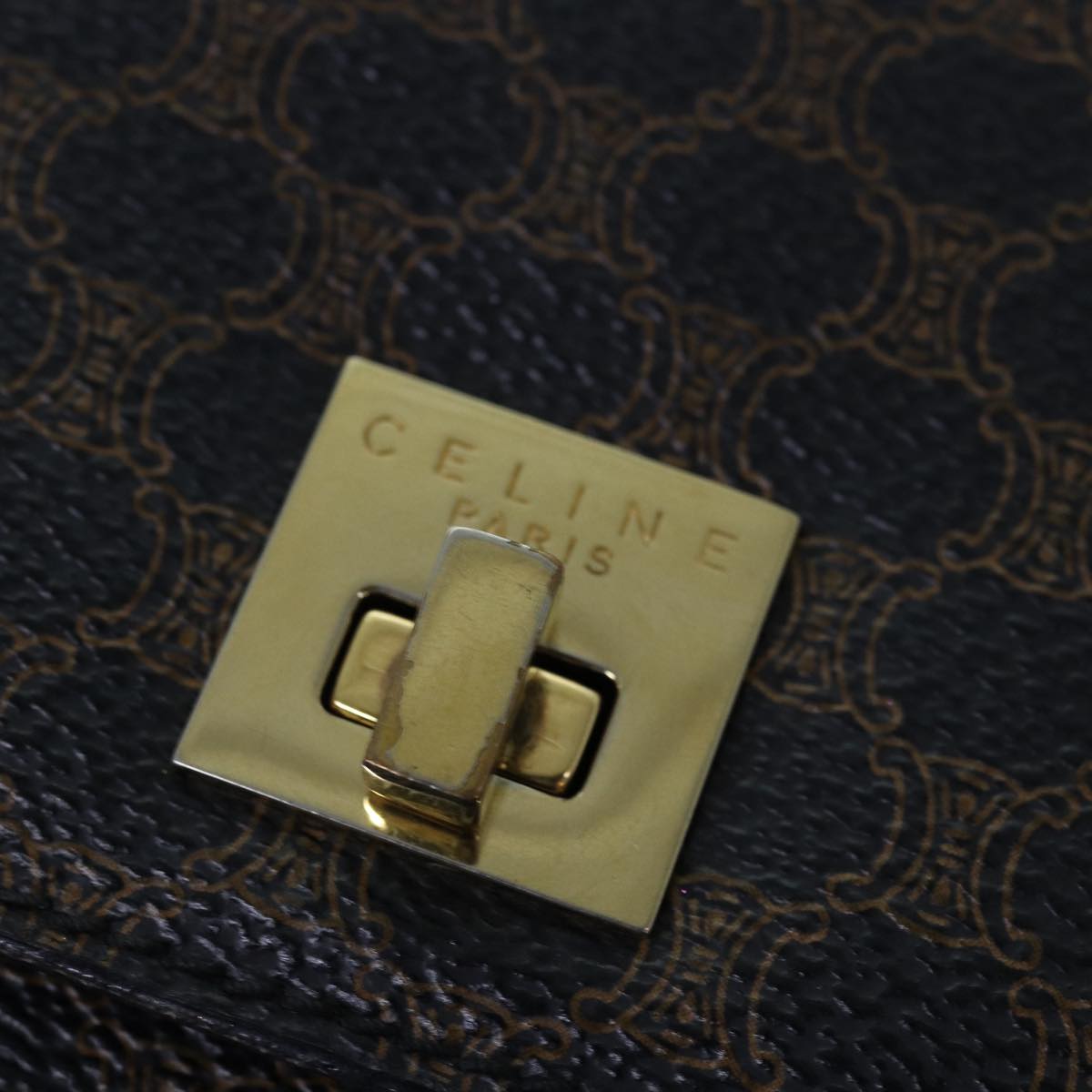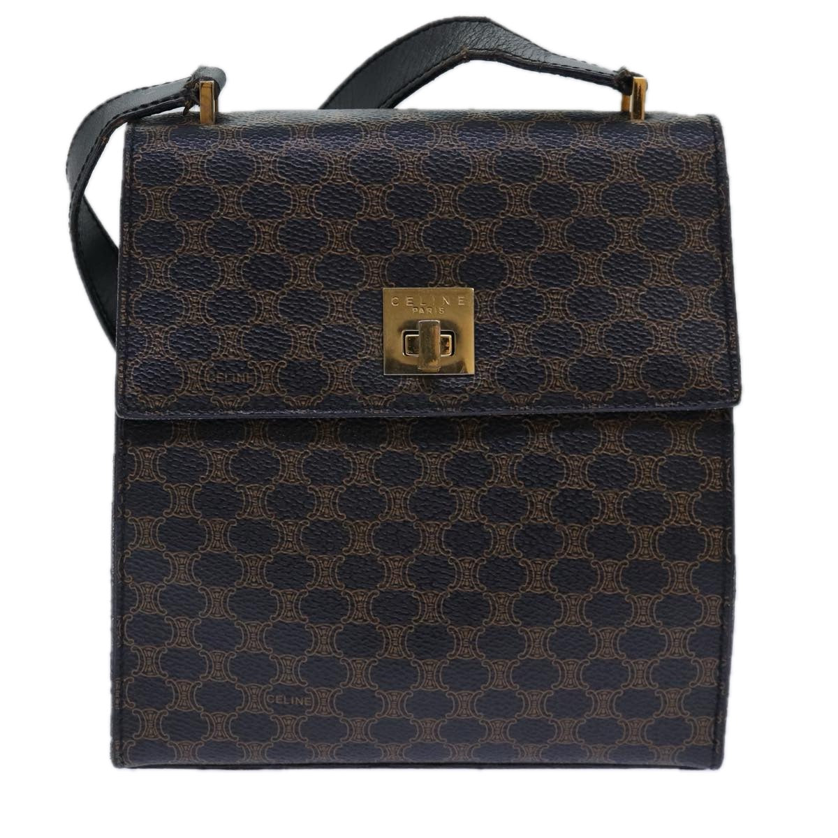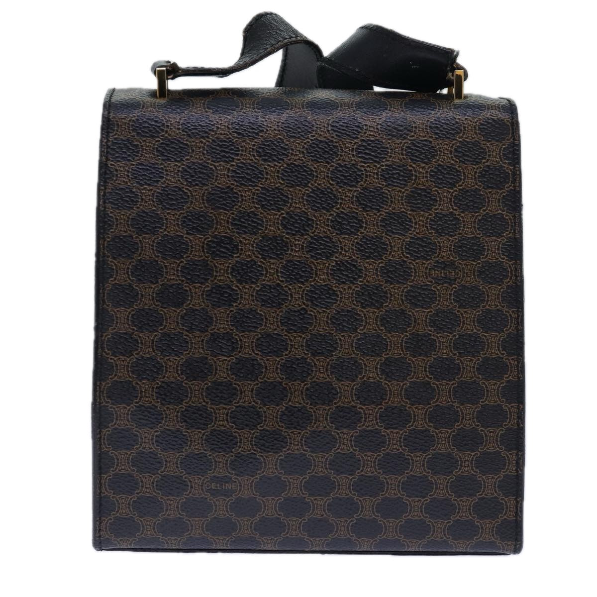 CELINE Macadam Canvas Shoulder Bag PVC Leather Black Gold Auth 85105