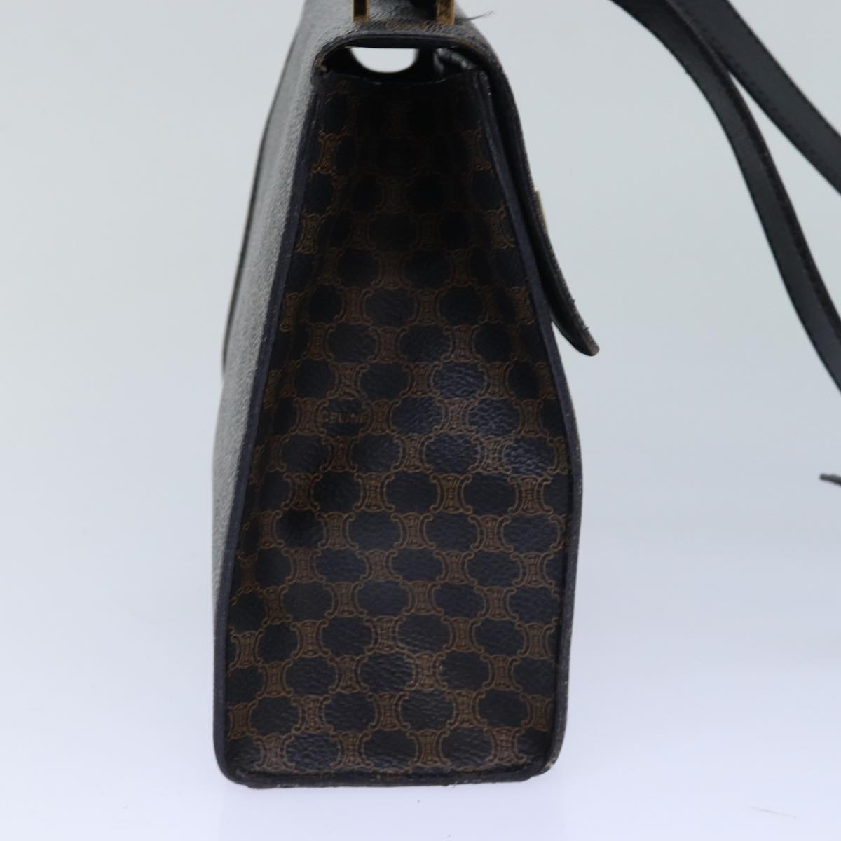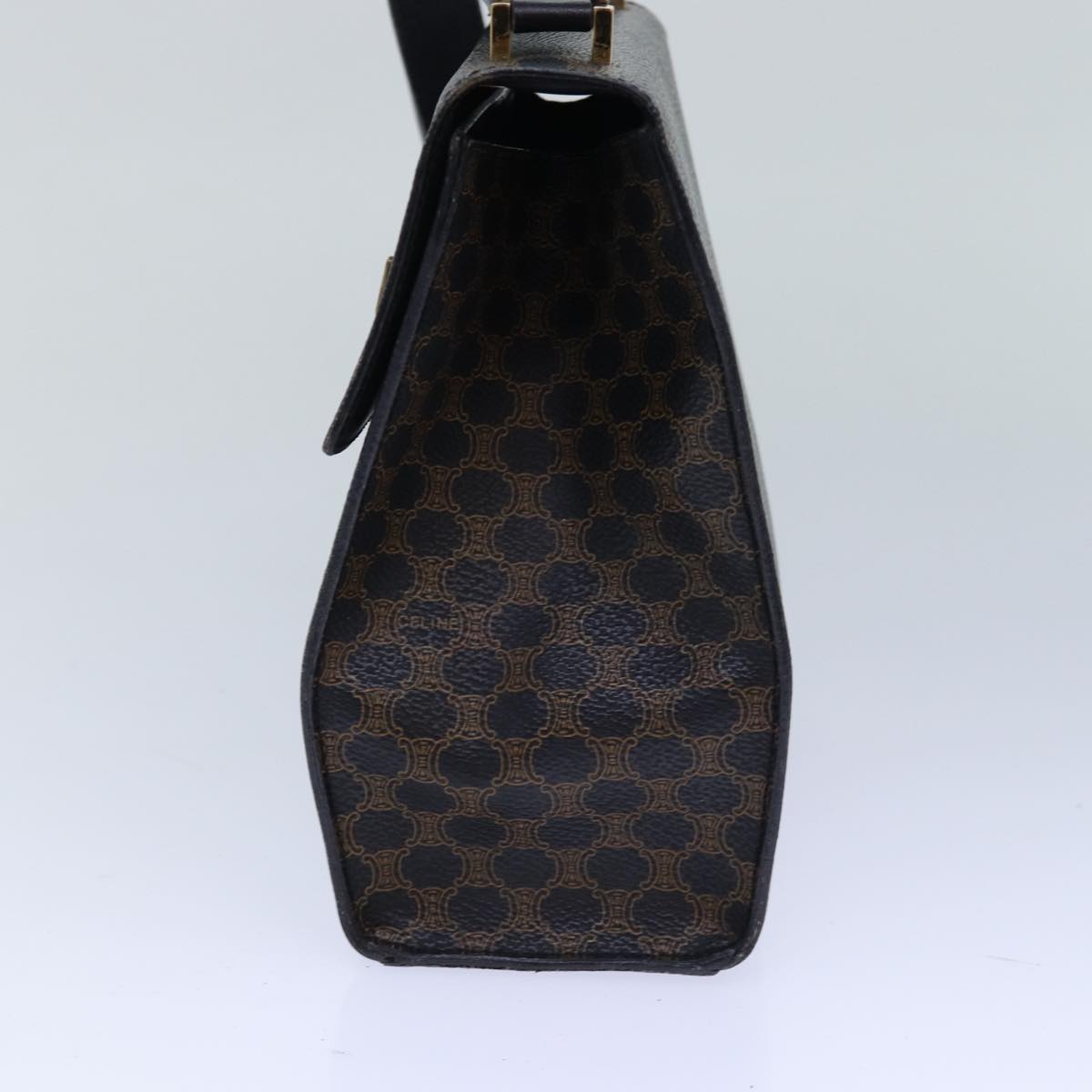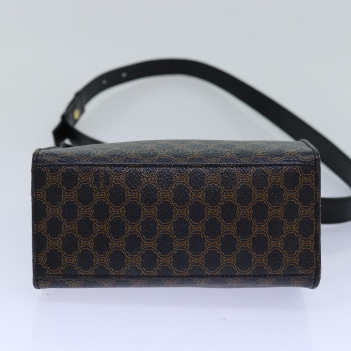 CELINE Macadam Canvas Shoulder Bag PVC Leather Black Gold Auth 85105