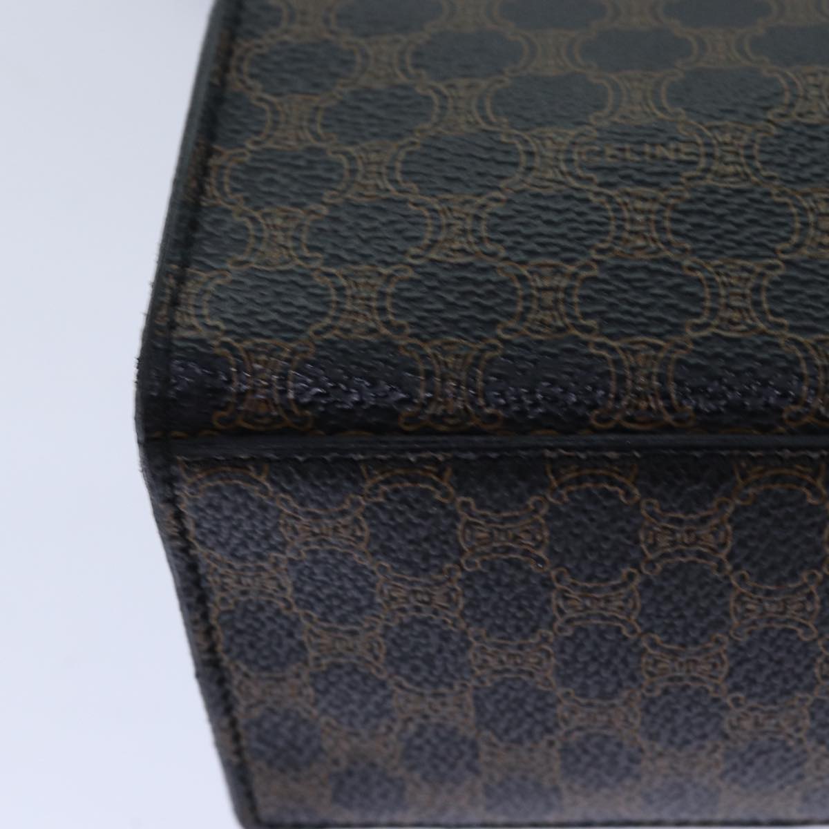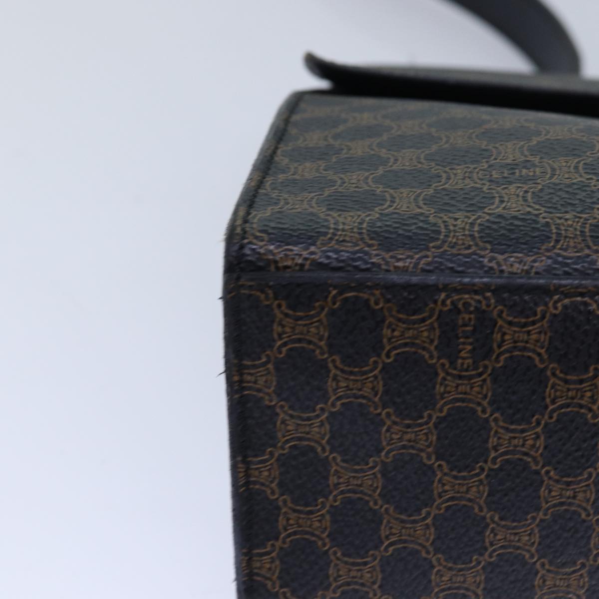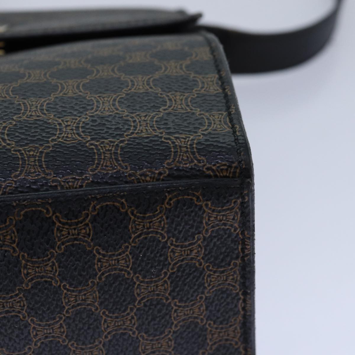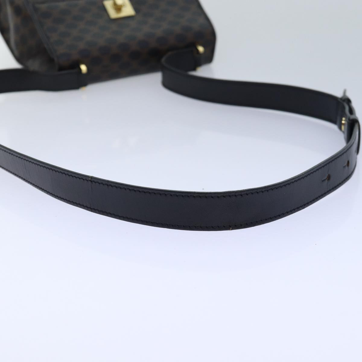 CELINE Macadam Canvas Shoulder Bag PVC Leather Black Gold Auth 85105