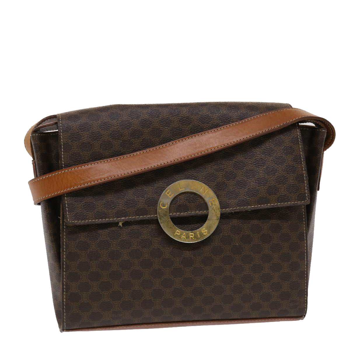 Celine Macadam Canvas Shoulder Bag PVC Leather Brown 49113