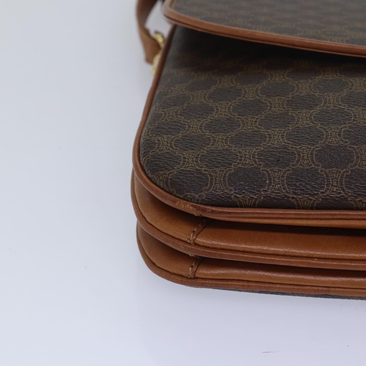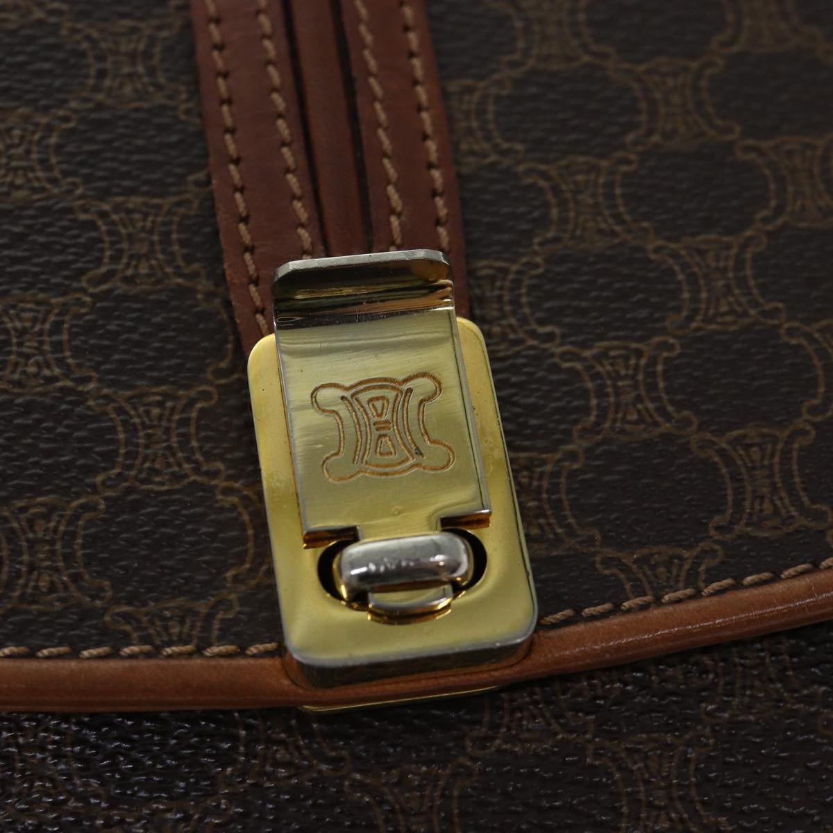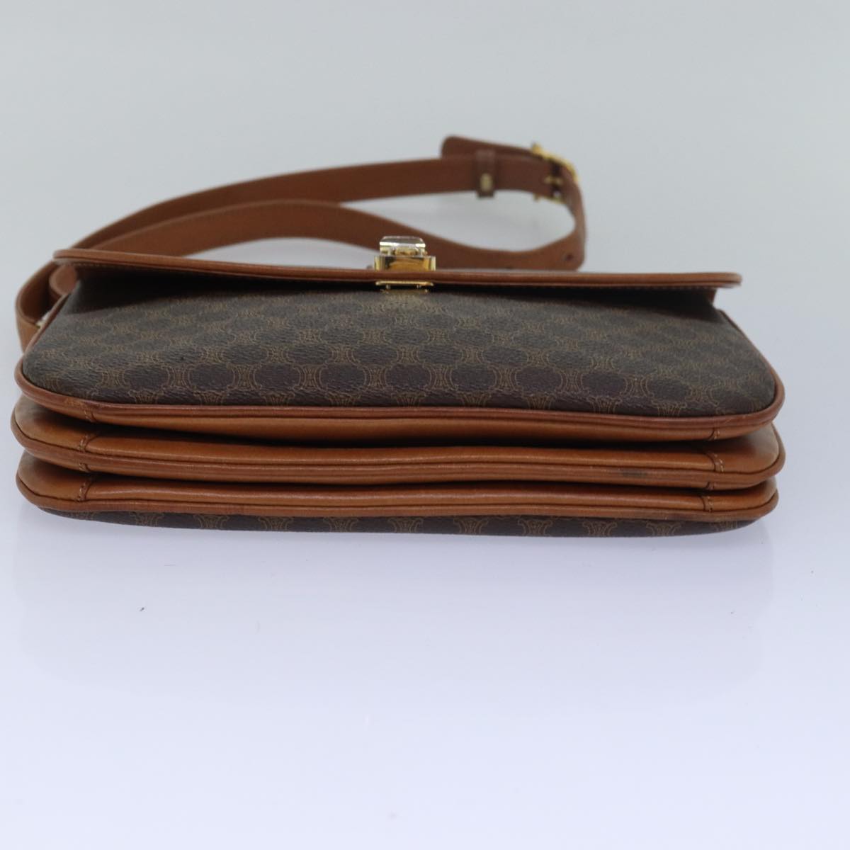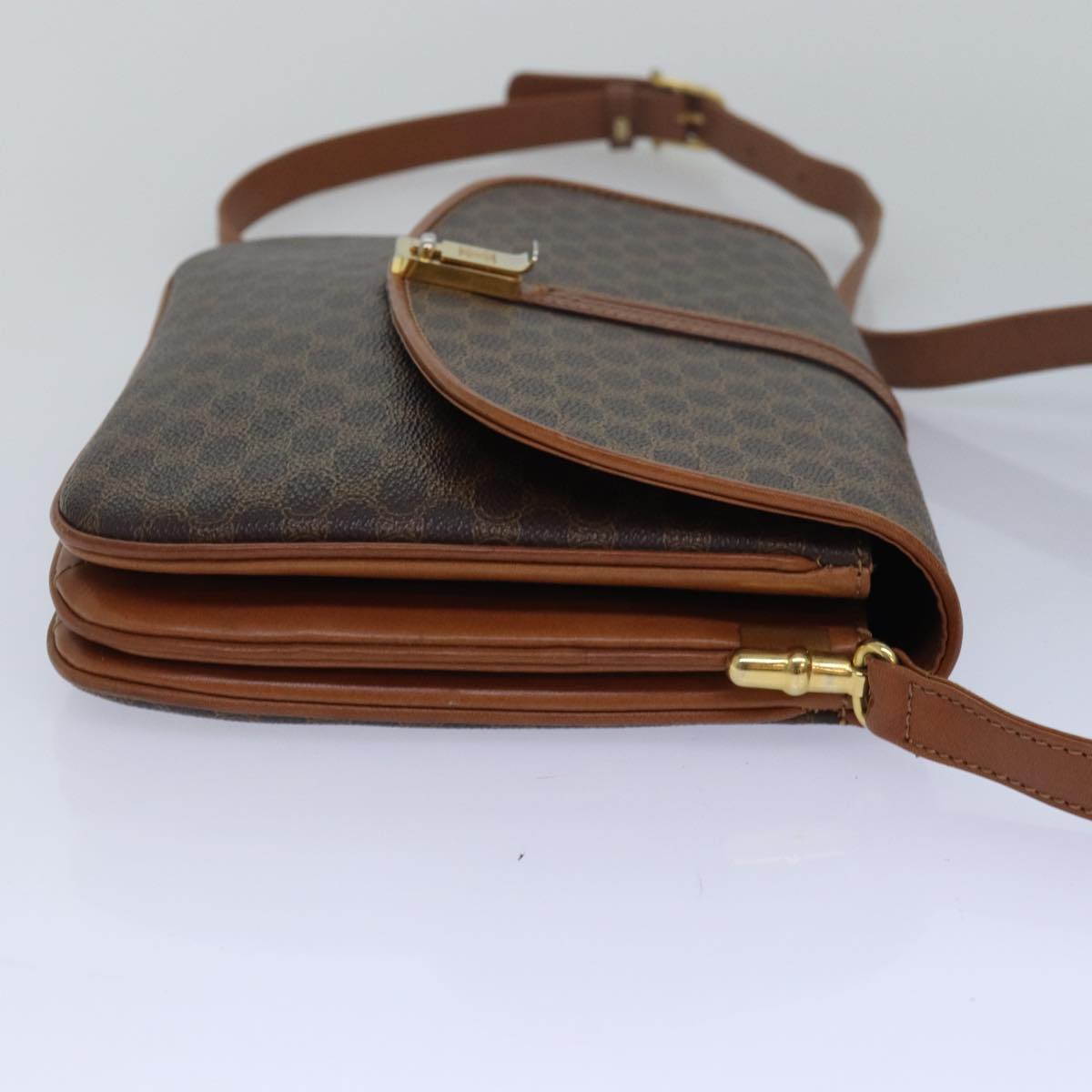 CELINE Macadam Canvas Shoulder Bag PVC Leather Brown Auth 78223