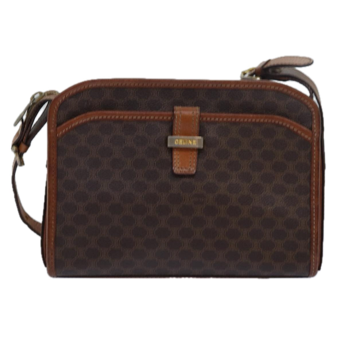 CELINE Macadam Canvas Shoulder Bag PVC Leather Brown Auth 78317