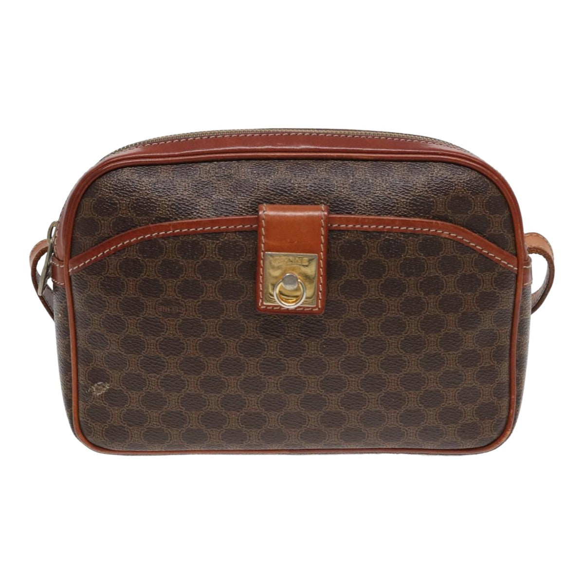 CELINE Macadam Canvas Shoulder Bag PVC Leather Brown Auth ar12157