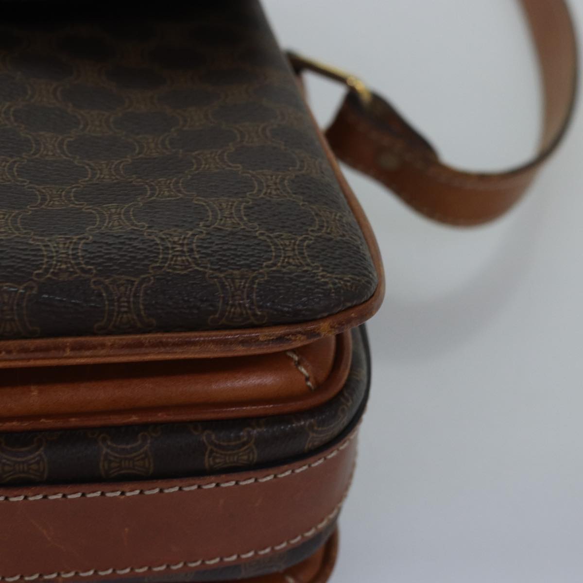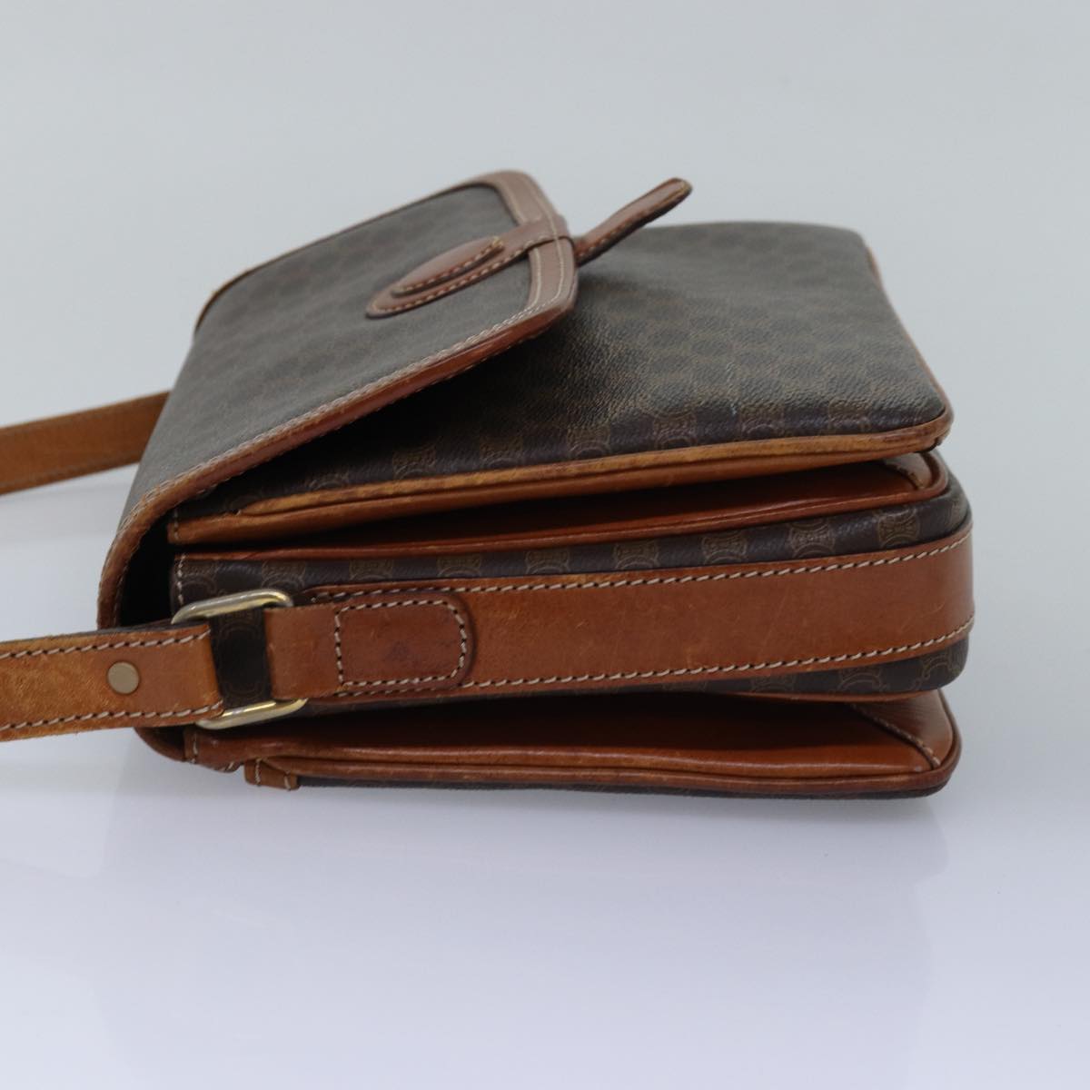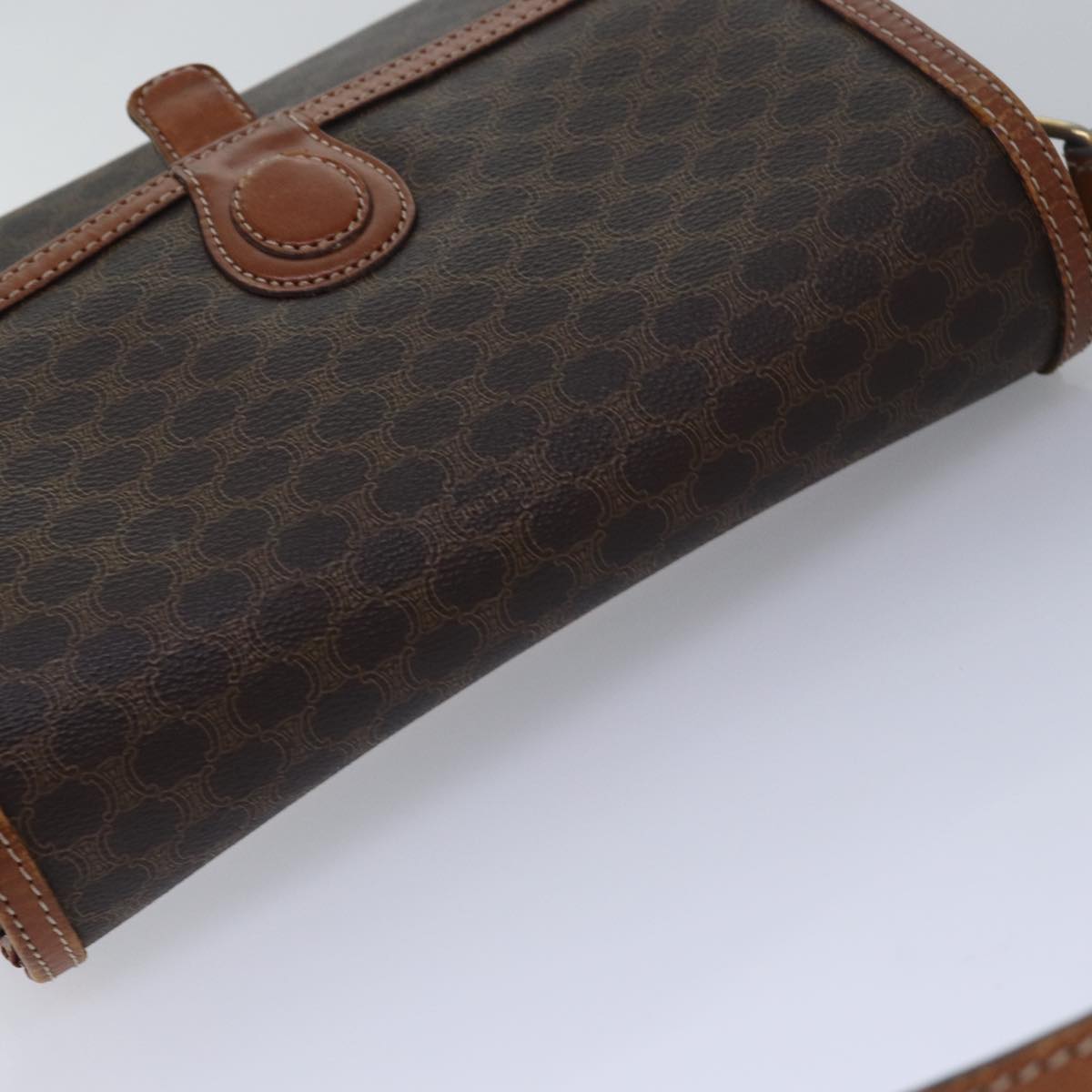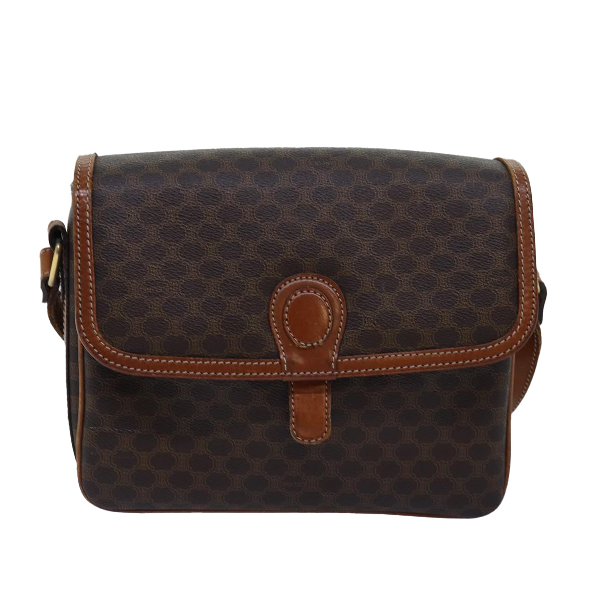 CELINE Macadam Canvas Shoulder Bag PVC Leather Brown Auth ki4579
