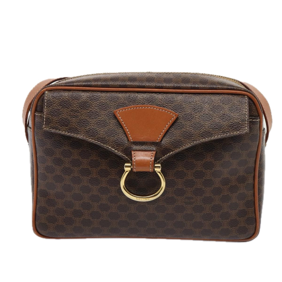 CELINE Macadam Canvas Shoulder Bag PVC Leather Brown Auth yk13816