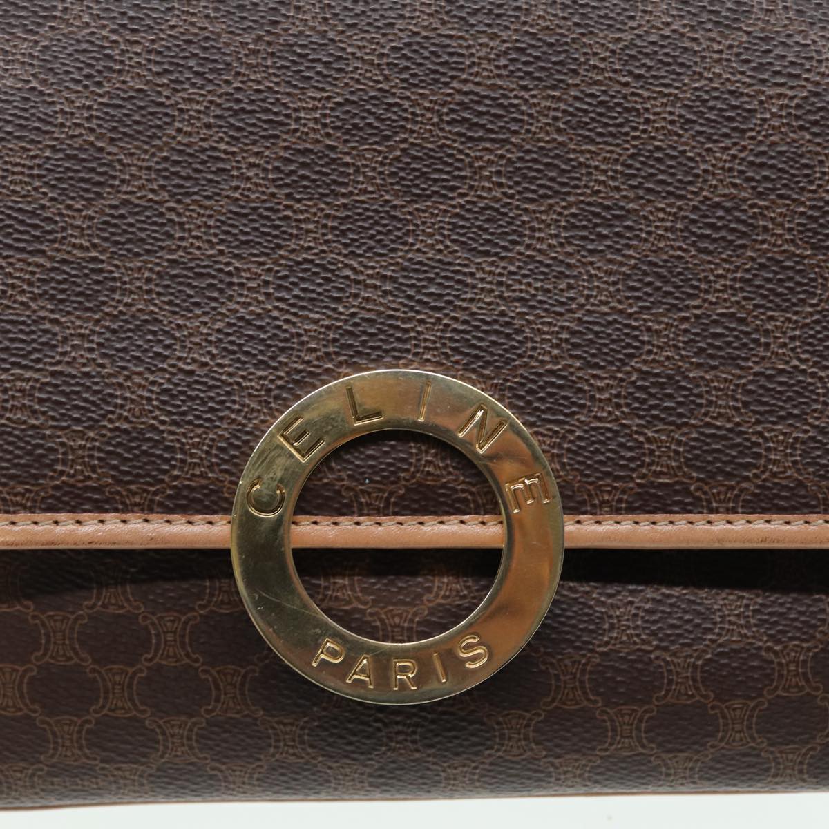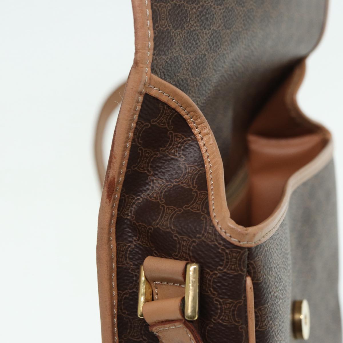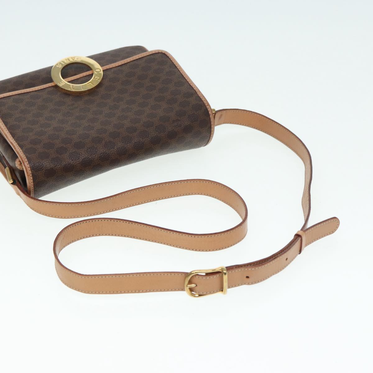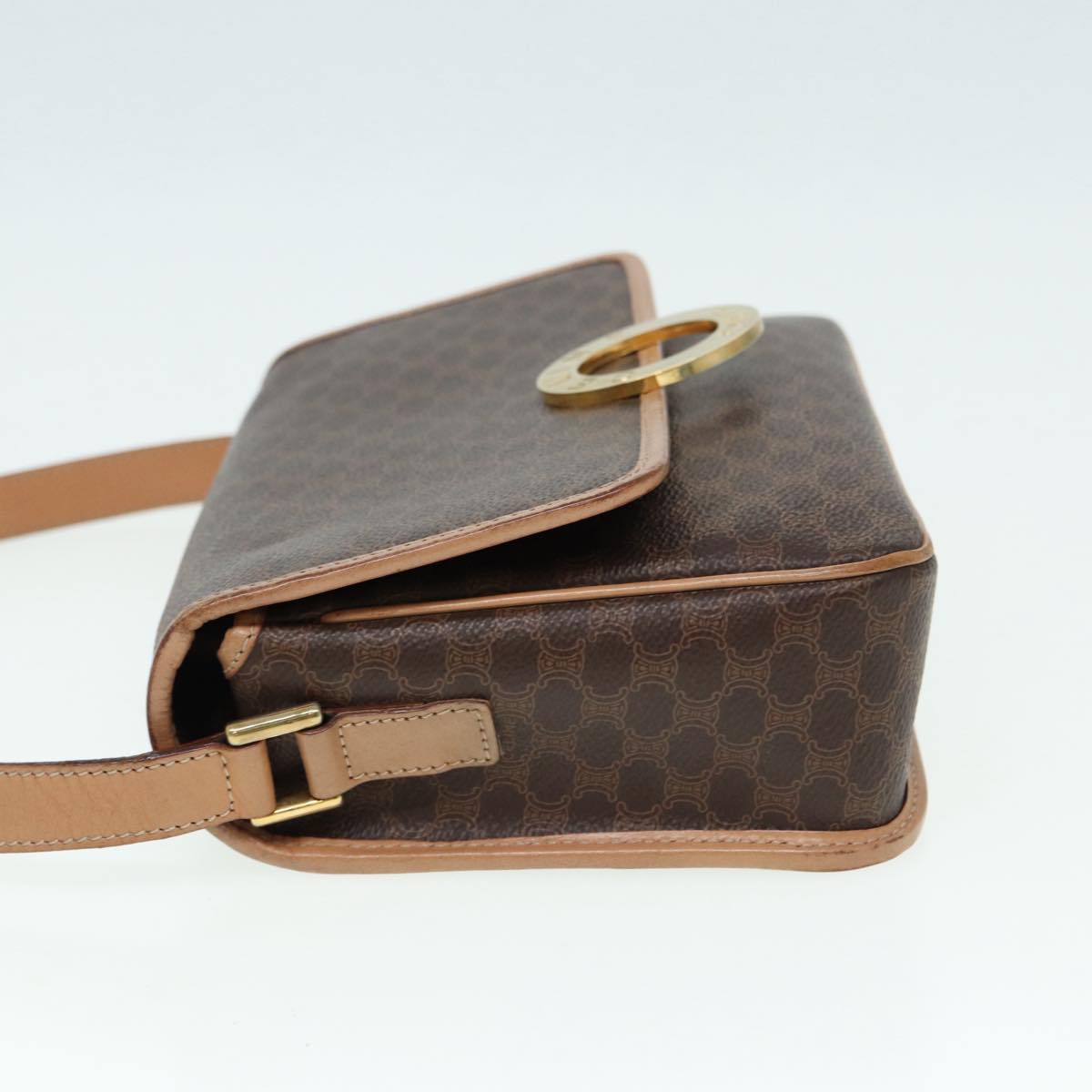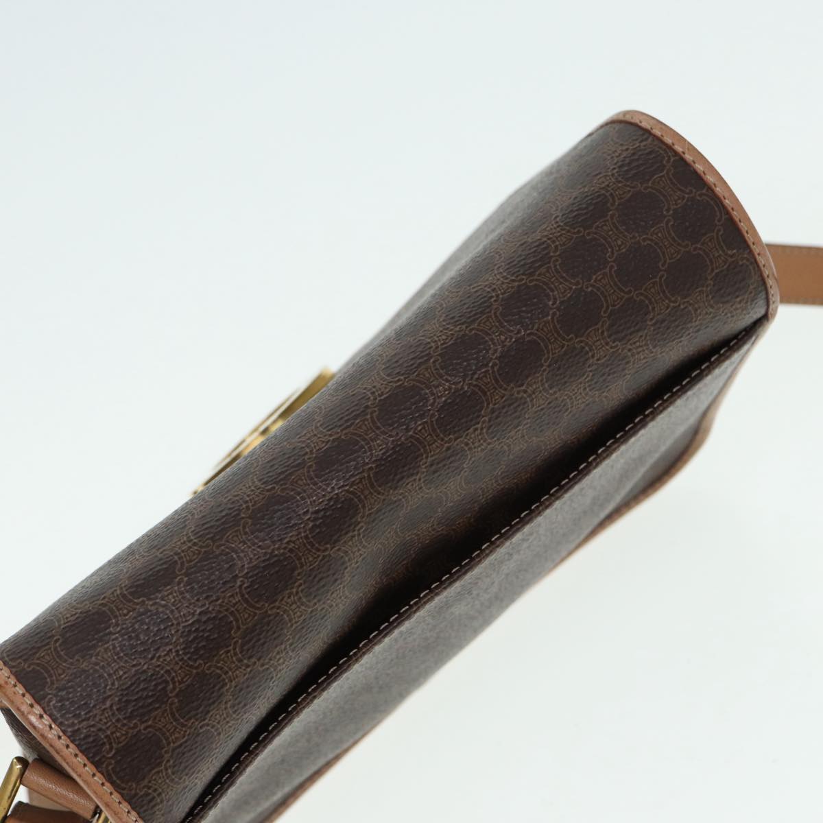 CELINE Macadam Canvas Shoulder Bag PVC Leather Brown Gold Auth 85954