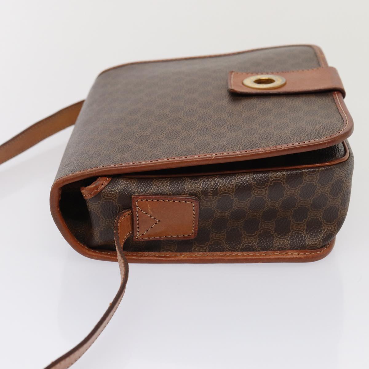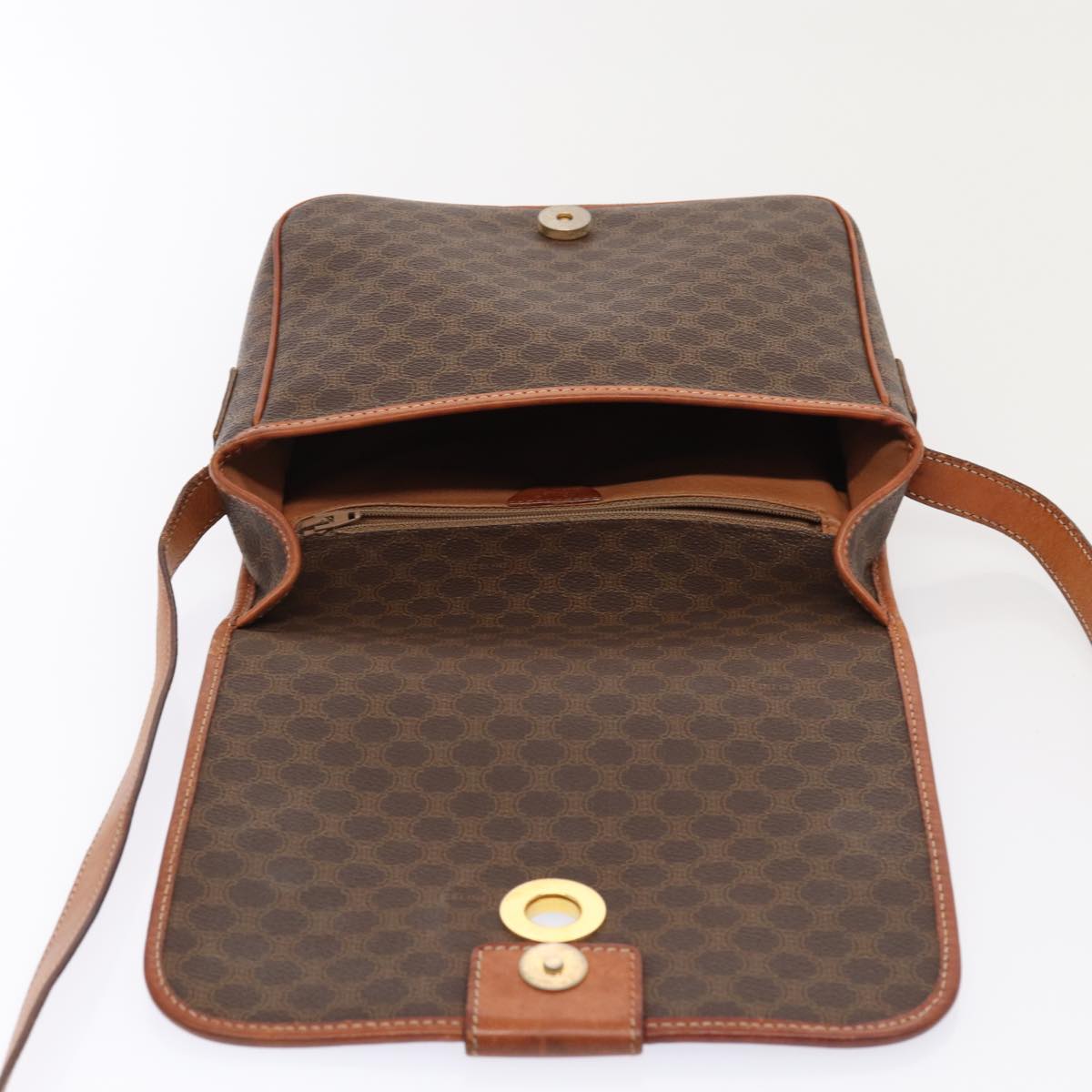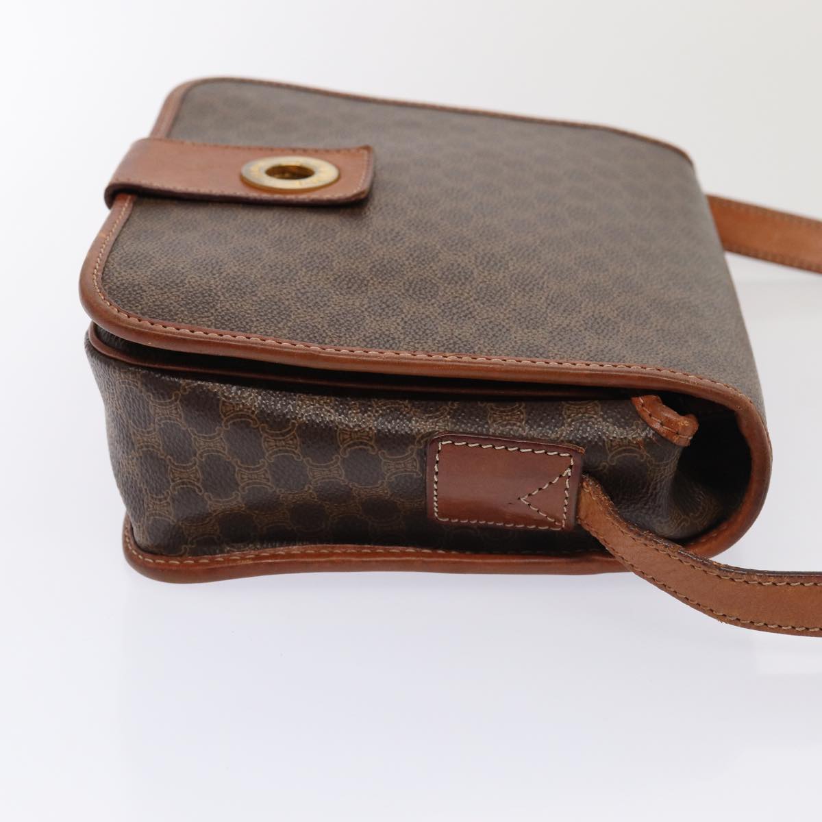 CELINE Macadam Canvas Shoulder Bag PVC Leather Brown Gold Auth 86427