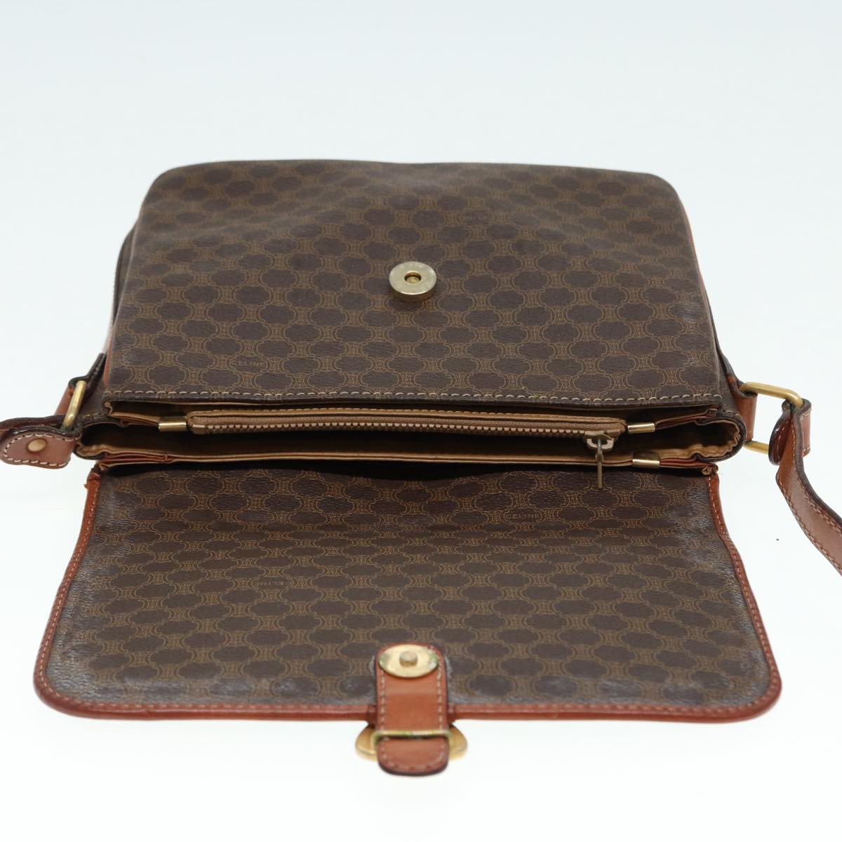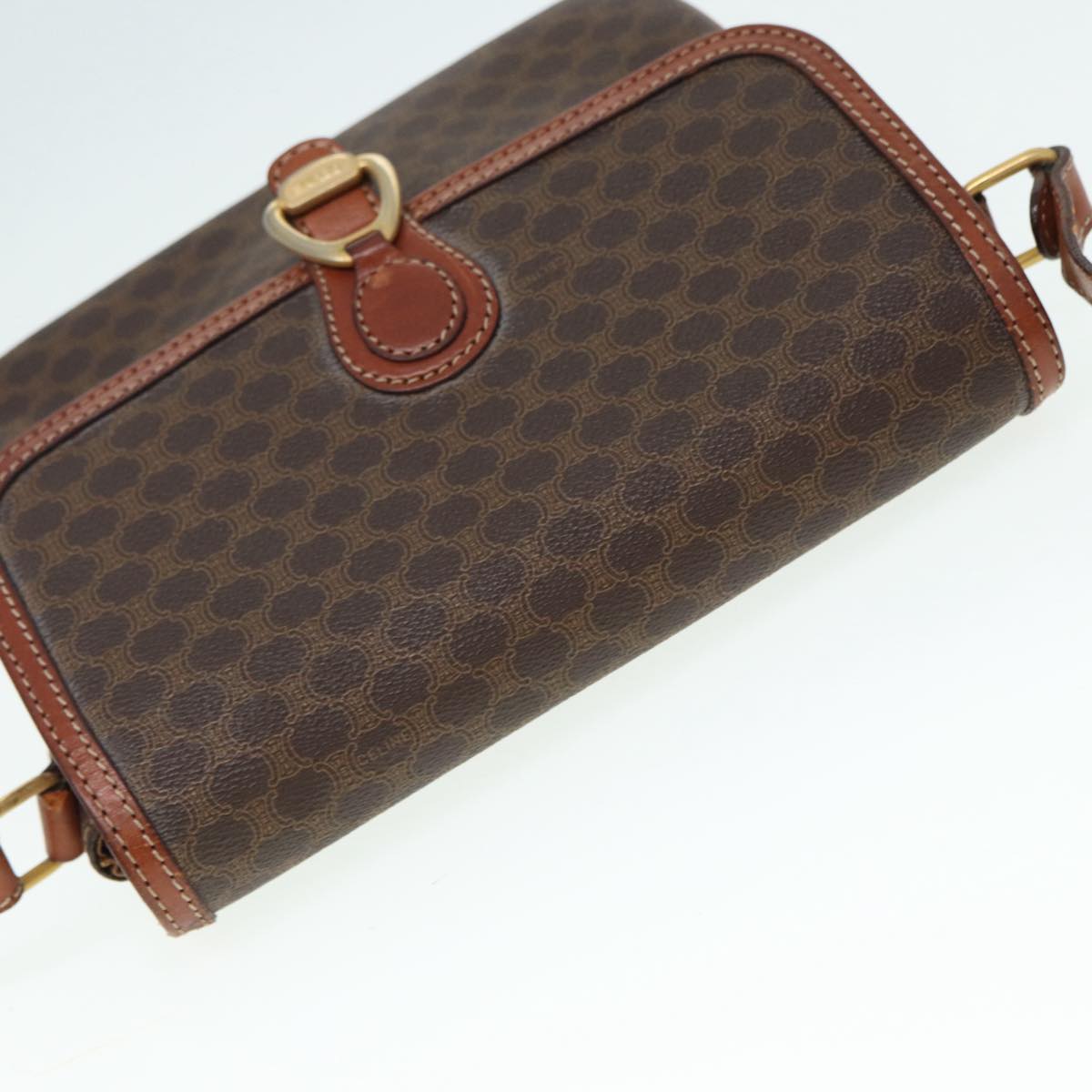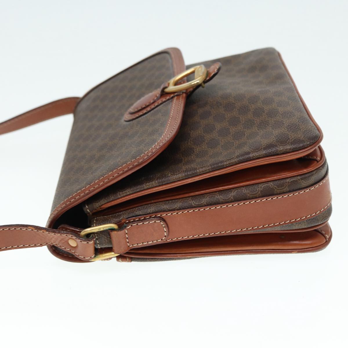 CELINE Macadam Canvas Shoulder Bag PVC Leather Brown Gold Auth 88109