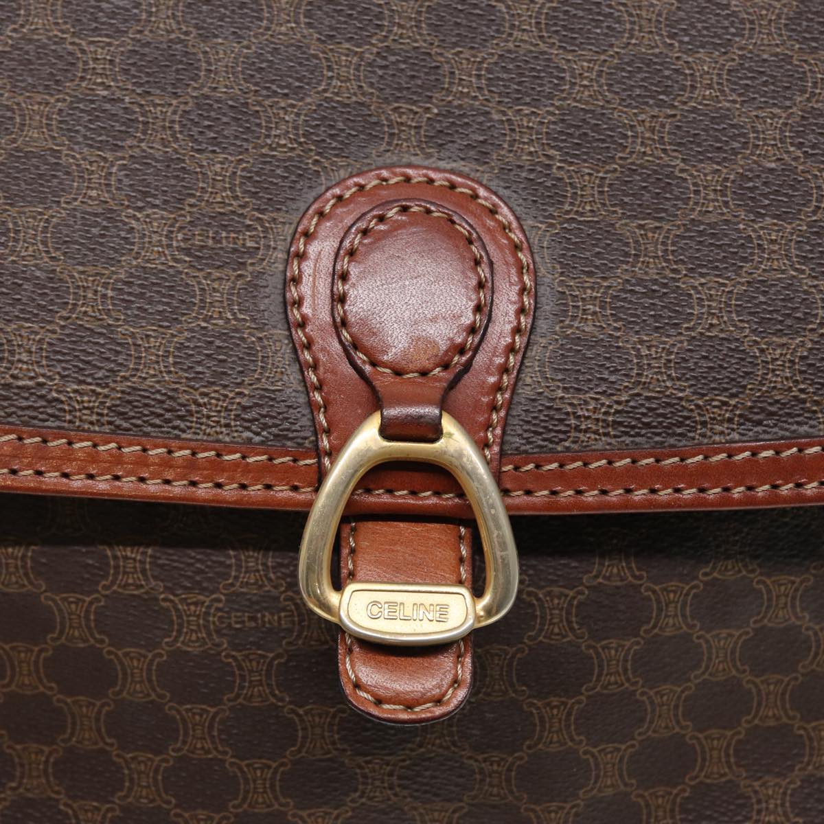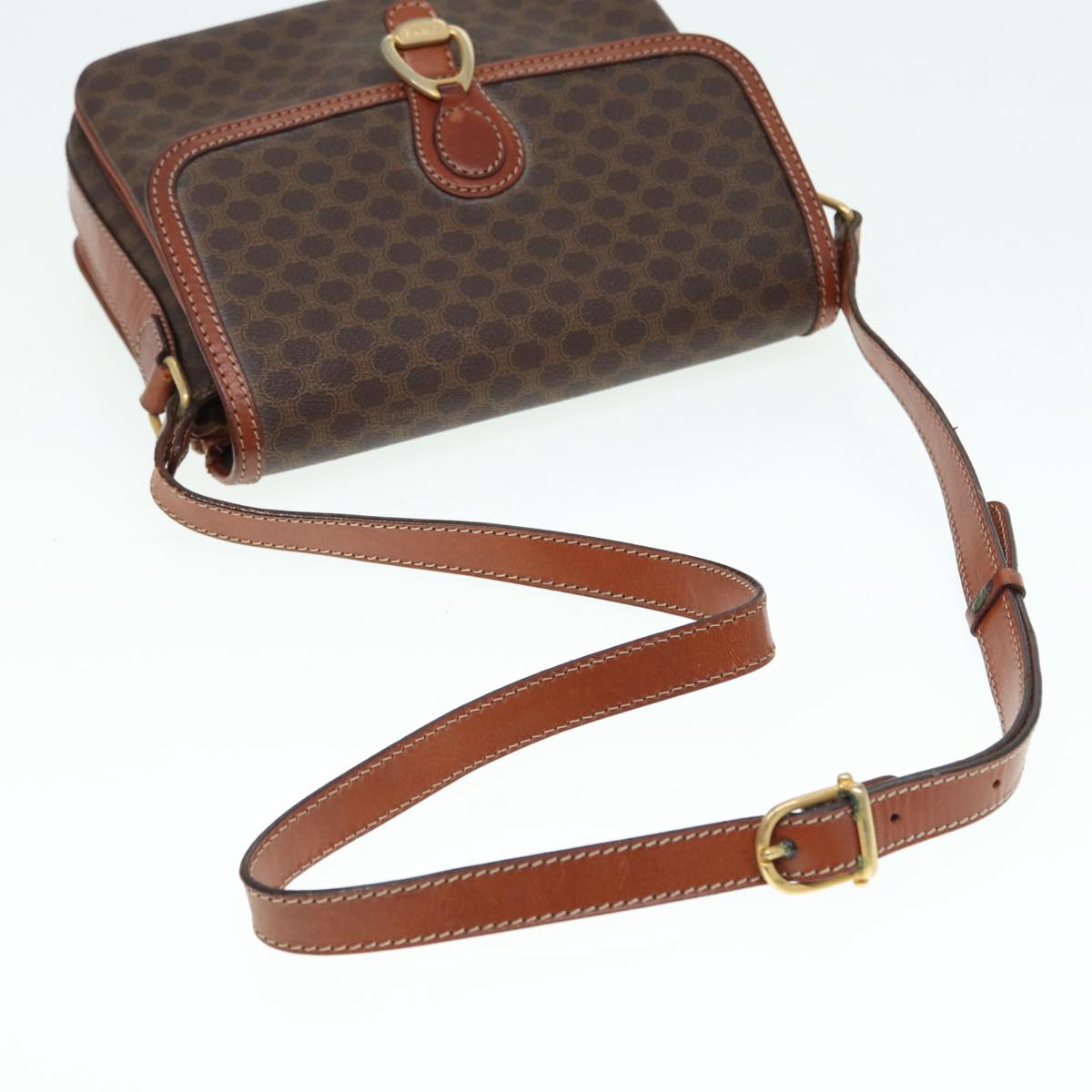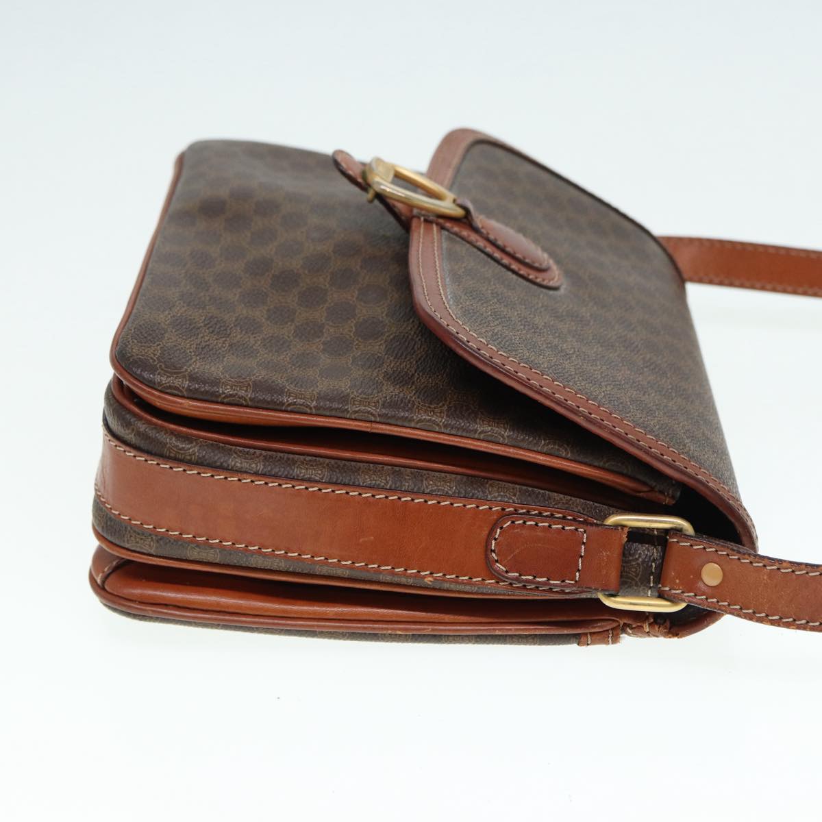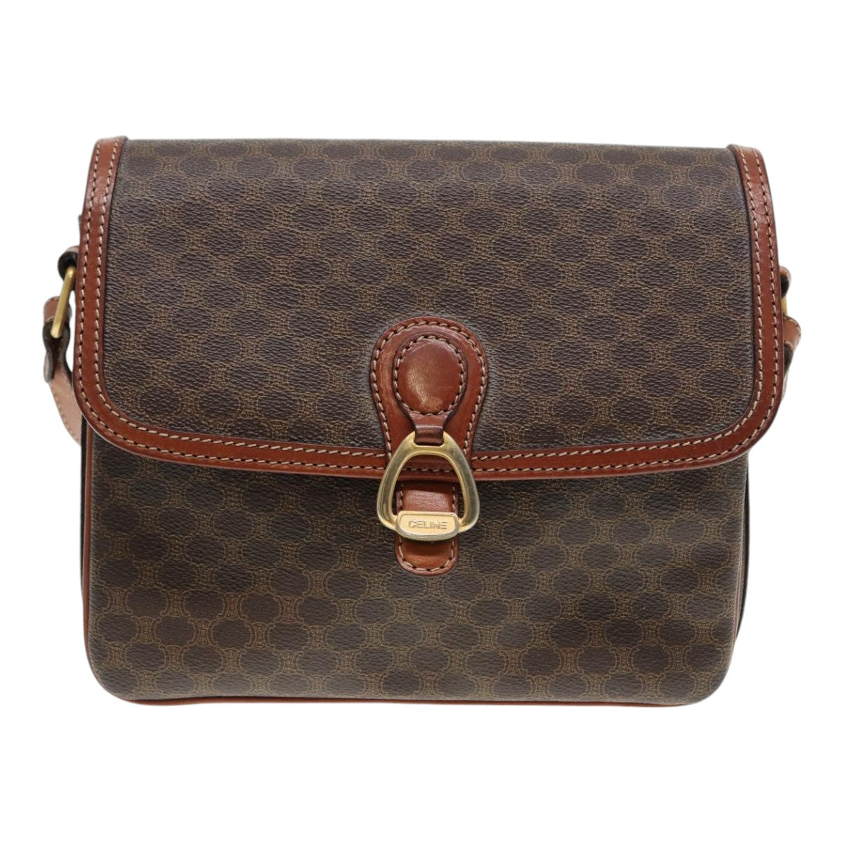 CELINE Macadam Canvas Shoulder Bag PVC Leather Brown Gold Auth 88109
